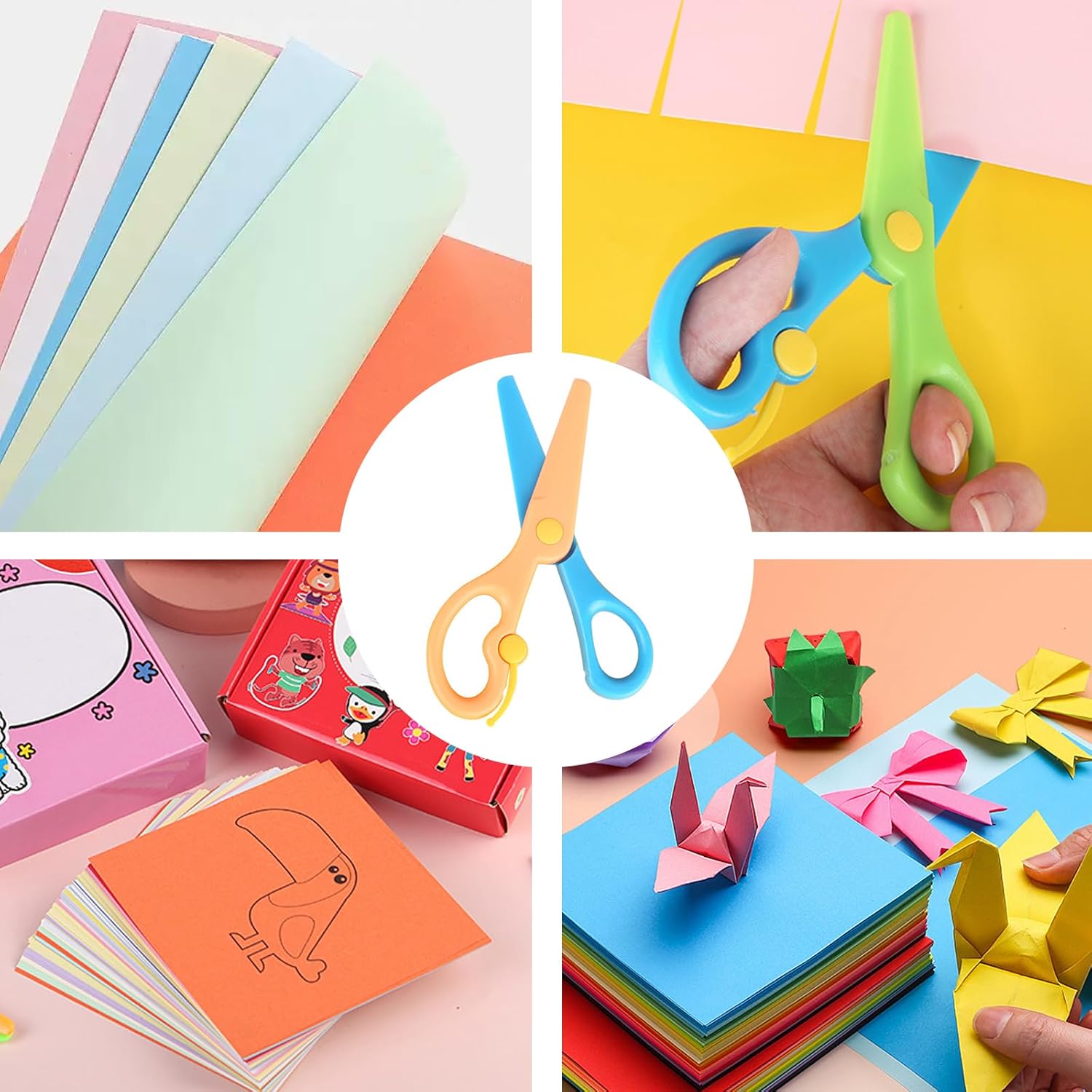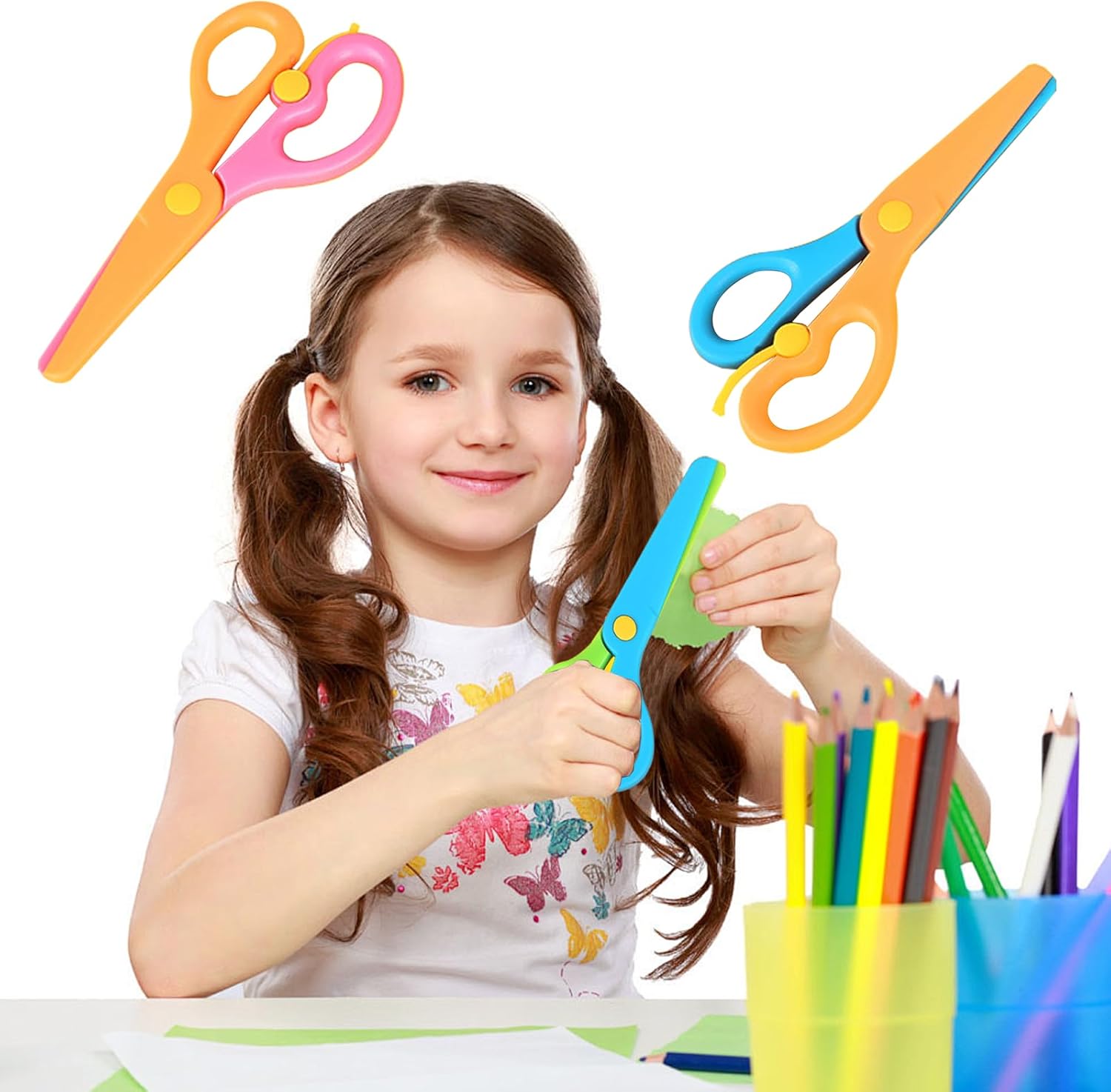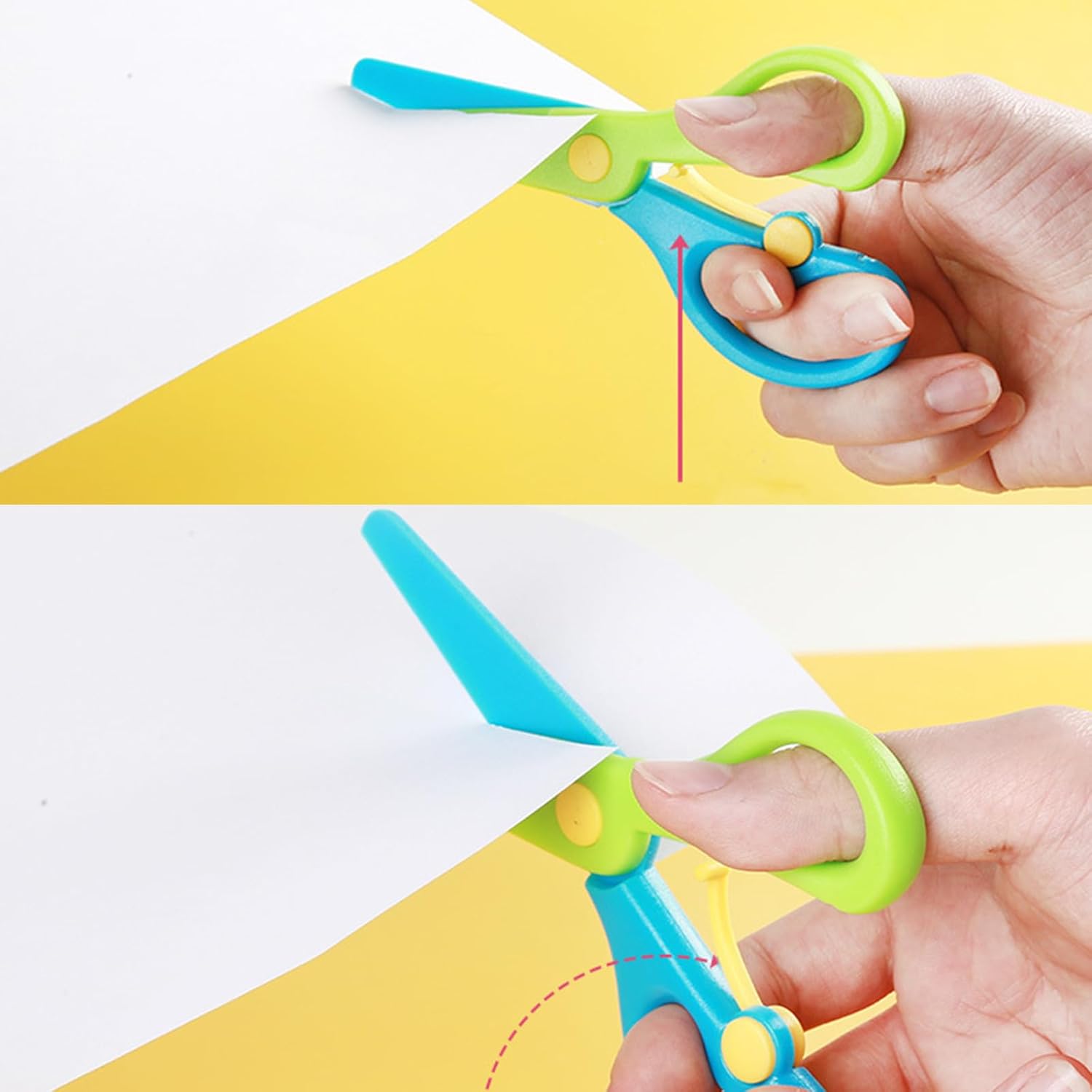 Materiale di alta qualità: le forbici in plastica sono realizzate in materiale plastico, sicuro e non danneggia le mani, sono anche resistenti e robuste, consentendo un lungo tempo di servizio. Contenuto della confezione: la confezione viene fornita con 3 forbici di sicurezza, tra cui diversi colori e la quantità è sufficiente per soddisfare le vostre varie esigenze e sostituzioni. Design speciale: le forbici in plastica per bambini in età prescolare adpot con manico ergonomico, che ti offrirà una presa comoda ed è sicuro da usare. Facile da usare: è facile usare le nostre forbici da allenamento prescolare, può tagliare solo carta e carte. Quindi non devi preoccuparti di tagliare le dita o i capelli dei tuoi bambini. Ampia applicazione: le nostre forbici di carta di sicurezza sono adatte per album fai da te, biglietti di auguri e opere d'arte per bambini, possono sviluppare intelligenza e più pratica.