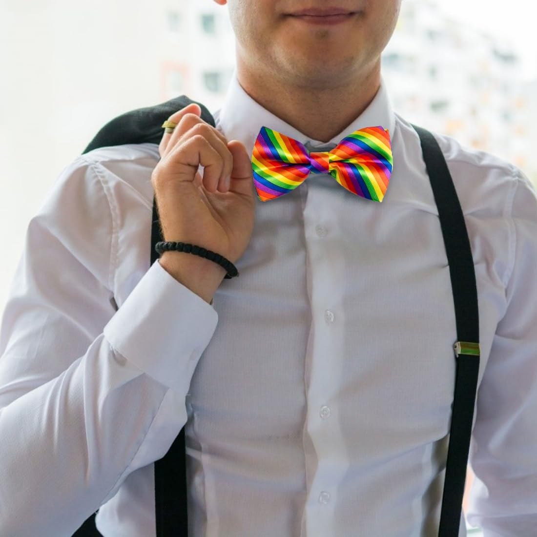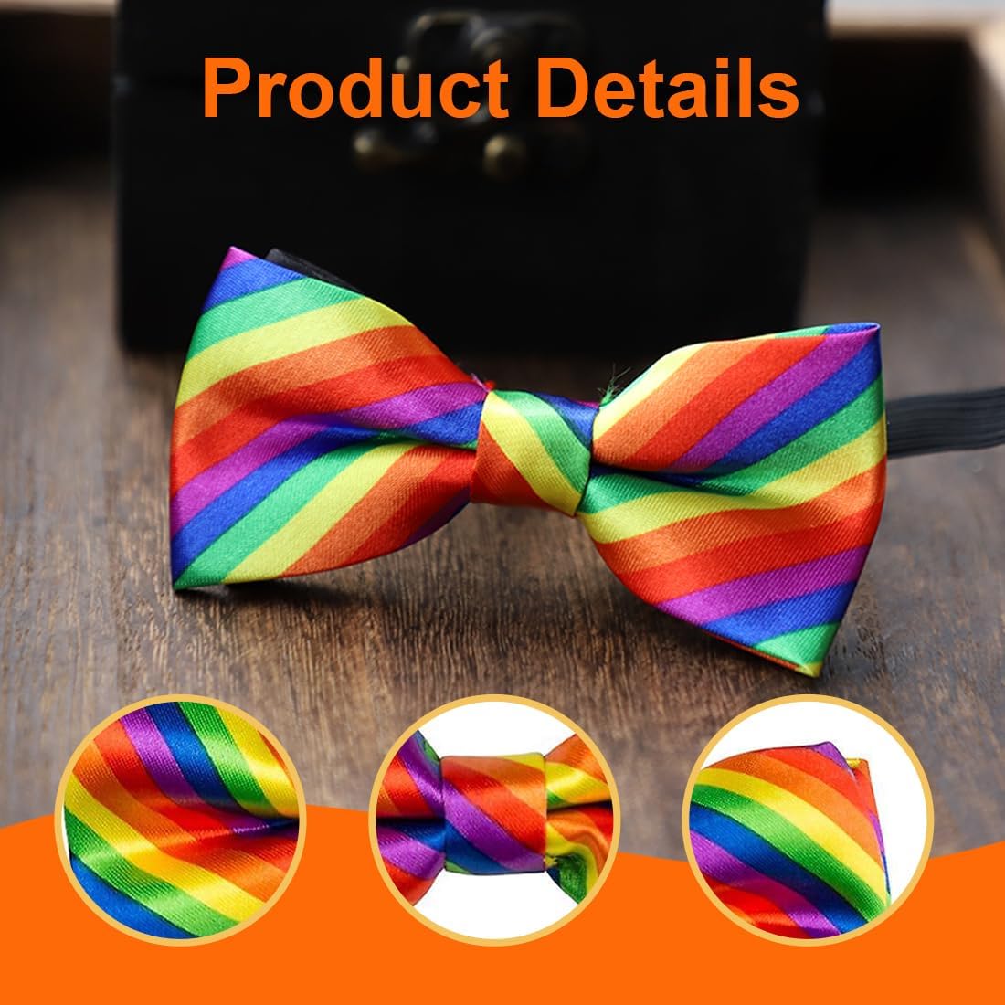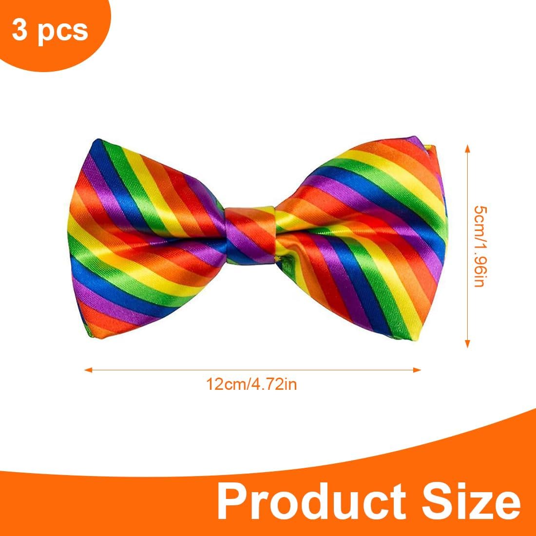 Papillon arcobaleno: il papillon arcobaleno aggiunge punti salienti all'abbigliamento, è alla moda e colorato ed è adatto a varie occasioni Papillon colorato: adatto per carnevale, feste o abbigliamento quotidiano, vari stili Papillon rigato: dai colori vivaci, con elastico nero, adatto per uomo, donna e bambino Papillon arcobaleno: un look satinato che aggiunge colore e brillantezza a un outfit triste Garanzia di soddisfazione: impegnati a fornire la migliore qualità e servizio, in caso di problemi, contattaci e ce ne occuperemo il prima possibile