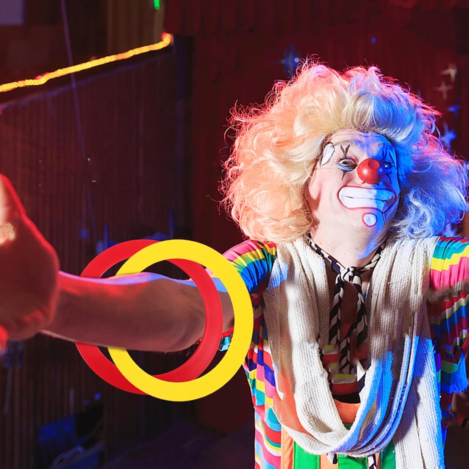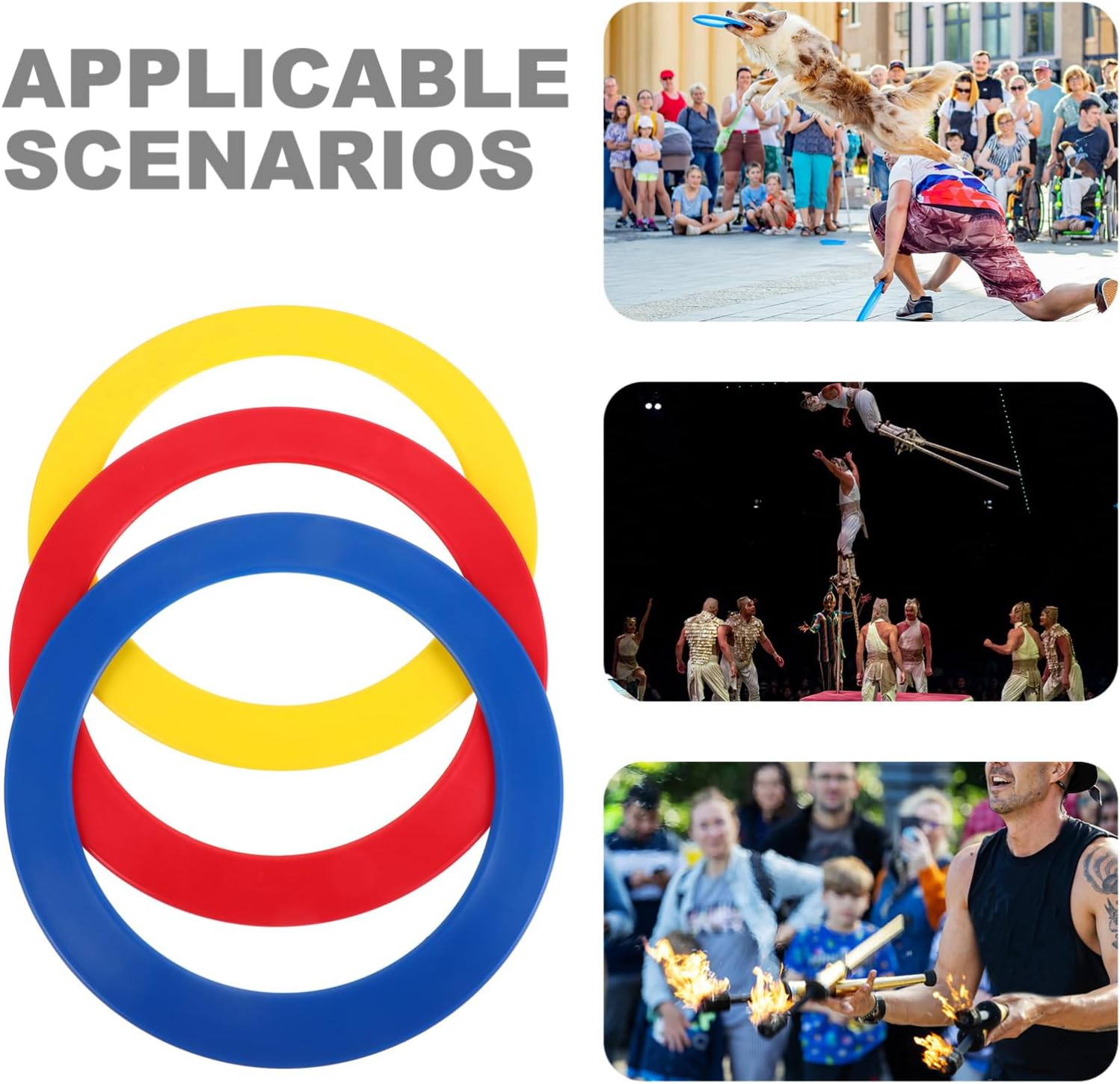Anelli da giocoliere circensi: questi anelli sono progettati per essere visivamente sorprendenti, aggiungendo un ulteriore livello di eccitazione al tuo spettacolo Adattabili a tutte le occasioni: che tratti di spettacolo circense, di spettacolo acrobatico o di una sessione di giocoleria informale, questi anelli sono adattabili a qualsiasi Leggeri e portatili: questi anelli sono progettati per essere leggeri e facili da trasportare, rendendoli convenienti per gli artisti che viaggiano spesso È per la giocoleria circense: questi anelli sono ideali per la giocoleria circense, offrendo l'equilibrio per lanci e riprese fluidi e precisi Migliora la coordinazione: l'uso regolare di questi anelli può aiutare a migliorare la coordinazione occhio-mano e la forma fisica, rendendoli un eccellente aiuto per l'allenamento