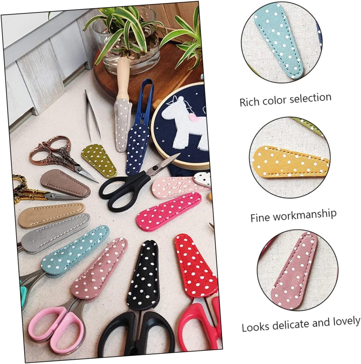 Forbici in pelle pu: ricca selezione di colori e quantità sufficiente per soddisfare le vostre esigenze di utilizzo e sostituzione, forbici Protezione per le forbici: molto leggera, facile da riporre e non occupa troppo spazio, è una fantastica famiglia, amici, parenti, amanti del cucito, ecc., protezione per le forbici Copertura protettiva per forbici: design adorabile, aspetto delicato e adorabile, copertura per forbici Copertura in pelle pu per forbici: la copertura delle forbici può coprire bene le forbici e conservarle in modo sicuro senza ferire o tagliare le , creativa della copertura delle forbici Proteggi forbici: leggeri, facili da usare e sono una copertura imperdibile per le forbici, protezione per forbici