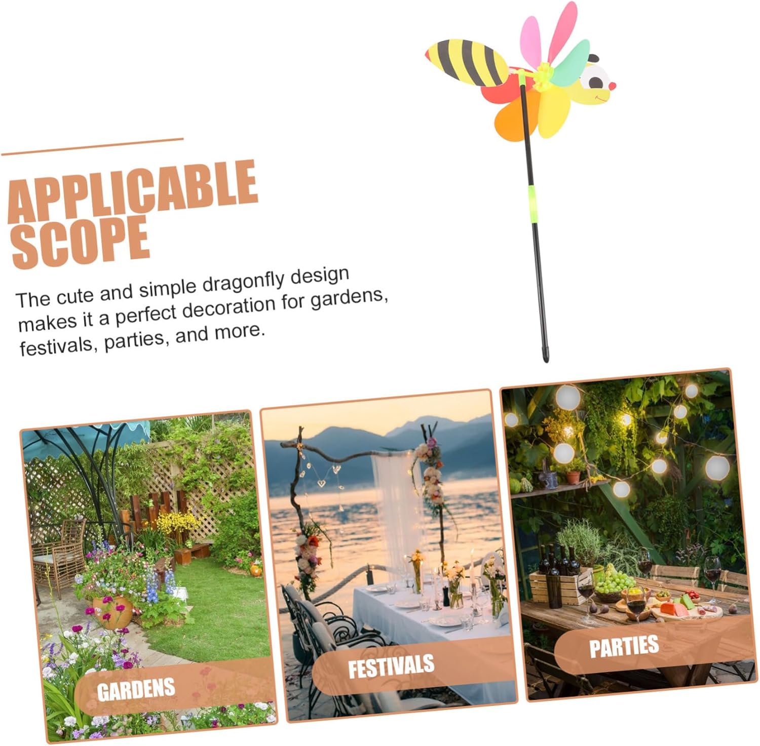 Girandole decorative da giardino: realizzate in materiale pvc, di pregevole fattura e adatte all'uso come girandole da giardino. Mulino a vento da giardino: questo mulino a vento decorativo abbellirà il tuo cortile, prato o giardino e altri luoghi in cui desideri un bel decoro, mulino a vento da giardino Mulini a vento per bambini: un grazioso e semplice design a forma di libellula con colori vivaci e delicati può renderti più felice, mulinelli da giardino. Mulini a vento giocattolo per bambini: possono ruotare per creare un punto focale divertente nel tuo giardino, prato o arbusti, mulini a vento Giocattolo del mulino a vento: può essere applicato nei , nei vasi di fiori, adatto anche per occasioni come bomboniere, docce nuziali e per bambini, vacanze, girandola da giardino