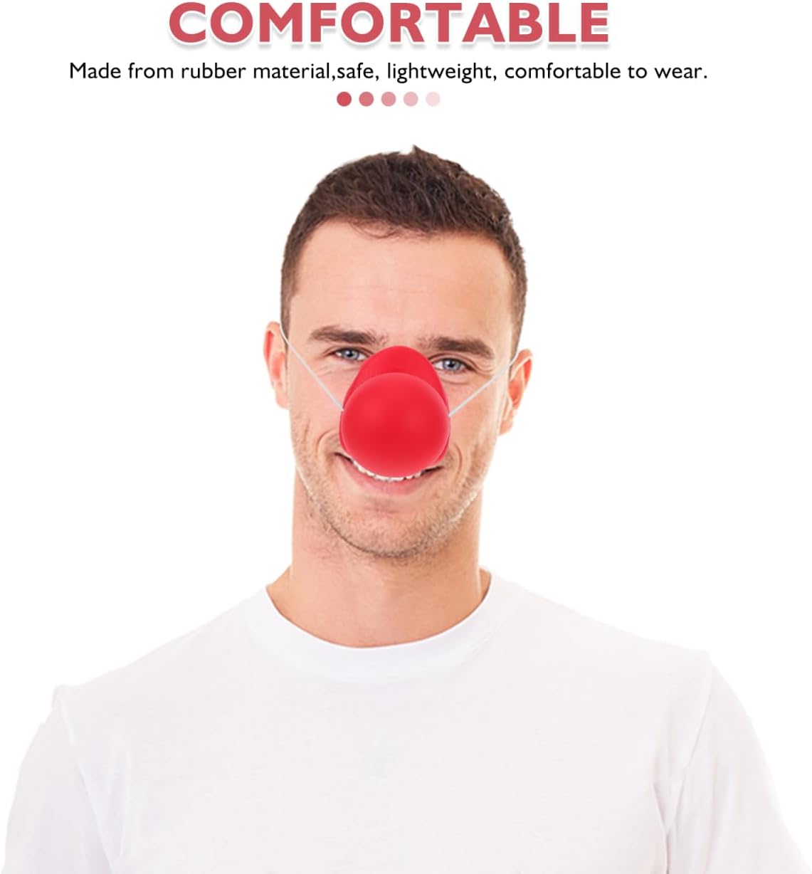 Materiale Di Qualità: Realizzato in lattice di alta qualità, il naso è morbido e flessibile, assicurando una vestibilità confortevole per tutto il Grandezza Adatta: Il naso da clown in lattice è disponibile in una taglia , perfetta per creare un look da clown e divertente per feste di carnevale e halloween Facile Da Indossare: Grazie design leggero, il naso da clown è facile da indossare e da togliere, ideale per travestimenti improvvisati Set Da Tre: Ogni pacchetto contiene tre nasi, perfetti per feste con amici o come accessori per costumi da clown unici Adatto a Ogni Occasione: Questo naso è ideale per carnevali, feste di halloween, spettacoli teatrali o qualsiasi evento dove vuoi divertirti da clown