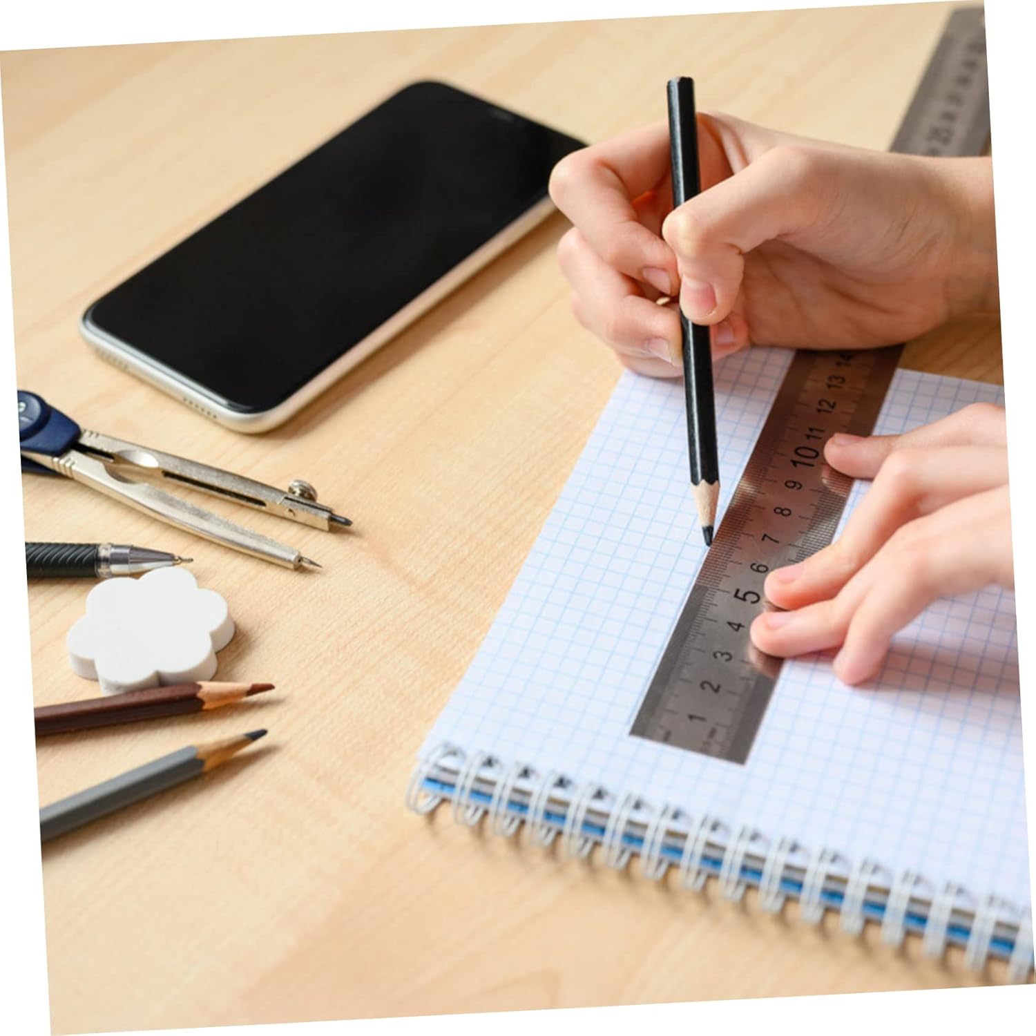 Strumenti da disegno: realizzati in acciaio inossidabile di qualità, sono robusti e resistenti all'usura, righelli per disegnare Righello metrico in acciaio: senza bordi, facile da riporre, righelli da costruzione Righello millimetrico: all'estremità del righello c'è un foro per facilitarne il posizionamento, rotolando il righello in metallo Righello da 12 pollici: della scala di misurazione su doppio lato, righello per Righelli dritti: c'è una scala di precisione sul righello, alta precisione, bordo dritto