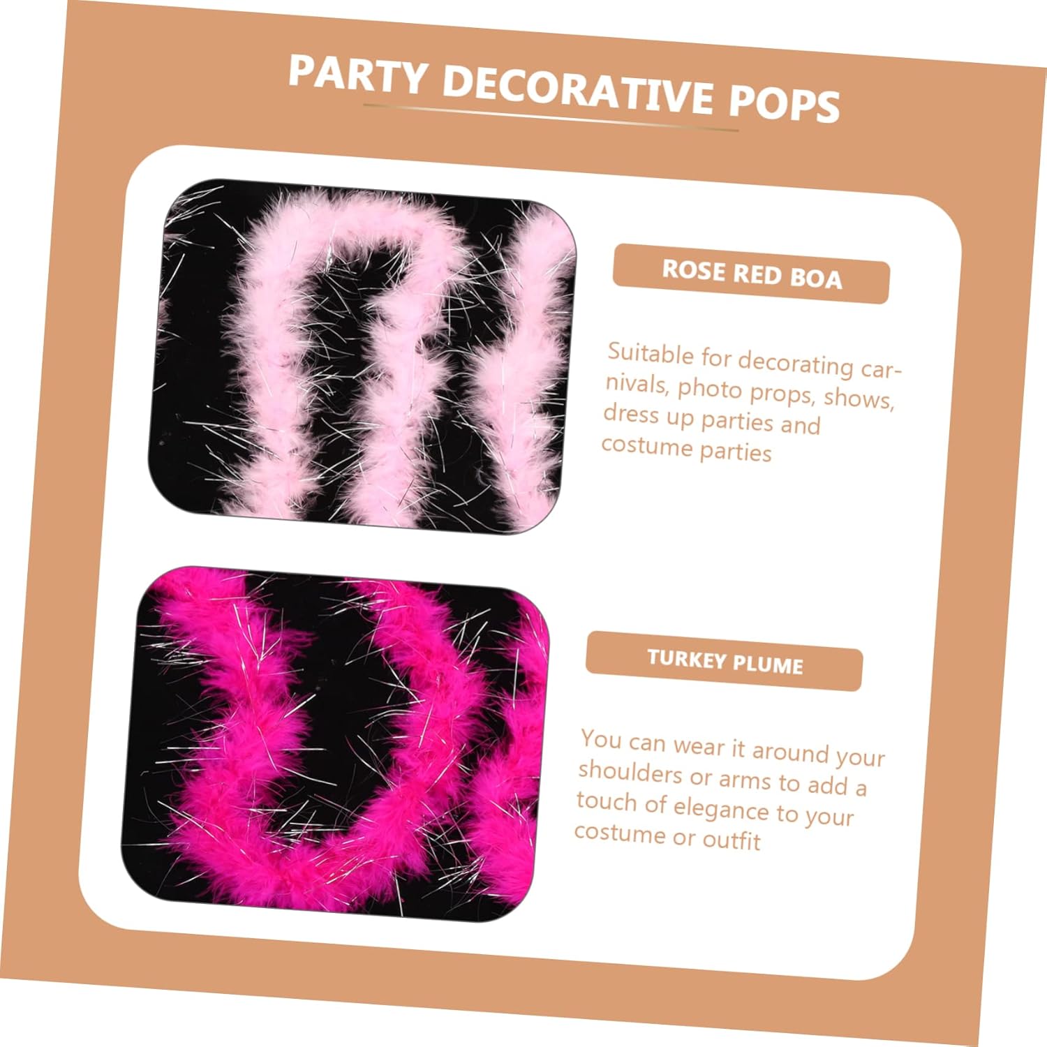dei pacchetti 3 x boa di caratteristiche -materiale: accessori per costumi da festa con di tacchino - : come mostrato di tacchino finiture -dimensioni: 5,50x1,60x0,10 cm/2,16x0,63x0,04 pollici strisce : le strisce soffici erano realizzato con pennacchio di tacchino, molto comodo e morbido, elastico tatto e utilizzabile con boa di pennacchio rosso. -la di applicazioni è ampia, una buona scelta per feste, travestimenti, spettacoli teatrali o servizi fotografici con boa di di tacchino. -I boa possono anche servire per realizzare gatti, ghirlande, decorazioni natalizie, oggetti di scena per festival e così via. - i boa possono essere per gonne, fasce per , vestiti, costumi da flapper, strisce di pennacchi di tacchino per qualsiasi celebrazione di Halloween. -I boa sono versatili, possono anche essere utilizzati in progetti di artigianato artistico e boa di pennacchi per decorazioni natalizie. informazioni sulla merce finiture in boa di pennacchio le nostre soffici strisce di tacchino sono multiuso, adatte per la decorazione di auto nuziali, come oggetti di scena per spettacoli di danza, ornamenti decorativi per eventi speciali, materiale artigianale fai da te, usa semplicemente la tua immaginazione per creare ciò che desideri. le soffici strisce di tacchino sono fatte di pennacchio di tacchino, molto lisce e molto comode tatto