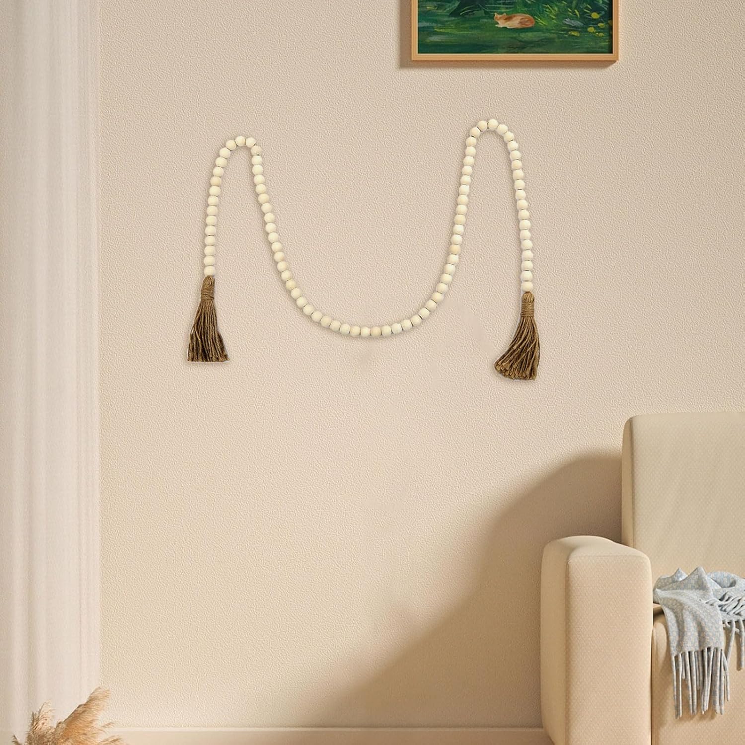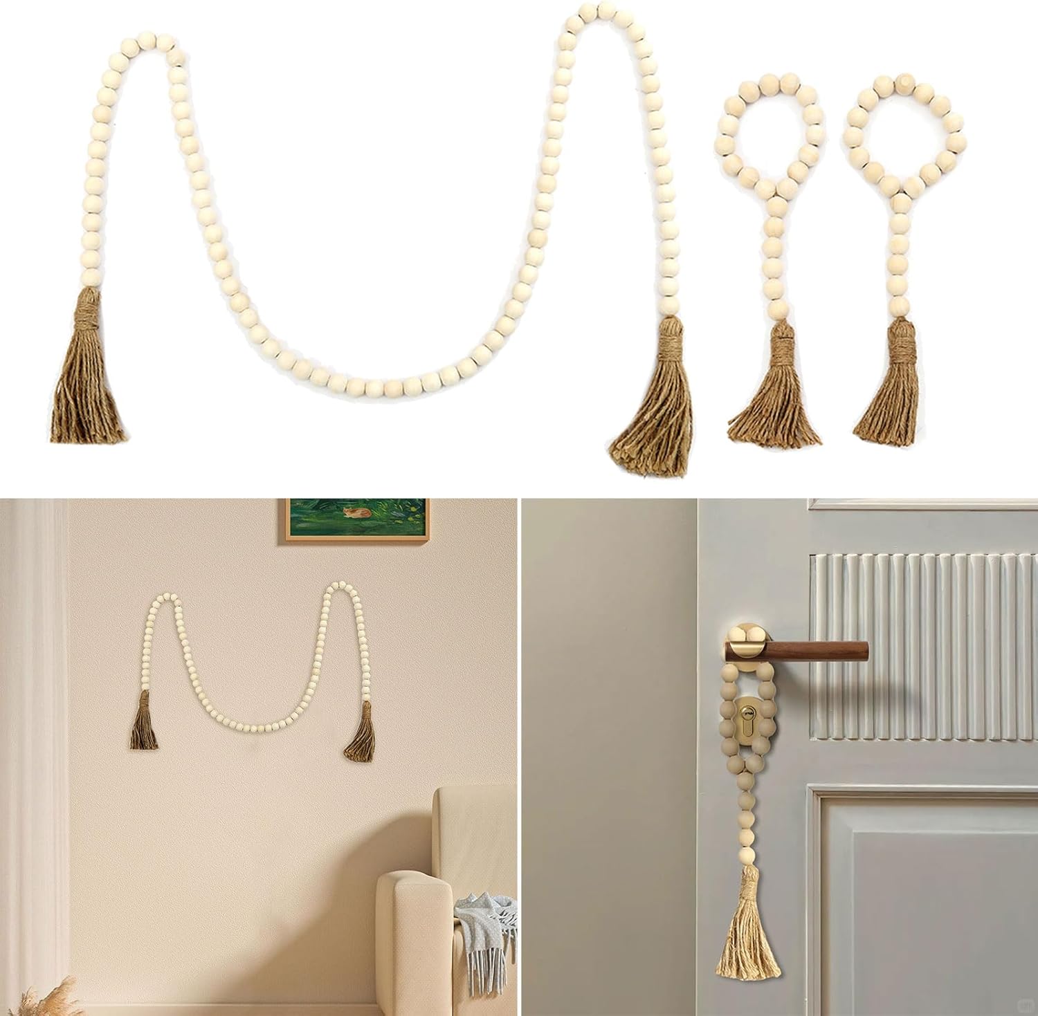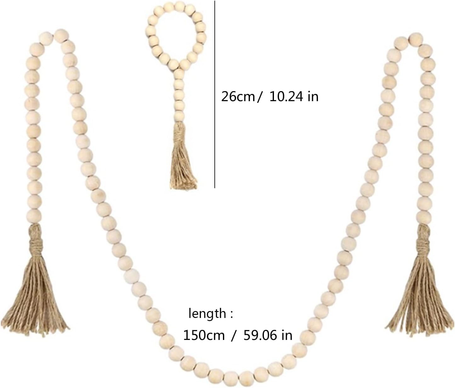 Ideale per casalinghe, interior designer e appassionati di artigianato che apprezzano le decorazioni della natura Queste ghirlande di perline di legno completano qualsiasi vignetta, mensola o centrotavola che porta calore ed eleganza al tuo spazio Ideale per la parete del soggiorno, la camera da letto sullo sfondo o aggiunge un tocco solido all'ambiente della festa Artigianato realizzato in legno di alta qualità e nappe, questa ghirlanda duratura e facile da integrare in vari decori domestici Migliora le decorazioni della tua casa con i 3 pezzi Ghirlande di perline di legno, presentano perline di legno naturale e nappe per una fattoria fascino