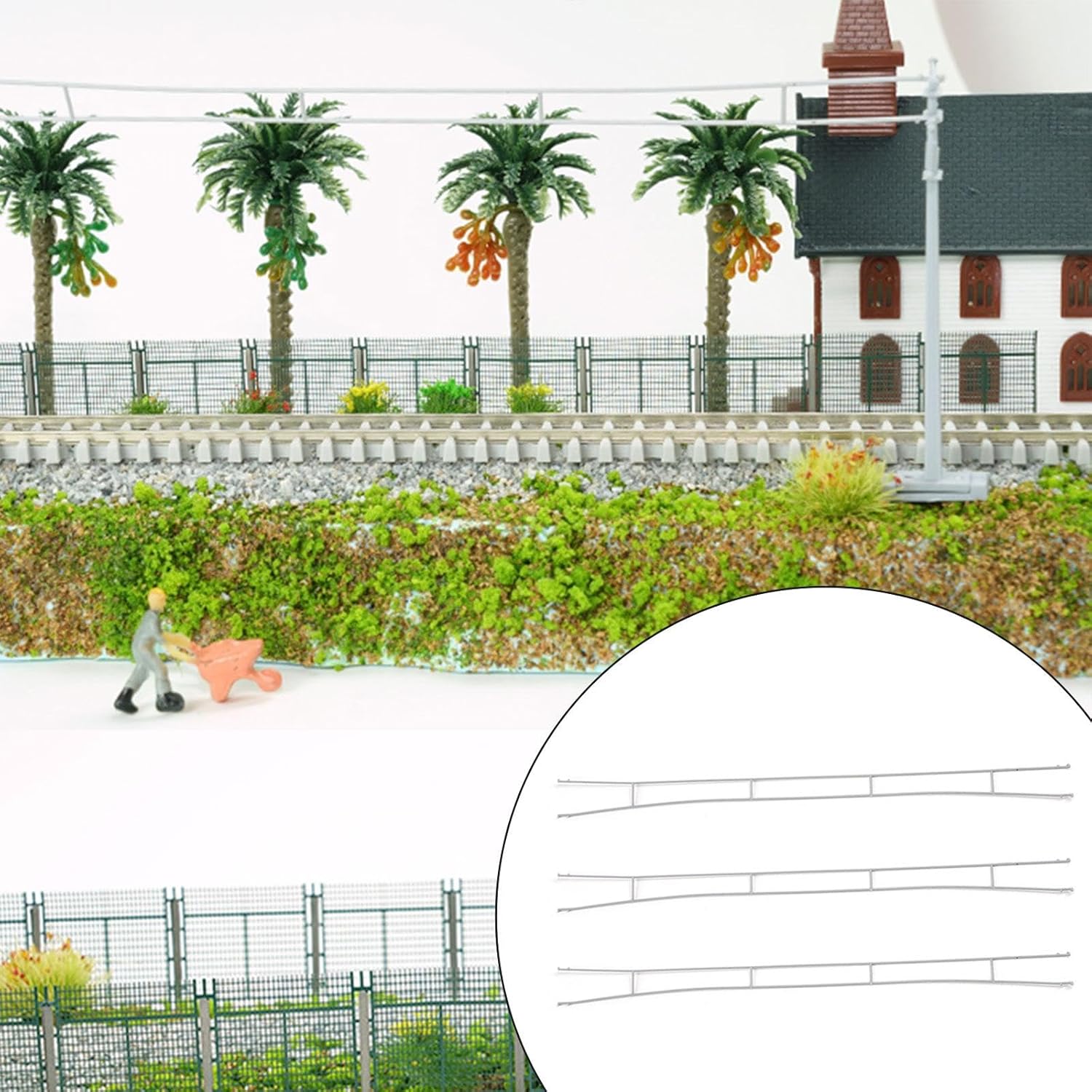 【Materiale di alta qualità】: i cavi della rete elettrica per mini scenari ferroviari sono realizzati in materiale PP di alta qualità, hanno una lavorazione raffinata e dettagli realistici, non sono facili da rompere e garantiscono un lungo periodo di utilizzo 【Installazione semplice】: i cavi della rete elettrica preverniciati per il layout dello scenario ferroviario sono facili da installare, facilmente posizionabili e sono una bella aggiunta al layout del tuo modello di treno 【Tipo di prodotto】: La confezione include 3 cavi di alimentazione per modellismo ferroviario in miniatura, 1:160 N, dimensioni circa 15 cm x 1 cm / 5,91 pollici x 0,39 pollici 【Ampie applicazioni】: il modello di cavo della rete elettrica in miniatura è ottimo per diorami ferroviari, modelli di parti stradali, accessori per binari ferroviari, decorazioni per micro paesaggi, modelli di scene in miniatura, decorazioni per tavoli di sabbia, esposizioni architettoniche, ecc. 【Bel regalo】: i modelli di cavi della rete elettrica con scenari ferroviari sono bei regali per appassionati e i collezionisti di miniature, rendendo la decorazione del tuo tavolo di sabbia in miniatura ancora più attraente