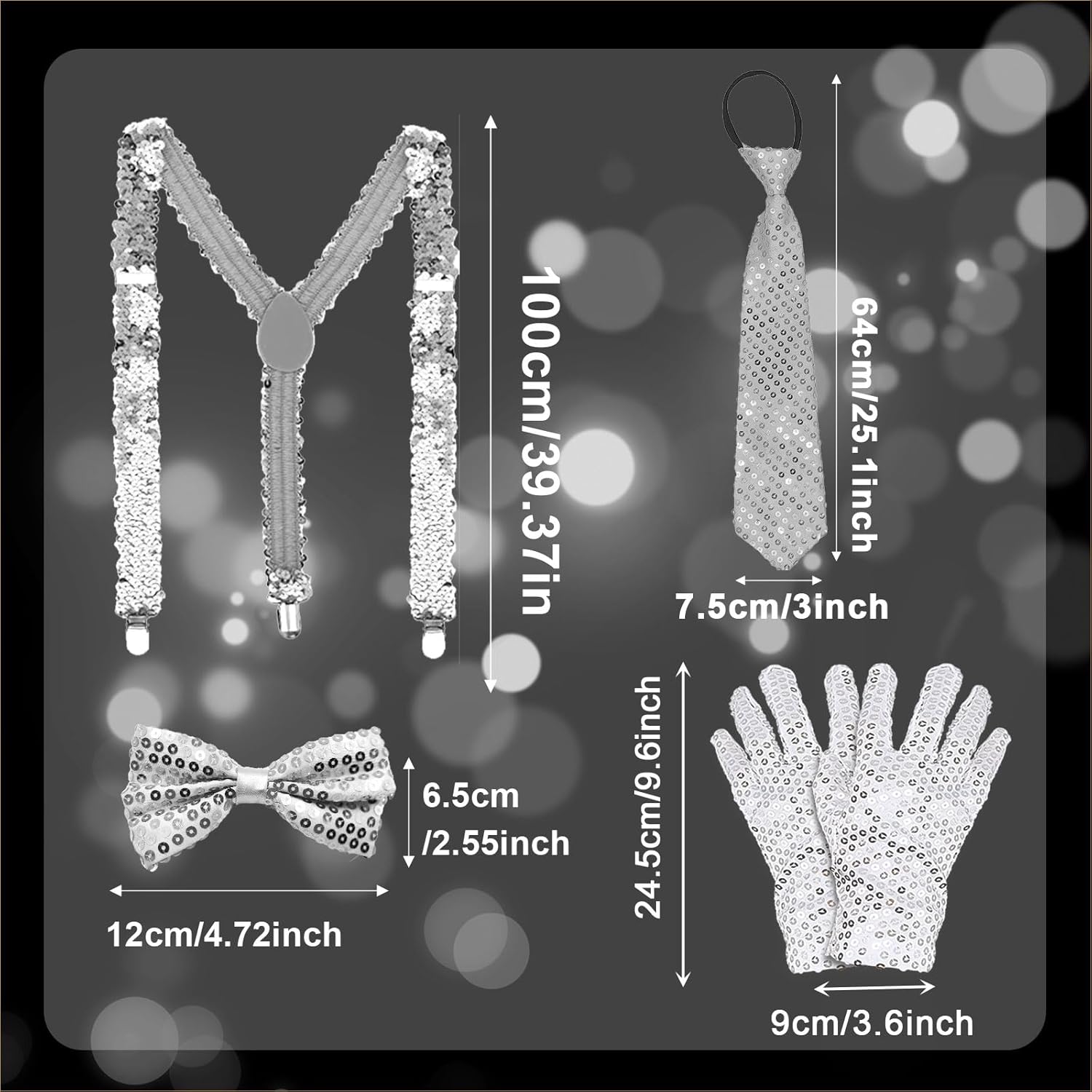 Descrizione prodotto Taglia: taglia unica. Colore: argento. Confezione: 4 accessori per danza jazz. Materiale: fibra di poliestere, plastica. Avviso di sicurezza No