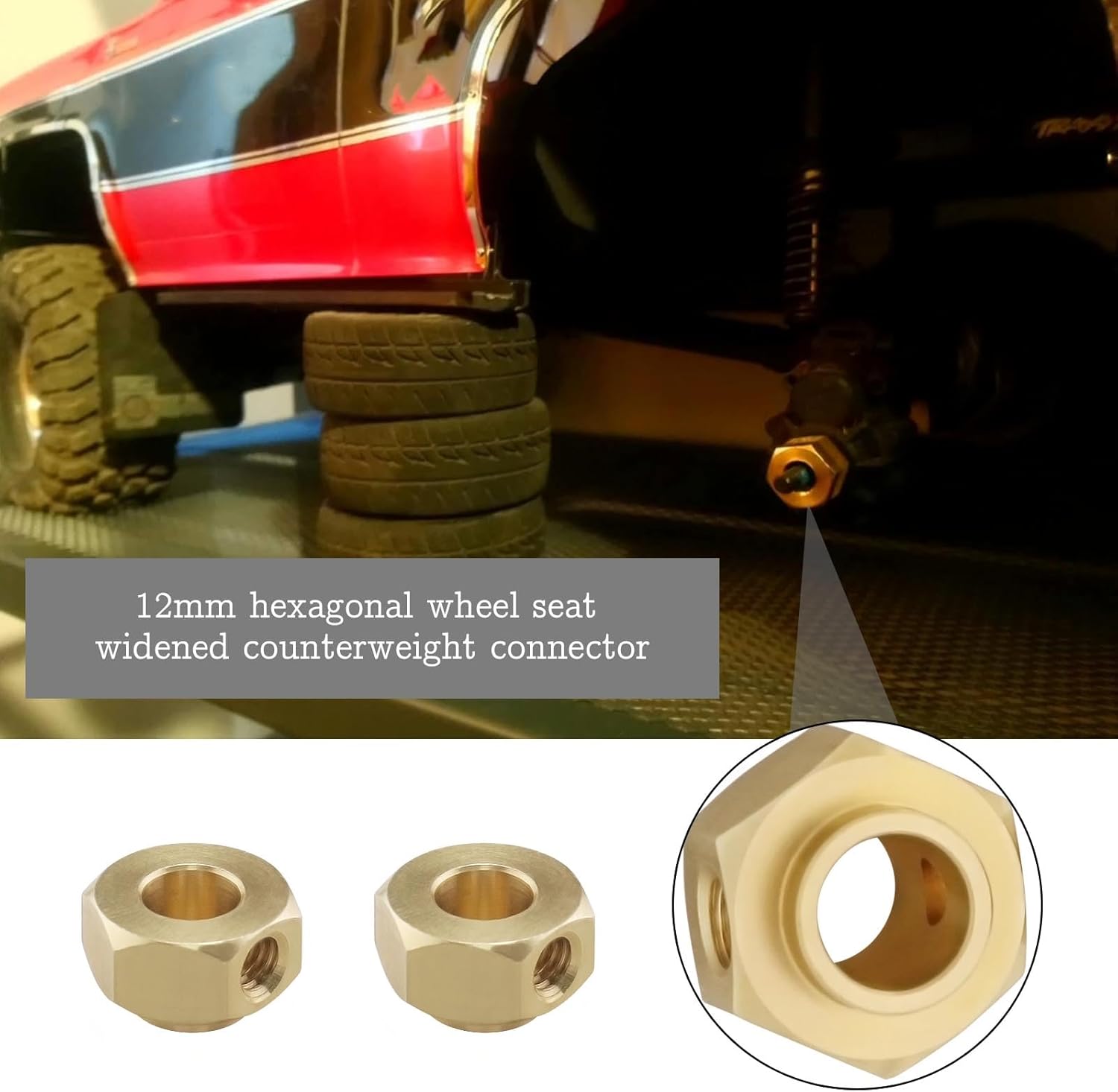 Spessore: 6 mm. Dimensioni esagonali: 12 mm. Diametro del foro centrale: 6 mm. Materiale in ottone di alta qualità: lavorato a CNC da materiale in ottone di qualità, aggiungendo peso al veicolo e abbassando il baricentro. Maggiore stabilità: estendi il passo del tuo modello RC per una migliore stabilità durante il funzionamento. Alta resistenza, basso scivolamento: fissa saldamente i mozzi con una struttura ad alta resistenza, riducendo la probabilità di scivolamento. Costruzione durevole: il design robusto e durevole garantisce la longevità, resistendo ai rigori delle avventure fuoristrada RC.