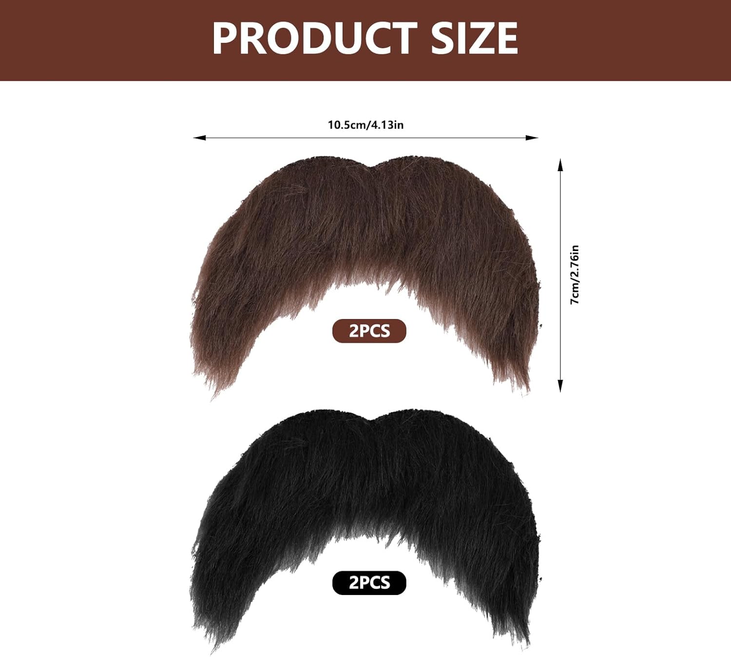 Nome del prodotto: baffi finti Quantità: 2 neri + 2 marroni.