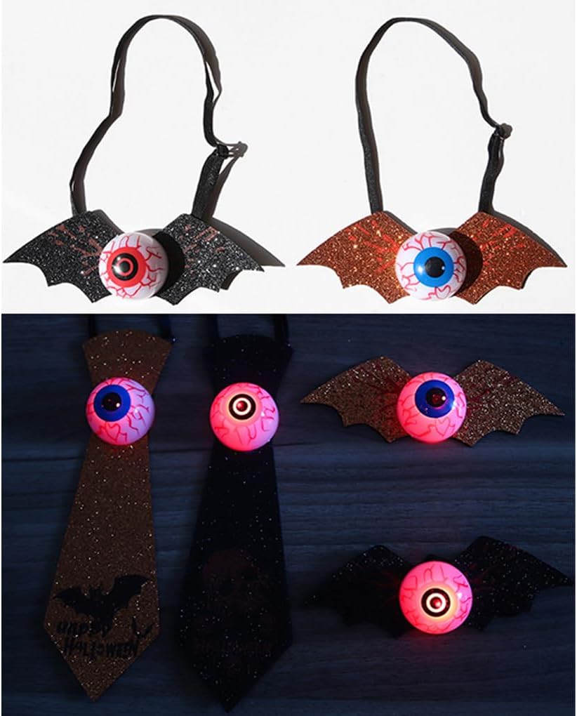 Descrizione: Halloween Per unico: distinguiti a qualsiasi festa con queste 4 cravatte luminose a forma di bulbo oculare e pipistrello, per bambini e adulti Fascia elastica regolabile: si adatta comodamente a tutte le dimensioni del collo, garantendo una vestibilità sicura e confortevole per qualsiasi celebrazione di Halloween Essenziale per la festa di Halloween: queste cravatte non sono un accessorio divertente, ma anche per decorazioni per feste e abiti a tema festivo Tessuto di qualità: il collo è comodo durante l'uso Facile da usare: indossa semplicemente queste cravatte luminose per aggiungere immediatamente un tocco spettrale al tuo vestito di Halloween, rendendoti l'anima della festa Specifiche: Colore: come mostrato. Materiale: poliestere. Nota: Potrebbero esserci delle piccole distorsioni di colore dovute a diverse risoluzioni del computer. Potrebbero esserci lievi errori dovuti a diverse misurazioni manuali. La confezione include: cravatta * 1 (4)