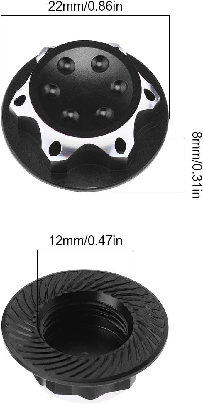 Il dado del mozzo è applicabile a 1/8 RC Crawler, Compatibile con AGAMA compatibile con raggi X compatibile con LOSI compatibile con HB compatibile con AE compatibile con Team- C compatibile con HSP. Il dado del mozzo dell'auto RC è realizzato in lega di alluminio di alta qualità, leggero e facile da trasportare. Il dado del mozzo ruota adotta un design antiscivolo, rendendo le prestazioni del prodotto più stabili. Alte prestazioni di simulazione di strumenti reali, aumenta l'autenticità della tua auto RC. La copertura antipolvere per mozzo ruota per 1:8 RC Car accessori ruota.