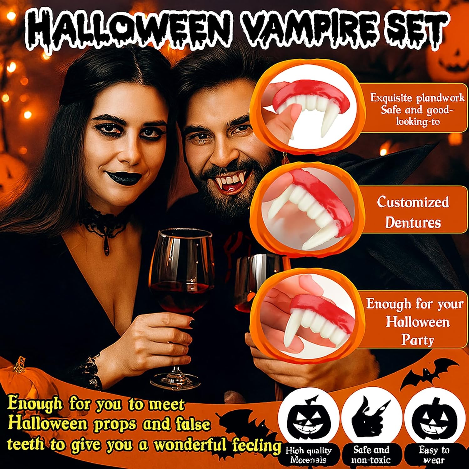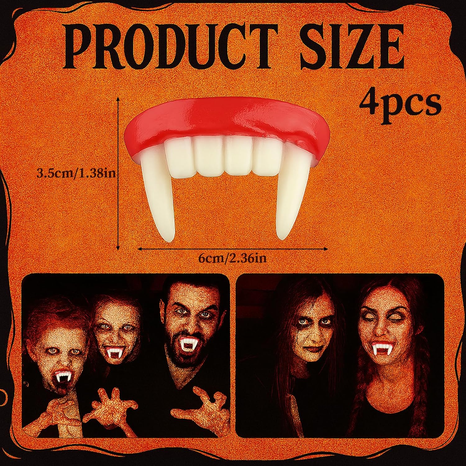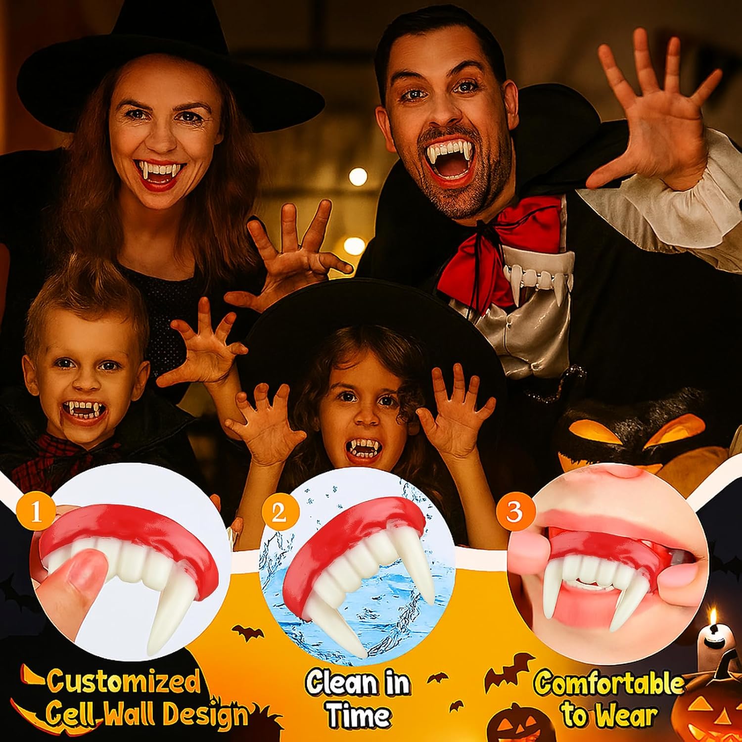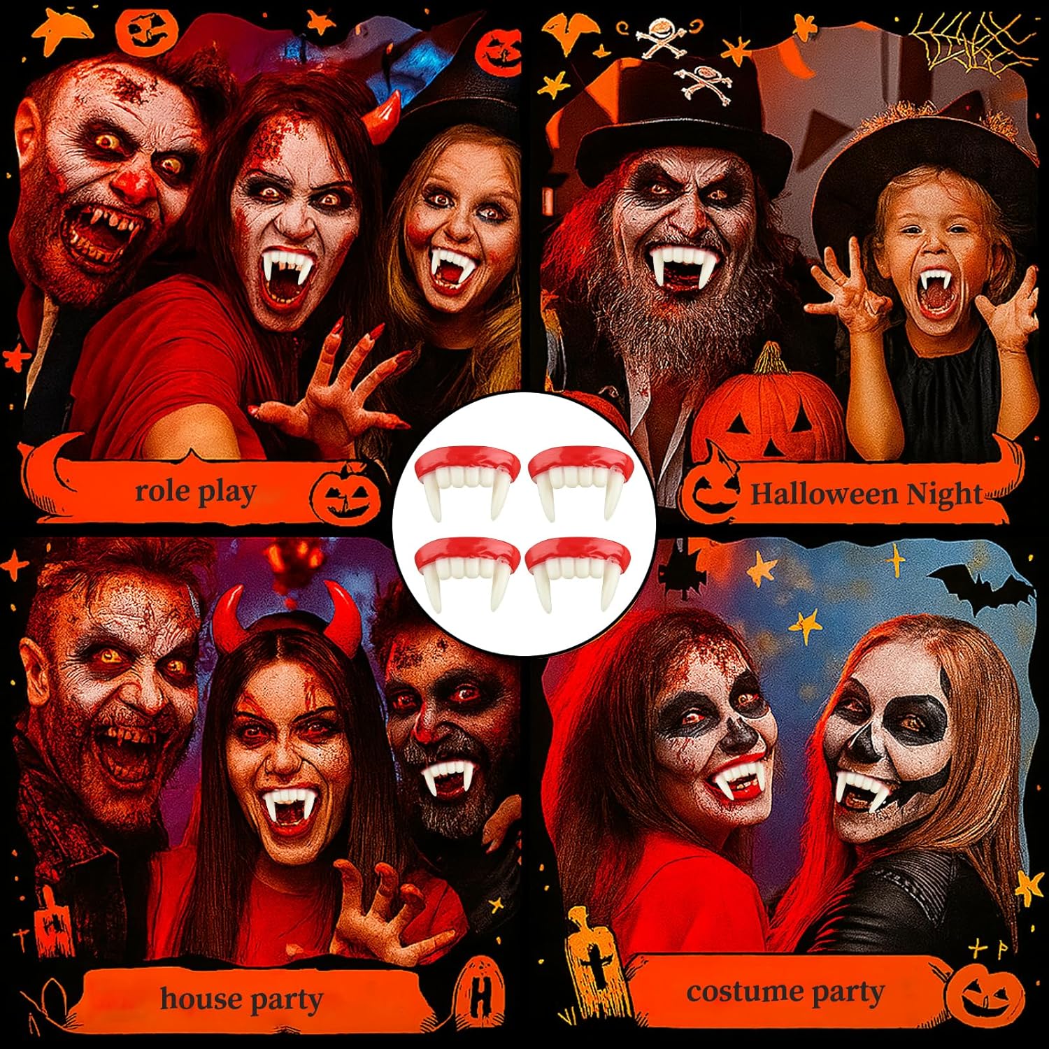 Set di denti da vampiro: include 4 zanne da vampiro di alta qualità per costumi realistici di Halloween e cosplay; i materiali durevoli garantiscono un uso duraturo per molteplici eventi e feste Design con zanne da vampiro: presenta denti da vampiro realistici che migliorano il tuo look a tema Halloween o horror; facili da indossare e rimuovere, rendendoli perfetti per rapidi cambi di costume Uso versatile: ideale per feste di Halloween, eventi cosplay e riunioni a tema horror; questi denti da vampiro possono completare vari costumi, da vampiri a zombi e lupi mannari Materiali di alta qualità: realizzate in resina sicura e resistente, queste zanne da vampiro sono comode da indossare; lavabili e riutilizzabili per future feste di Halloween o in costume Perfetto per scherzi: ideale per aggiungere un tocco spettrale alle feste di Halloween o al divertimento quotidiano; questi denti da vampiro porteranno sicuramente eccitazione e paura a qualsiasi evento