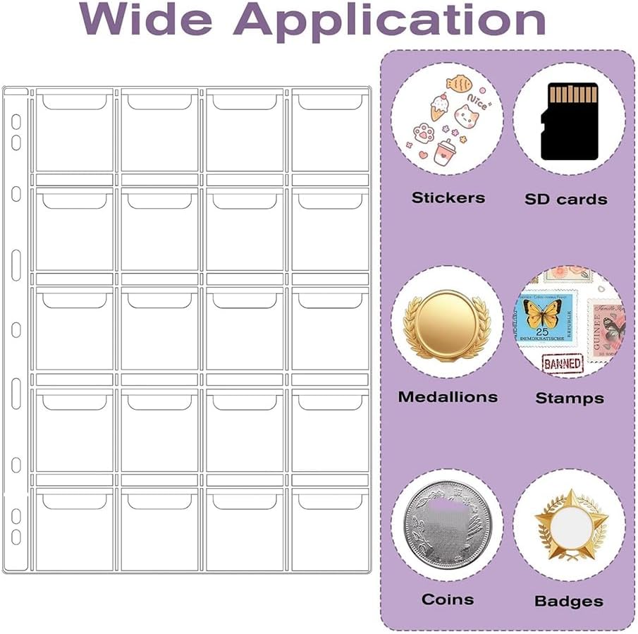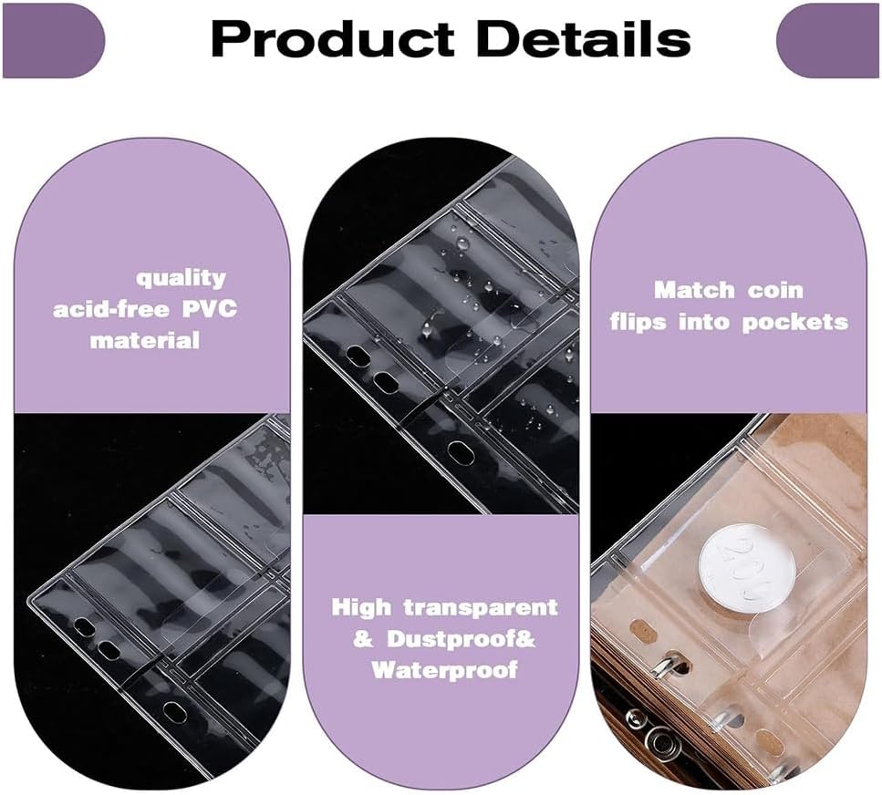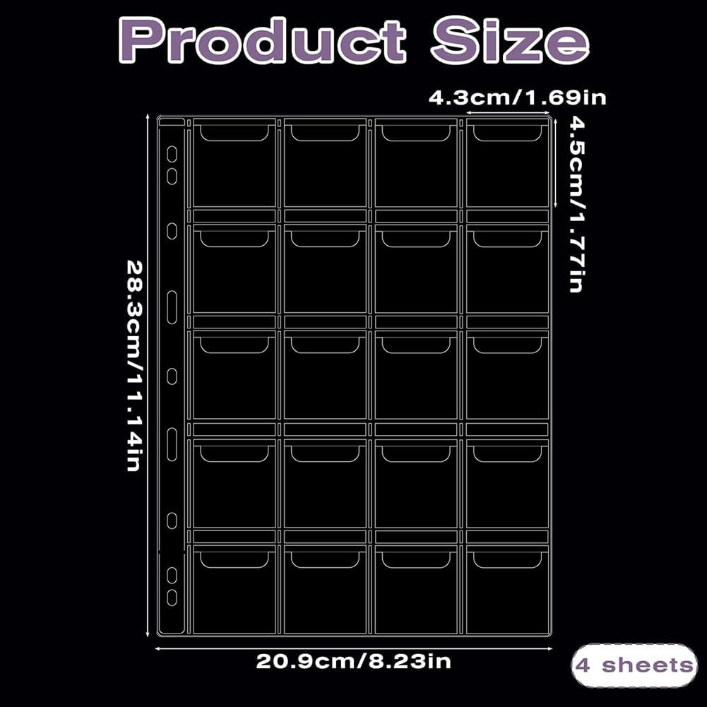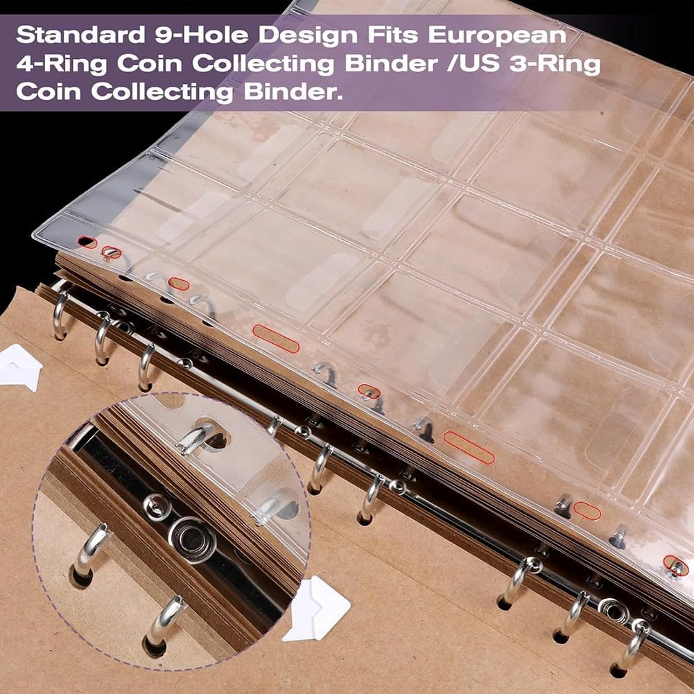 [Design sicuro] Il design a 9 fori si adatta alle cartelle standard a 3 o 4 anelli per un'organizzazione semplice. La borsa è dotata di una patta per evitare che le monete scivolino fuori, mentre la resistente struttura in PVC resiste agli strappi anche con un uso frequente. [Materiale durevole] I lati delle nostre tasche portamonete sono realizzati in PVC privo di acidi, garantendo una conservazione sicura e a lungo termine delle tue preziose collezioni. Il materiale altamente trasparente, antipolvere e atossico protegge le monete dall'umidità e dai danni ambientali. [Formato standard] La pagina della collezione di monete misura 20,9 x 28,3 cm (8,23 x 11,14 pollici) con 20 per foglio. La dimensione di ciascuno è 4,3 x 4,5 cm (1,69 x 1,77) ed è perfettamente compatibile con 2 x 2 grandi scomparti per monete per riporre in sicurezza monete, francobolli e piccoli oggetti da collezione. [Multiuso] Questi inserti trasparenti per cartelle portamonete sono ideali per conservare monete, dollari d'argento, francobolli, medaglie, distintivi e persino carte collezionabili. Le loro proprietà resistenti all'acqua e all'umidità li rendono adatti sia ai collezionisti occasionali che ai numismatici seri. [Pacchetto completo] Riceverai 4 con 20 scomparti per monete. La confezione compatta consente una facile conservazione, mentre la quantità offre spazio sufficiente per organizzare varie collezioni o utilizzarlo come pratico regalo per altri innamorati.