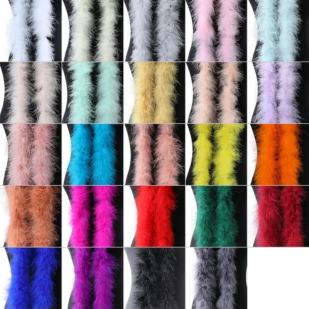 Realizzato in piume di tacchino naturali, molto comode e morbide. Tutte le piume vengono pulite professionalmente alla perfezione. Vestito da utilizzare come boa, decorazioni per lampada, stanza, ecc., come preferisci. Ottimo per matrimoni, concerti, feste, decorazioni per la casa, attività, spettacoli, artigianato, regali di Natale, costumi, bouquet di imballaggi, ecc. NOTA: le piume sono tutte naturali e realizzate a mano, è normale che possano esserci gocce di piume, ma ciò non influirà sul tuo utilizzo.