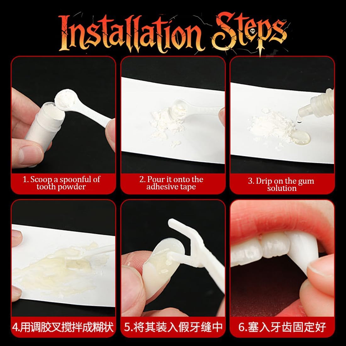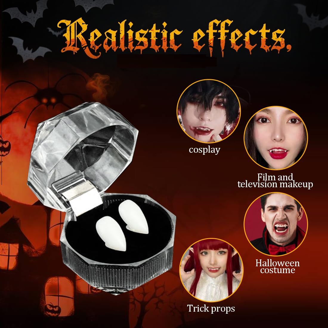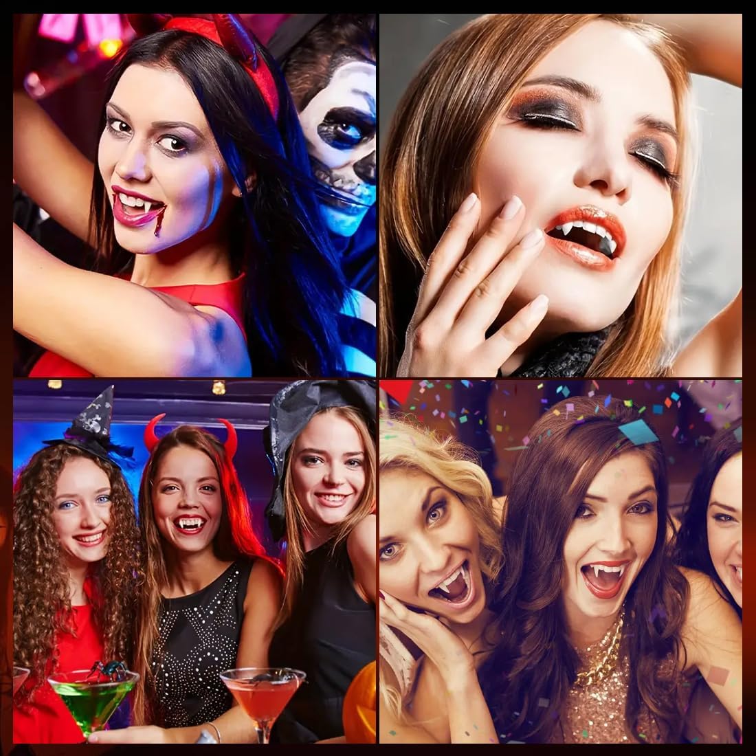 Materiale di alta qualità: Questo set di denti da vampiro per Halloween è realizzato in resina igienica di alta qualità, non tossica e delicata sui denti. I denti da vampiro super realistici sono comodi da indossare, riutilizzabili e non irritano la pelle della bocca. Ideale per adulti che cercano un aspetto autentico da vampiro Varie dimensioni disponibili: Il set include 4 paia di denti da vampiro in diverse dimensioni (13 mm, 15 mm, 17 mm e 19 mm) e una confezione di perle adesive. Il collante incluso elimina la necessità di acquistare adesivi separati e garantisce un fissaggio semplice e sicuro dei denti da vampiro Facile da applicare: Le perle adesive incluse si sciolgono in acqua calda (80-100 gradi) e si applicano facilmente all'interno dei denti da vampiro. Il raffreddamento rapido delle perle richiede un'applicazione veloce per garantire una fissazione stabile e duratura, perfetta per feste e cosplay Confezione pratica: Ogni paio di denti da vampiro è confezionato in una piccola scatola trasparente, ideale per una conservazione comoda e ordinata. I denti sono durevoli e riutilizzabili, perfetti per feste di Halloween o eventi in costume, offrendo un tocco realistico e accattivante Uso versatile: Questi denti da vampiro sono perfetti per eventi di cosplay come Halloween, feste a tema o giochi di ruolo. Ideali per interpretare personaggi come vampiri, lupi mannari o zombie, si abbinano perfettamente a costumi da vampiro per adulti e bambini, creando un effetto sorprendente