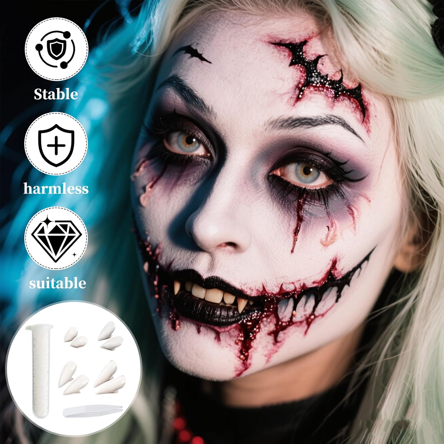 Materiale: questi oggetti di scena per cosplay di Halloween sono realizzati in resina sicura. Le protesi dentarie artificiali sono progettate in modelli realistici in modo da poter indossare i denti del vampiro per giocare come un vampiro o uno zombie. Questo ti distinguerà dalla folla e riceverai complimenti dagli altri. Misura opzionale: riceverai 4 paia di protesi per feste di Halloween Cosplay in diverse dimensioni oltre a 1 tubetto di colla solida (monouso), quindi non è necessario acquistare una colla separata. Questi denti da vampiro horror sono disponibili in 4 misure: 13 mm, 15 mm, 17 mm, 19 mm, per soddisfare le diverse esigenze di cosplay. Facile da usare: riscaldare i bastoncini di colla dei denti da bianco a chiaro (l'acqua calda è adatta a questo), modellarli intorno ai denti e premere per ottenere una forma adatta. Quindi rimuovere i denti del vampiro di Halloween e premere per qualche tempo sulla colla (le perle si raffreddano rapidamente, quindi dovrebbero essere maneggiate rapidamente). Buon imballaggio: ogni paio di denti da vampiro è confezionato in una piccola scatola trasparente, che facilita la conservazione delle zanne false della festa di Halloween e rende le protesi dei vampiri riutilizzabili più volte. I denti sono flessibili e facili da installare per offrirti una sensazione confortevole. Ampia applicazione: i denti da vampiro di Halloween sono ideali per giochi di ruolo alle feste come vampiro, lupo mannaro, zombie o accessori per costumi cosplay. Possono anche essere inviati come regalo a familiari e amici. Con questi denti da vampiro di Halloween puoi rendere il tuo costume più realistico e abbinarlo al tuo abbigliamento da vampiro per creare diversi stati d'animo.