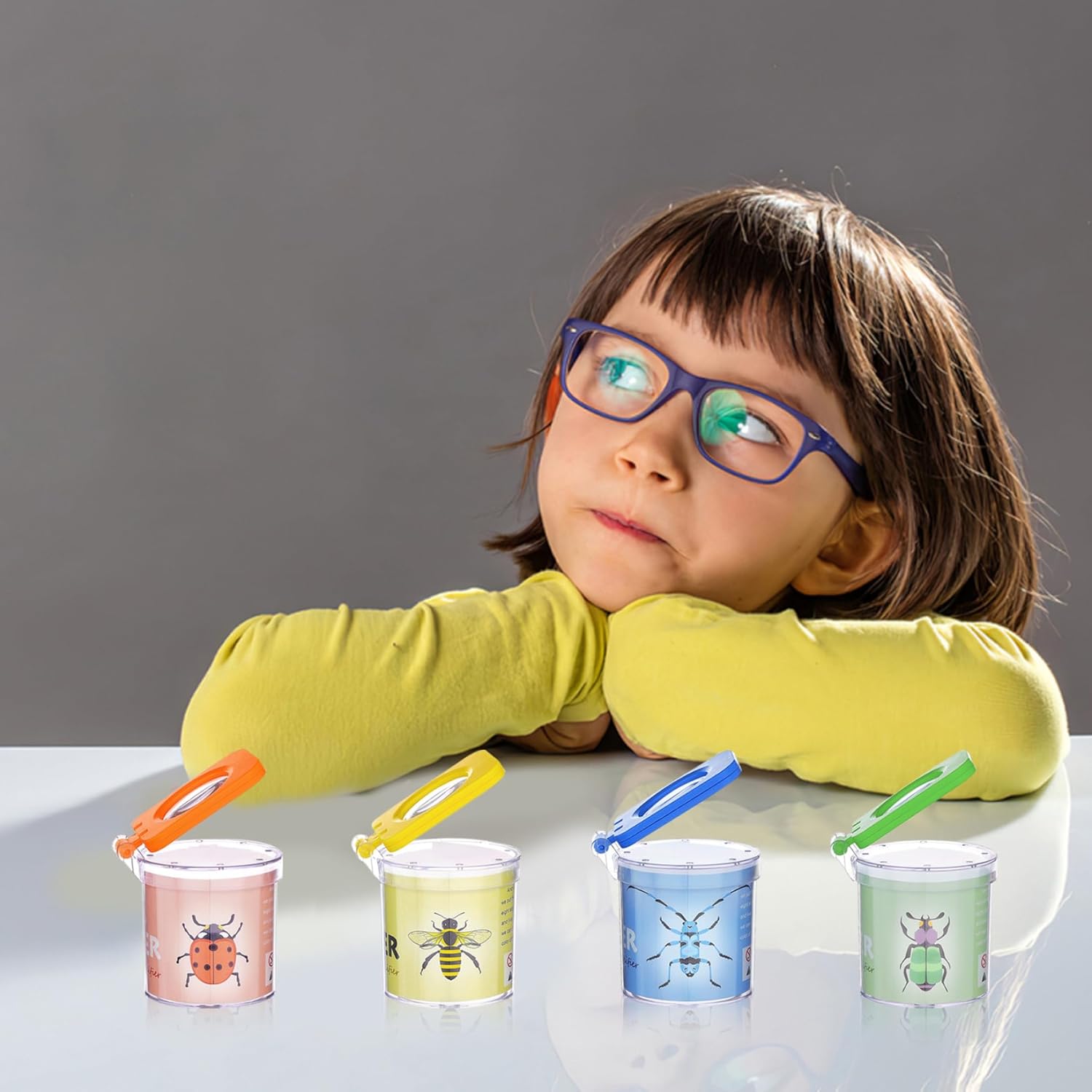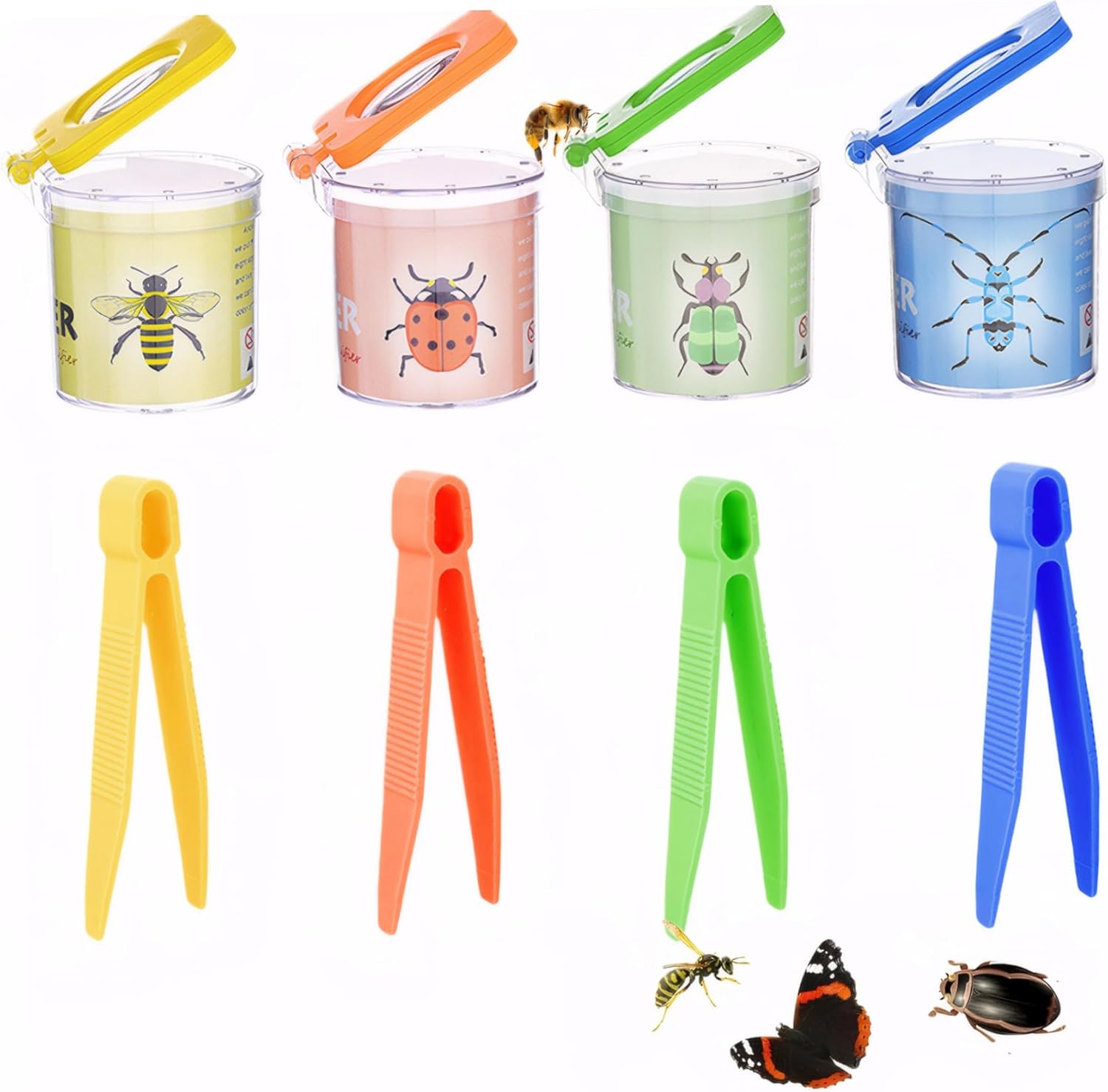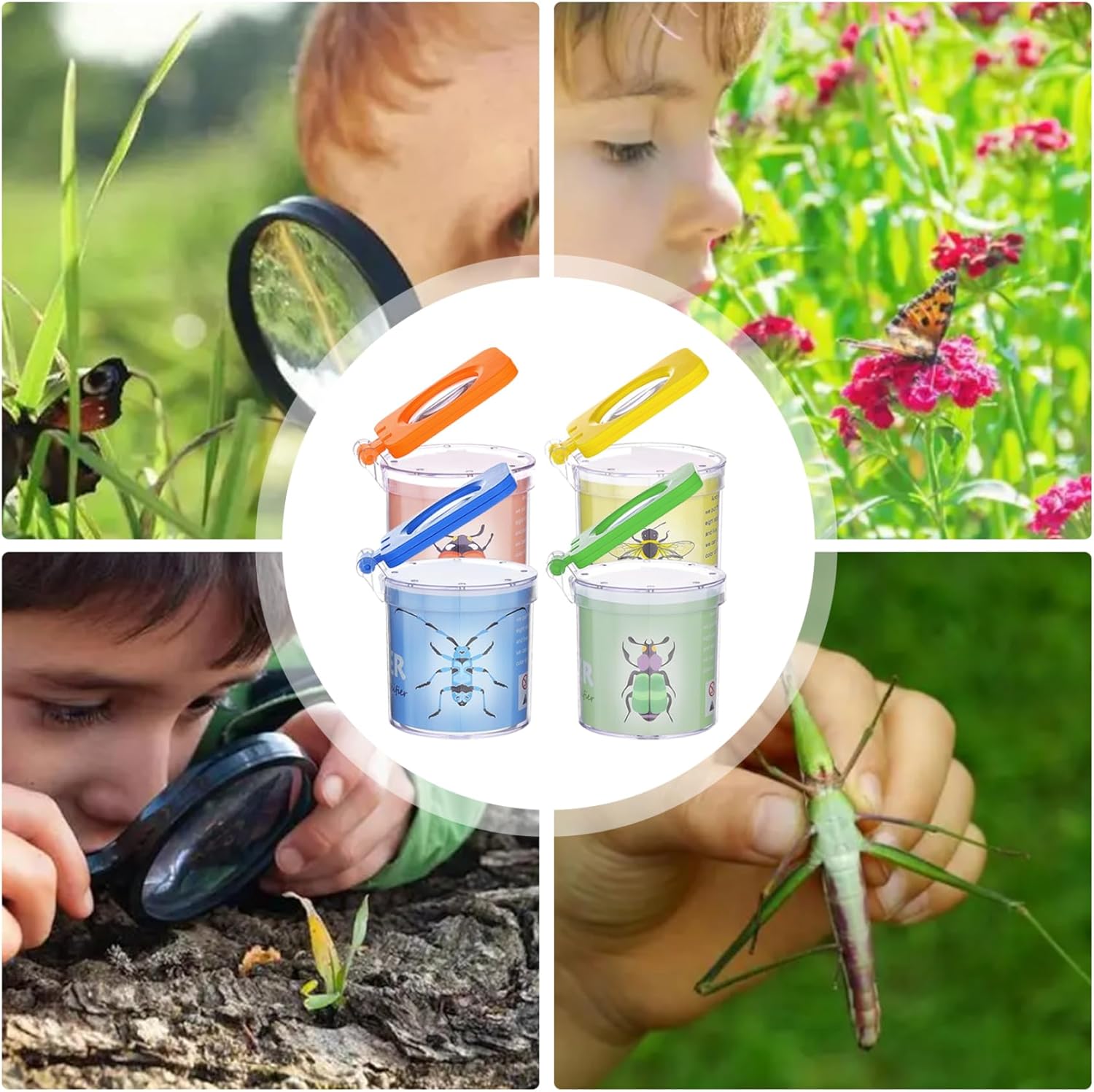 di imballaggio: il pacchetto contiene 4 pezzi di scatole di insetti ingrandita, 4 diversi colori di giallo, verde, arancione e blu, colori vivaci, la combinazione multi-pack è sufficiente per condividere con gli amici per osservare insieme gli insetti, molto adatti per la raccolta di vari insetti che osservano e studiano. Strumenti educativi: questi contenitori di vetro ingranditore sono perfetti per i genitori e i bambini per osservare ed esplorare la insieme e anche adatti allo studio e all'apprendimento di insetti e altri animali nelle aule scolastiche, contribuendo ad aumentare l'interesse dei bambini nell'apprendimento e coltivare un amore e il rispetto per la. Materiale: il catcher per bambini è realizzato in materiale plastico..Il corpo della scatola è robusto e strutturato..Il corpo in scatola trasparente ti consente di osservare più chiaramente insetti e piccoli animali..Il coperchio adotta un design anti-slip a flip-top per una facile apertura e chiusura. Ampiamente utilizzato: gli insetti e i bug per i bambini sono dotati di pinze portatili, che possono essere utilizzate all'aperto per catturare gli insetti e osservare la ricerca e possono anche essere utilizzati in aule o laboratori per i bambini per osservare da vicino insetti e animali..Consenti ai bambini di avere una piacevole esperienza di osservazione senza contatto. Design del foro dell'aria: questo kit per catturare per bambini ha più fori di ventilazione nella parte superiore, che possono fornire un buon luogo di ventilazione e fresca per gli insetti all'interno e osservare meglio le loro attività e comportamenti della vita.