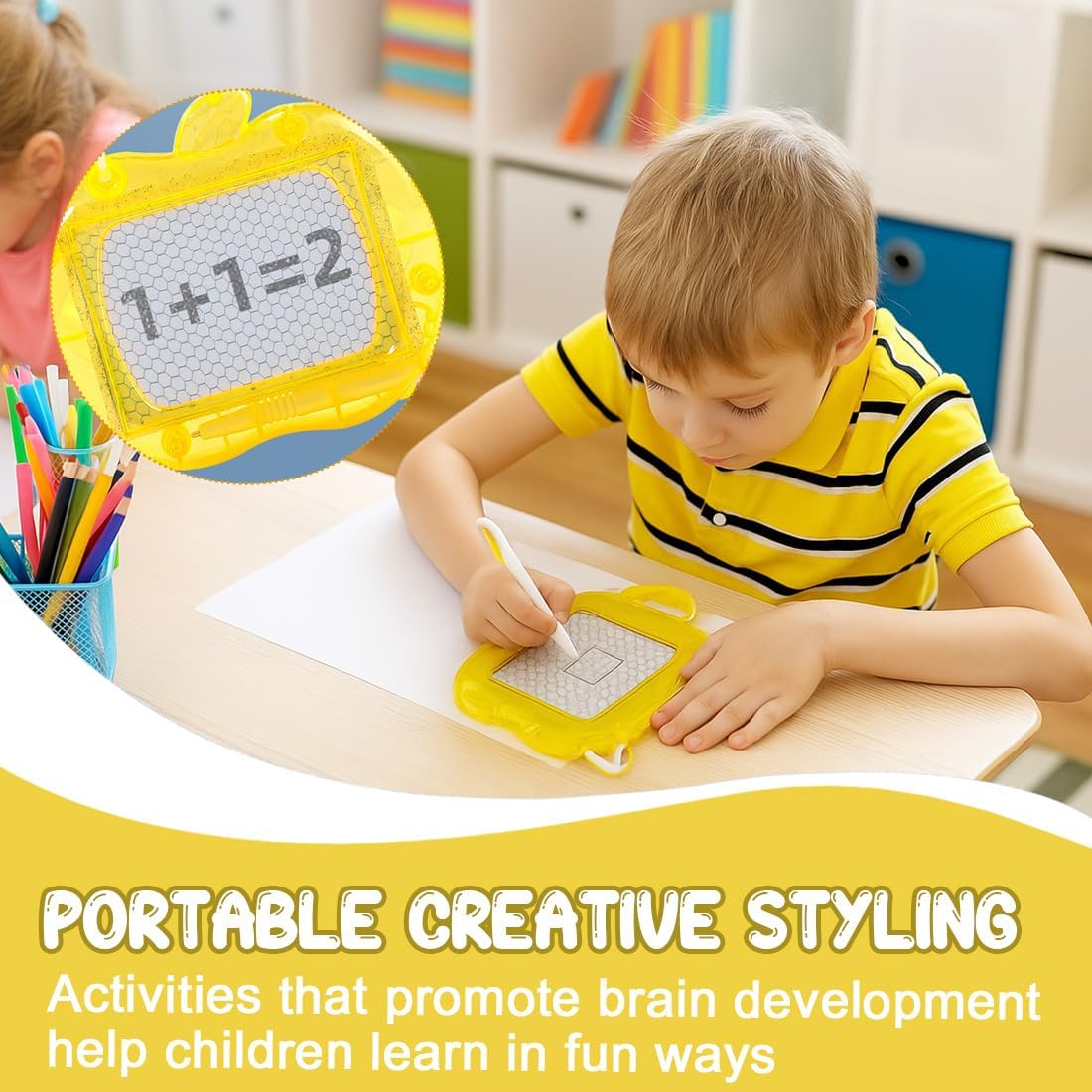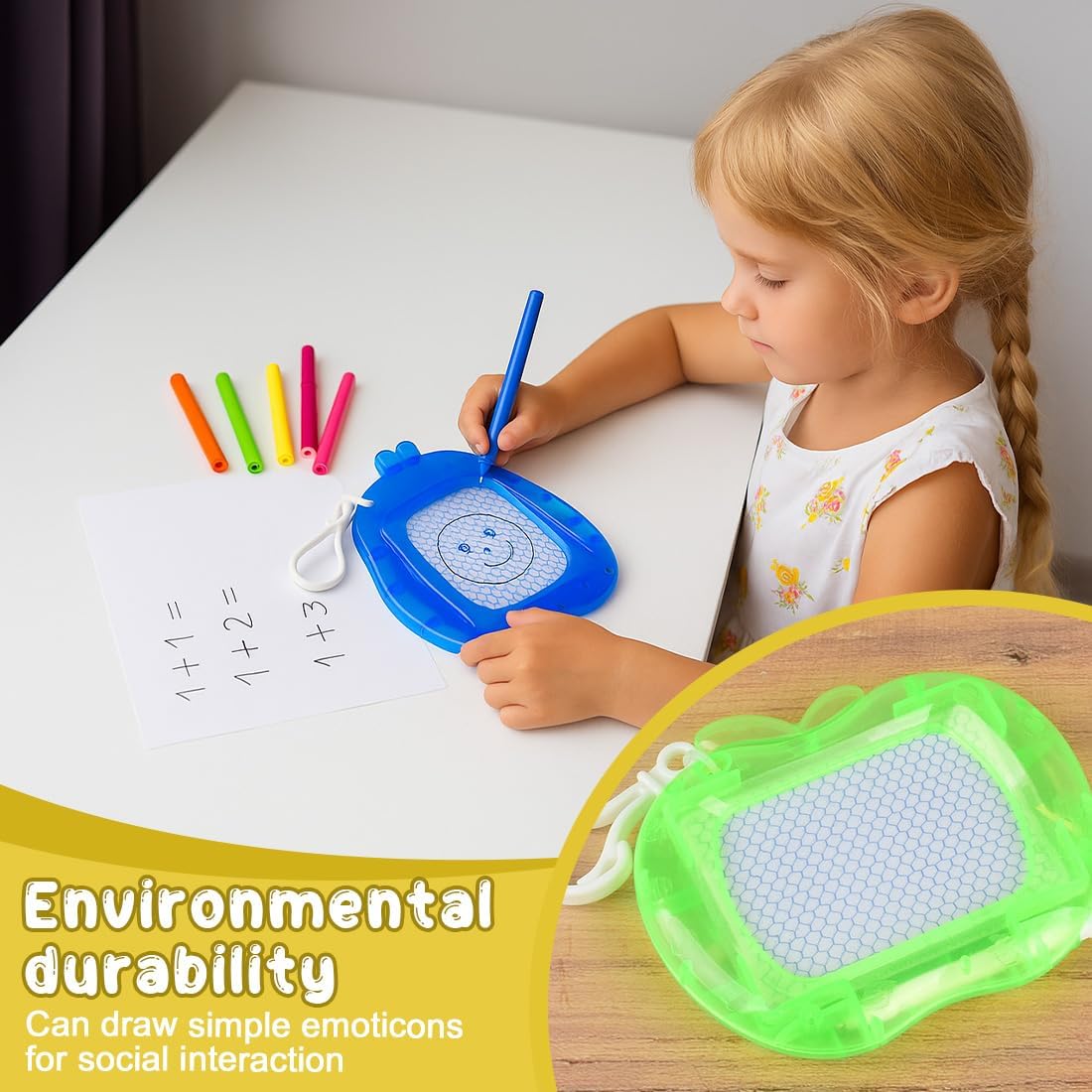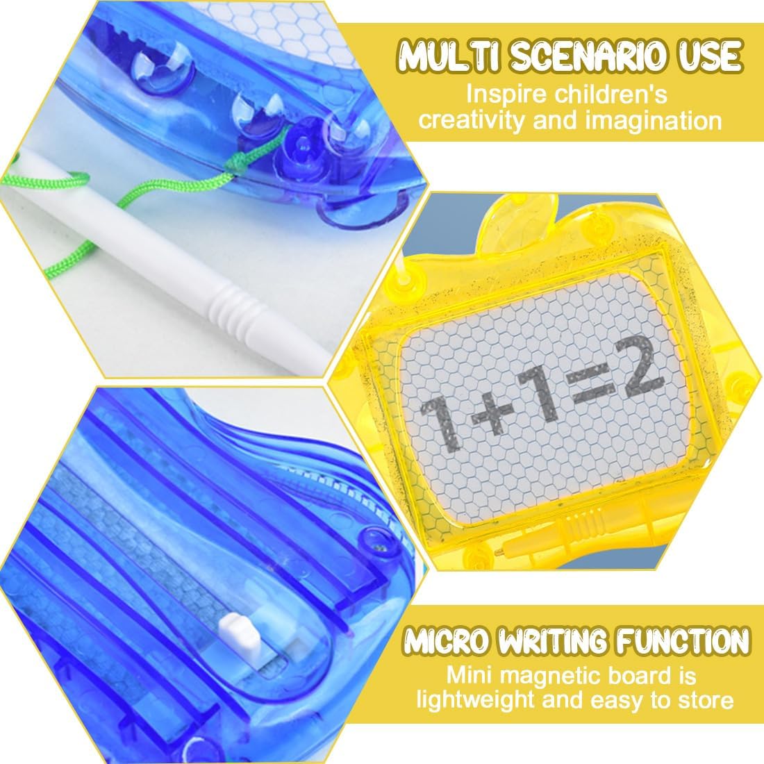 1. 🎨【Disegna con facilità】Questi 4 mini tavoli da disegno magnetici da HABNI sono perfetti per i piccoli artisti in erba. Con la loro superficie liscia e il meccanismo di cancellazione a scorrimento, i bambini possono disegnare e cancellare con estrema facilità, stimolando la loro creatività e immaginazione ogni volta che lo desiderano. 2. 🍏【Design adorabile】I tavoli da disegno hanno forme di frutta, come mele e pere, con colori vivaci come giallo-verde per le mele e rosso-blu per le pere. Questi colori accattivanti e le forme carine renderanno il tempo di gioco dei bambini ancora più divertente e coinvolgente, trasformando il disegno in un'esperienza ancora più piacevole. 3. 📏【Dimensioni portatili】Le dimensioni compattissime di questi tavoli da disegno, 10×8,5 cm per le mele e 11,5×8,5 cm per le pere, li rendono perfetti per essere portati ovunque. I bambini possono disegnare ovunque, a casa, in viaggio o anche all'aperto, rendendo il gioco portatile e accessibile in qualsiasi momento. 4. 🗝【Funzione multiuso】Non solo per disegnare, questi tavoli da disegno possono essere usati anche come portachiavi grazie alla loro forma di frutta. I bambini possono portarli con sé come un accessorio carino, aggiungendo un tocco di creatività e personalità al loro look quotidiano. 5. 🌟【Per i piccoli artisti】Realizzati in materiale plastico sicuro e di alta qualità, questi tavoli da disegno sono perfetti per bambini di 3 anni e oltre. Sono progettati per essere duraturi e sicuri, garantendo che i bambini possano godersi il loro tempo di gioco in modo sicuro e divertente, stimolando il loro sviluppo creativo e motorio.