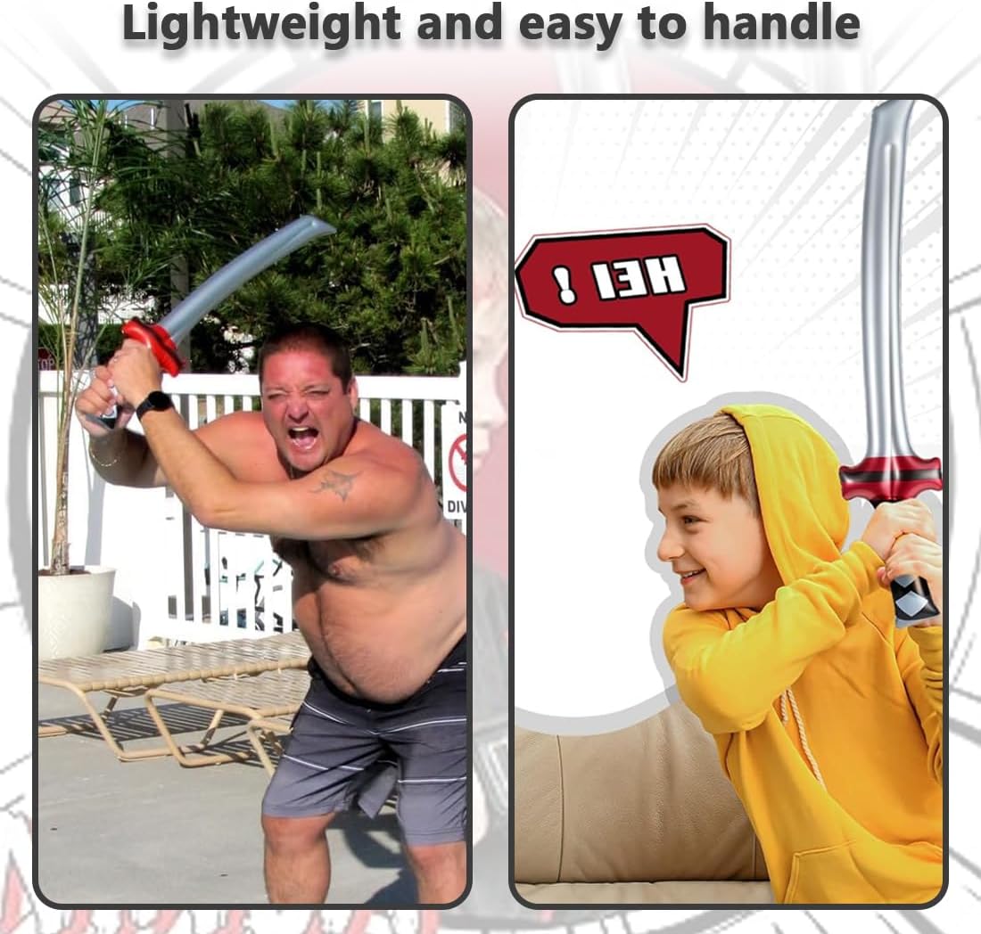 Design unico: Una decorazione di compleanno vivace e adorabile che i bambini adoreranno. Le spade ninja gonfiabili permettono ai piccoli di giocare al coraggioso guerriero. Questo set è perfetto per rendere le feste di compleanno un'esperienza speciale e stimolare la fantasia dei bambini Materiale sicuro e di qualità: Realizzato in morbido silicone atossico, sicuro e inodore. Garantisce ore di divertimento per i bambini ed è un regalo ideale per ogni occasione Versatilità per ogni occasione: Perfetto per feste di compleanno a tema ninja, feste di Halloween, Natale, feste in maschera e molto altro. Ideale anche come premio per cacce al tesoro, ricompense scolastiche, riempitivi per calze o regali per feste Regalo perfetto per feste: Questa spada ninja gonfiabile è un successo garantito per ogni festa. Farà felici i bambini e porterà un sorriso sui loro volti. Ideale sia come decorazione di compleanno che come regalo per feste di compleanno per bambini Un'esperienza indimenticabile: Trasforma la tua festa in un evento memorabile con questo set di spade ninja. I bambini lo adoreranno e sarà il punto culminante di ogni celebrazione, rendendo ogni momento speciale e divertente