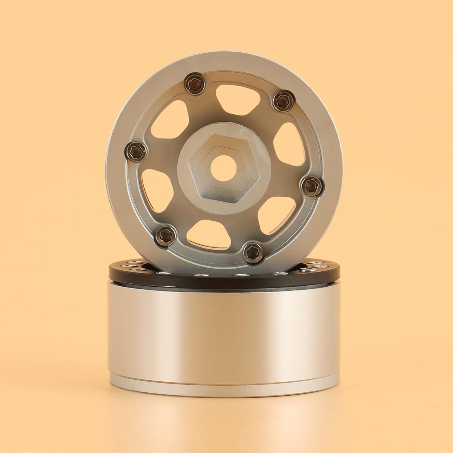 Caratteristiche: Aspetto nuovo ed esecuzione squisita 100% nuovo e di alta qualità Cerchi in metallo da 1,55 pollici per auto su RC 1/10