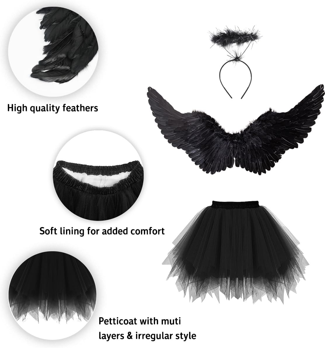 ✔4 pezzi ali d'angelo costume signore - angelo costume set contiene 1 x gonna TuTu, 1 x ali d'angelo adulto, 1 x aureola, 1 x bacchetta magica.il perfetto angelo costume set! ✔Bella e nobile - ali d'angelo sono fatti di piume di cigno, le piume reali sono attaccati a un vettore di cartone, con la luce radiante angelo, squisito ed elegante! ✔Dimensioni per adulti - Le ali d'angelo Winwild hanno una dimensione di circa 80 x 40 cm, appositamente sviluppate per le signore nelle taglie.Sono abbastanza grandi, anche ad un'altezza di 180cm, tuttavia, è possibile vedere le ali dal davanti. ✔Sono state prese in considerazione anche le gonne TUTU - la lunghezza della gonna in tulle è di 45 cm-48,4 cm, adatta a circonferenze vita di 66-110 cm. Fodera morbida e sottogonna con muti strati e stile irregolare, ottimo servizio per le vostre attività di carnevale, Halloween, festa di pesca! ✔Servizio soddisfacente - Gonna convessa elastica con ali d'angelo set di 4, taglia unica per tutte le donne 160-180cm!Si prega di contattarci se avete domande e vi daremo una risposta soddisfacente.