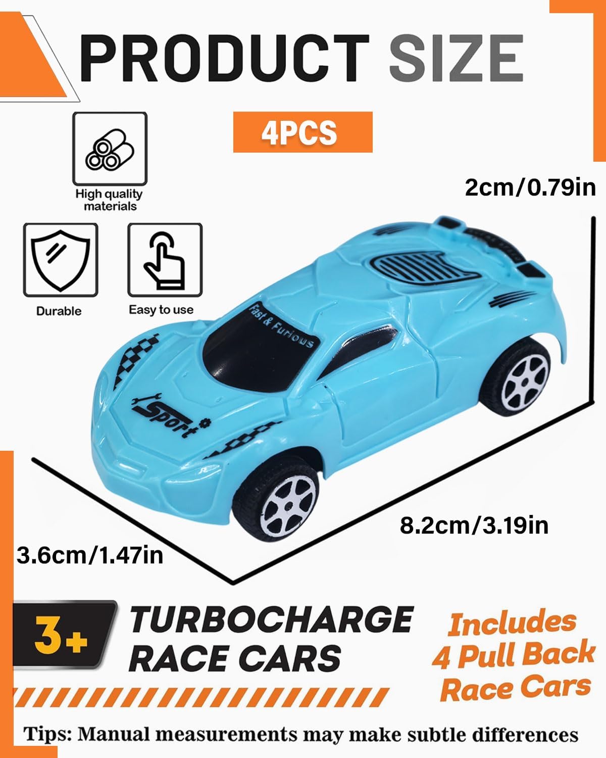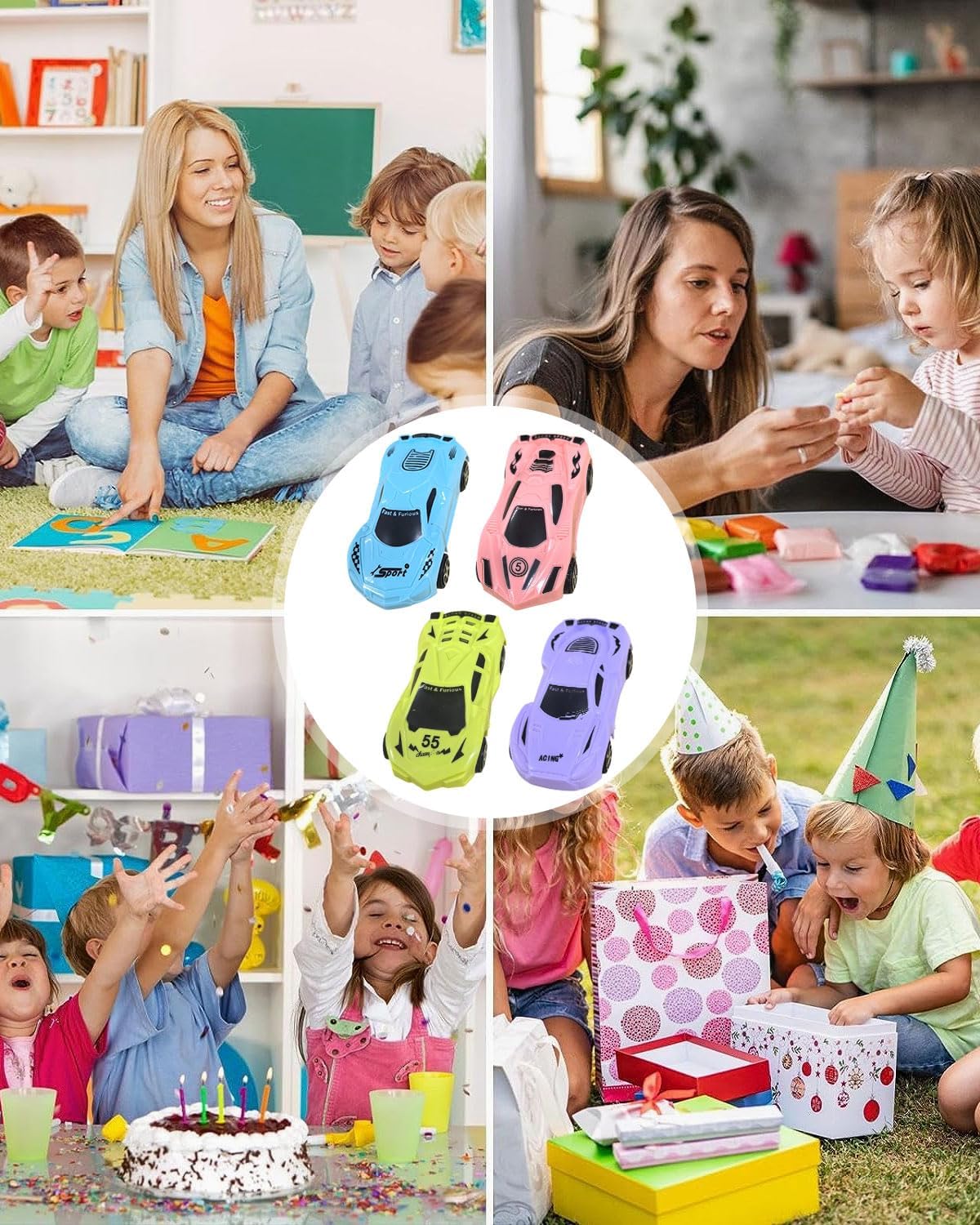 Non richiede batterie: tira fuori l'auto acrobatica per una certa distanza e allontanala; si muoverà automaticamente in avanti. Funzione di espulsione: l'auto acrobatica che salta mi affascina. Ci sono molti modi per giocare con l'auto a trazione posteriore. La carrozzeria di questa auto è realizzata in lega, robusta e durevole, e non c'è bisogno di preoccuparsi di danni. Sicuro e resistente: la base di questa auto è realizzata in plastica di alta qualità e la carrozzeria è in alluminio. Questa macchinina leggera e compatta presenta bordi e curve morbide e non presenta parti taglienti che potrebbero ferire il bambino. I quattro pneumatici in gomma sono morbidi e flessibili per ridurre l'impatto dell'auto sul terreno. Regalo perfetto: i tuoi bambini potranno divertirsi con questo fantastico spettacolo di acrobazie. Ci sono 4 diverse auto con cui giocare a casa. Questo è un giocattolo popolare per i più piccoli o per gli amanti delle macchinine. Servizio clienti: Per qualsiasi domanda sui nostri prodotti, puoi contattarci in qualsiasi momento e risolveremo il problema entro 48 ore.