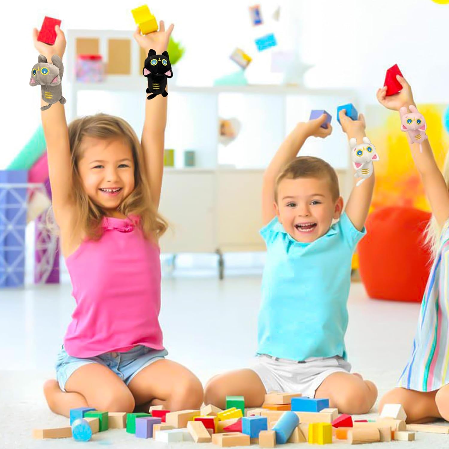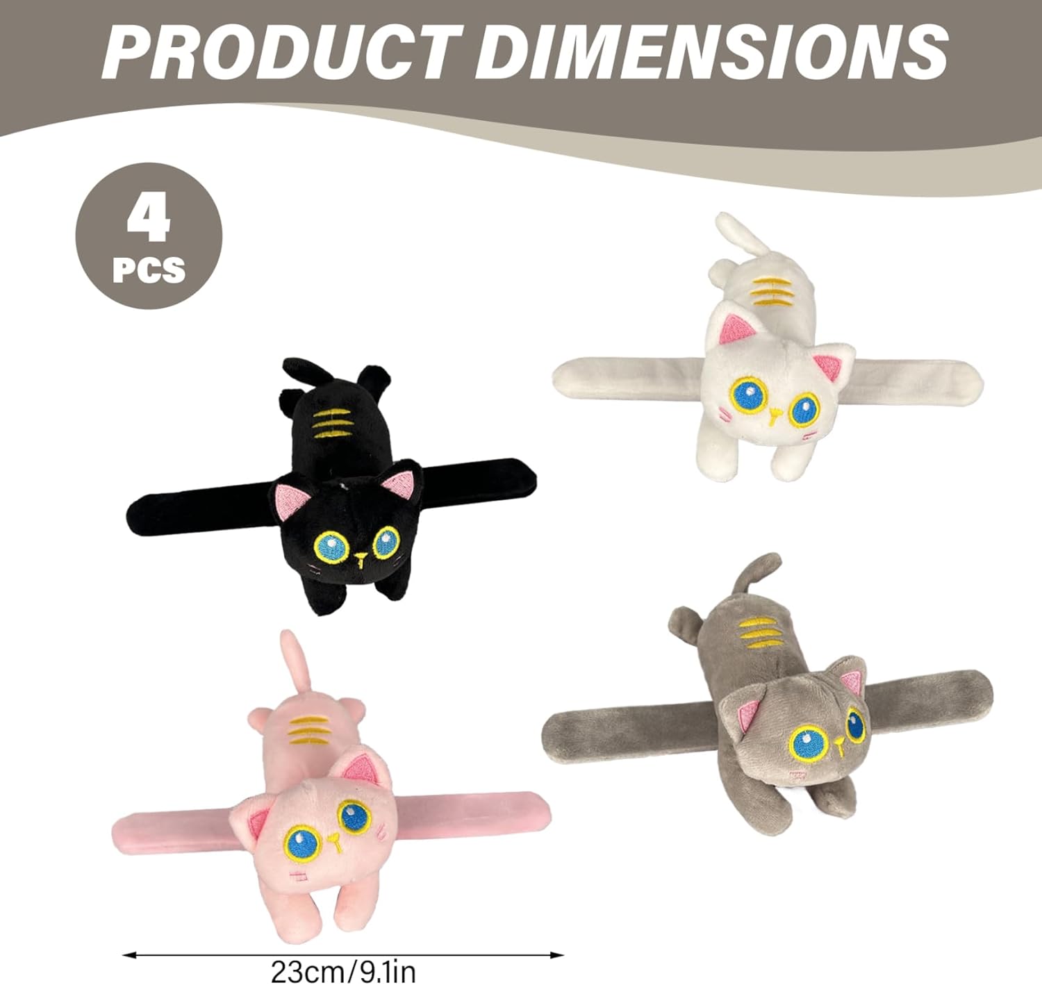 Intrattenimento tattile e giocoso: combinando una consistenza morbida e un design giocoso con animali, questi braccialetti giocattolo supportano il gioco fantasioso, l'esplorazione sensoriale e la condivisione sociale;.ideali come piccoli peluche, braccialetti originali o oggetti silenziosi che deliziano sia i bambini che i genitori. Adorabili amici di peluche: morbide coperture di peluche a forma di simpatici gatti trasformano una classica fascia da schiaffo in un braccialetto con animali che i bambini adorano;.la finitura morbida e le stampe brillanti rendono questi animali di peluche con bracciale Slap, portatili e perfetti per il gioco o l'esposizione di tutti i giorni. Bomboniere perfette: la confezione da 4 braccialetti a schiaffo con animali per bambini è un'aggiunta facile e memorabile alle bomboniere delle feste di compleanno, ai premi in classe e ai regali per le feste;.Leggeri e pronti per essere regalati, aumentano l'entusiasmo e semplificano la pulizia e la distribuzione delle feste. Facile da indossare, vestibilità comoda: con una lunghezza di circa 9,1, questi braccialetti a schiaffo adattano alla maggior parte dei polsi dei bambini: basta schiaffeggiarli per fissarli;.l'esterno in peluche previene le pizzicature e aggiunge un'atmosfera accogliente, incoraggiando i bambini a indossare, collezionare e scambiare questi giocattoli interattivi per bambini. Nucleo sicuro e stabile: costruiti con un nucleo flessibile in metallo a scatto avvolto in peluche per un'azione slap-on sicura, questi braccialetti Slap per bambini offrono pop soddisfacenti senza spigoli vivi;.il design bilancia resistenza e comfort per un'usura ripetuta e un divertimento duraturo.