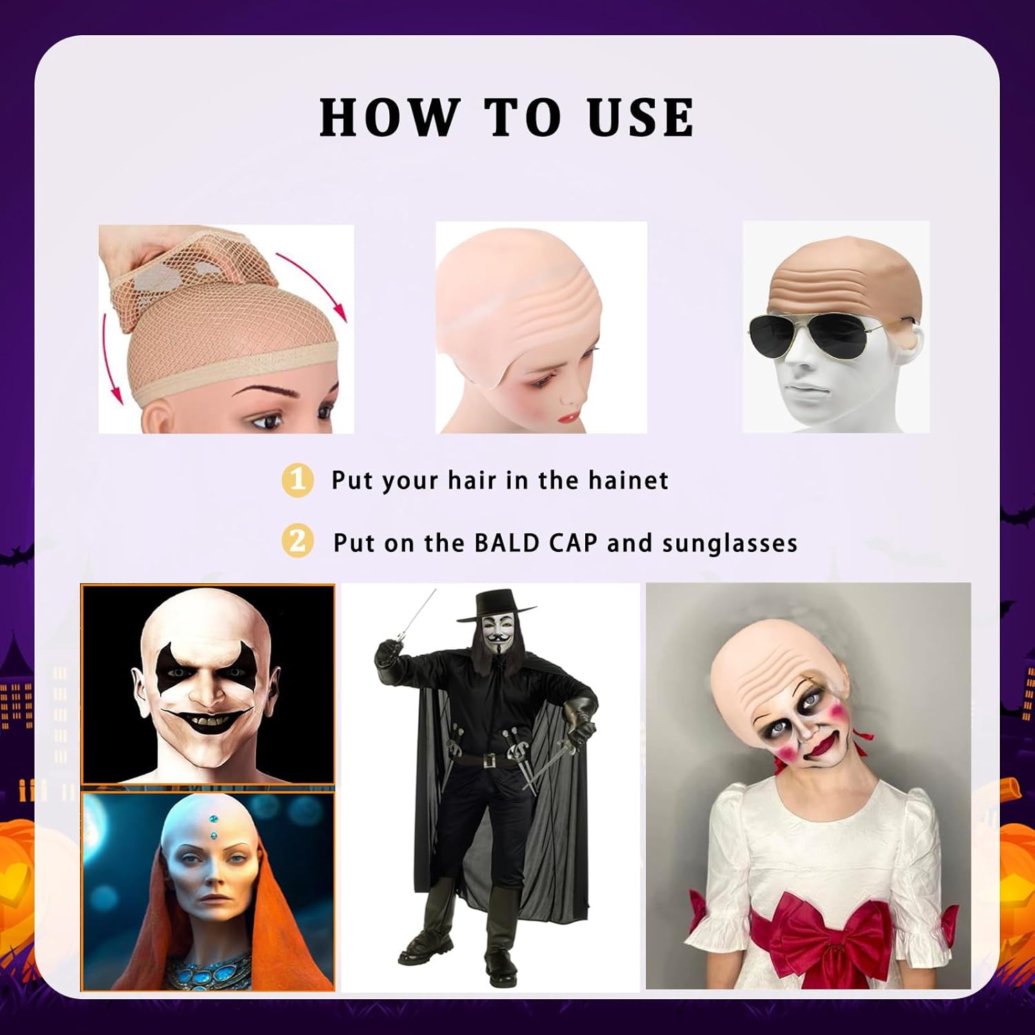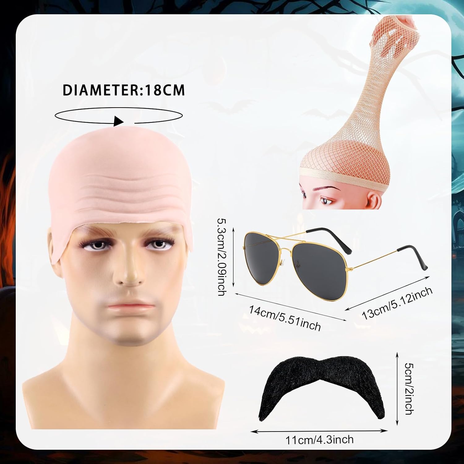 Contenuto del prodotto: Riceverai 1 berretto calvo in lattice, 1 berretto a rete per parrucca, 1 paio di baffi finti e 1 paio di occhiali da sole, set ideale, accessori per costumi divertenti e interessanti in grado di soddisfare gli adulti che si vestono, rendendo il tuo vestito più affascinante e attraente Durevole e in forma: Il cappello parrucca calvo è adatto per varie dimensioni di teste; Se il cappello copre le orecchie, è possibile tagliare aperto intorno ad esso, in modo che si adatta meglio, è possibile applicare il lattice per il bordo del cappello prima di indossarlo, e quindi utilizzare cosmetici per rendere lo stesso colore della vostra pelle Dimensione universale: Il tappo calvo parrucca è fatto di buon lattice elastico, che è elastico, che lo rende un vestito divertente che si adatta testa della maggior parte delle persone, e tappo elastico parrucca rete adotta un sizeincluding adulti. Non è destinato ai bambini di età inferiore a 14 anni Accessorio del costume di trucco: è possibile utilizzare il tappo testa calva per costumi di partito cosplay, il tappo di rete può aiutare a indossare il vostro berretto calvo più ordinatamente, sono anche buoni oggetti di scena per spettacoli teatrali, film, decorazioni generali e così via Ampio uso: questi berretti calvi e parrucche a rete sono adatti per Halloween, spettacoli teatrali, film, fotografia e oggetti decorativi in generale. è possibile vestire i panni di personaggi classici dei film o monaci suore, o fingere di radersi la testa per ingannare la famiglia e gli amici