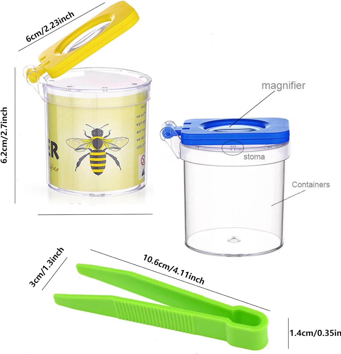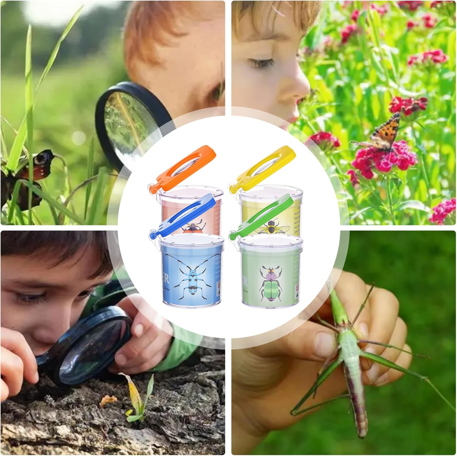 Strumenti educativi: questi contenitori per lenti d'ingrandimento per insetti sono perfetti per genitori e figli per osservare ed esplorare la insieme, e adatti anche per studiare e conoscere insetti e altri animali nelle aule scolastiche, contribuendo ad aumentare l'interesse dei bambini nell'apprendimento e coltivare l'amore e il rispetto per la. Design del foro d'aria: questo kit cattura insetti per bambini ha più fori di ventilazione sulla parte superiore, che possono fornire un buon luogo di ventilazione e fresca per gli insetti all'interno e osservare meglio le loro attività e comportamenti di vita. Materiale: il cattura insetti per bambini è realizzato in materiale plastico..Il corpo della scatola è robusto e strutturato..Il corpo della scatola trasparente consente di osservare più chiaramente insetti e piccoli animali..Il coperchio adotta un design antiscivolo ribaltabile per una facile apertura e chiusura. Ampiamente usato: gli insetti e gli insetti per bambini sono dotati di pinzette portatili, che possono essere utilizzate all'aperto per catturare insetti e osservare la ricerca, e possono anche essere utilizzate in aule o laboratori per consentire ai bambini di osservare insetti e animali da vicino..Consentire ai bambini di vivere una piacevole esperienza di osservazione senza contatto. Lista di imballaggio: La confezione contiene 4 pezzi di scatole per insetti ingrandite, 4 di giallo, verde, arancione e blu, colori vivaci, la combinazione multi-pack è sufficiente da condividere con gli amici per osservare gli insetti insieme, molto adatta per raccogliere vari insetti Osserva e studia.