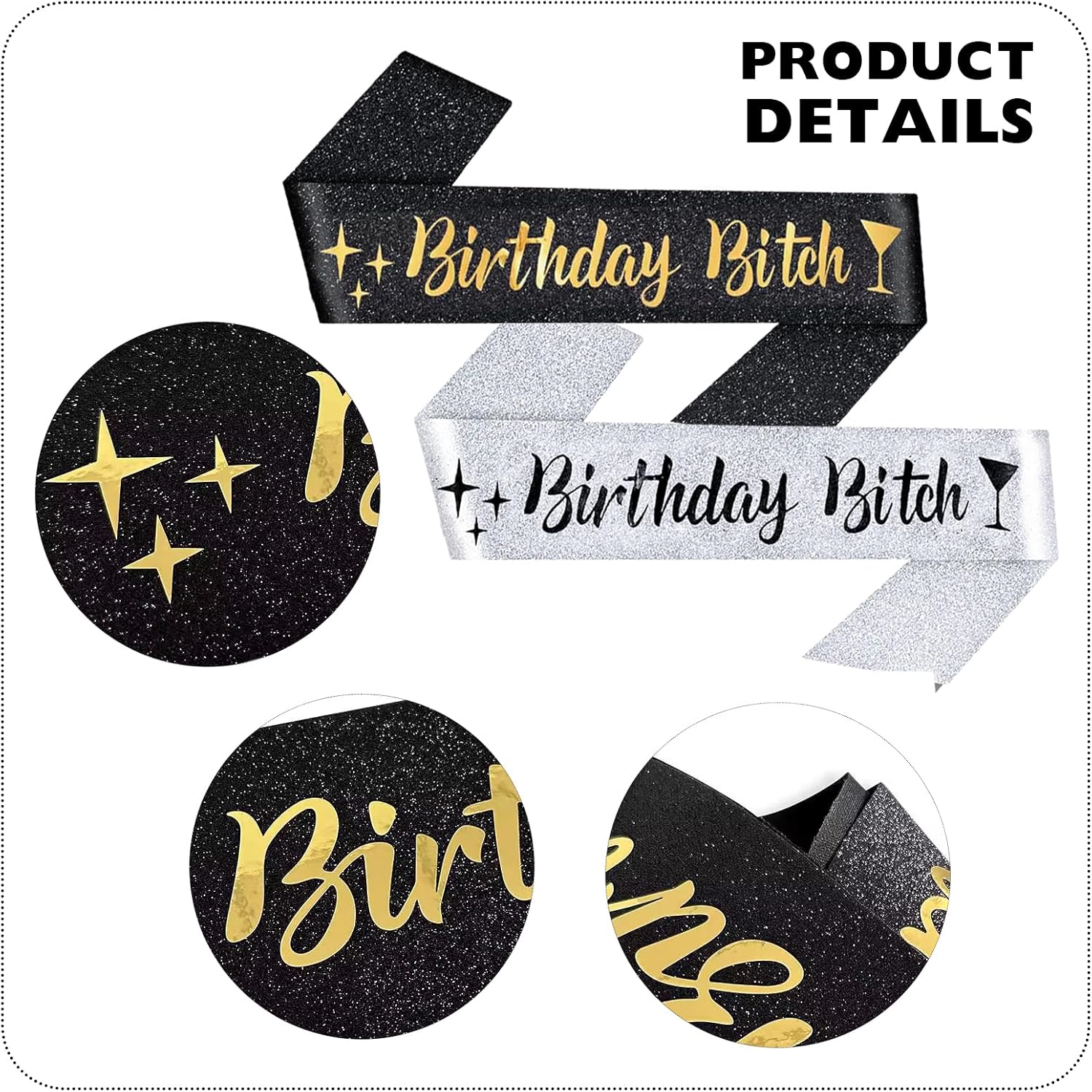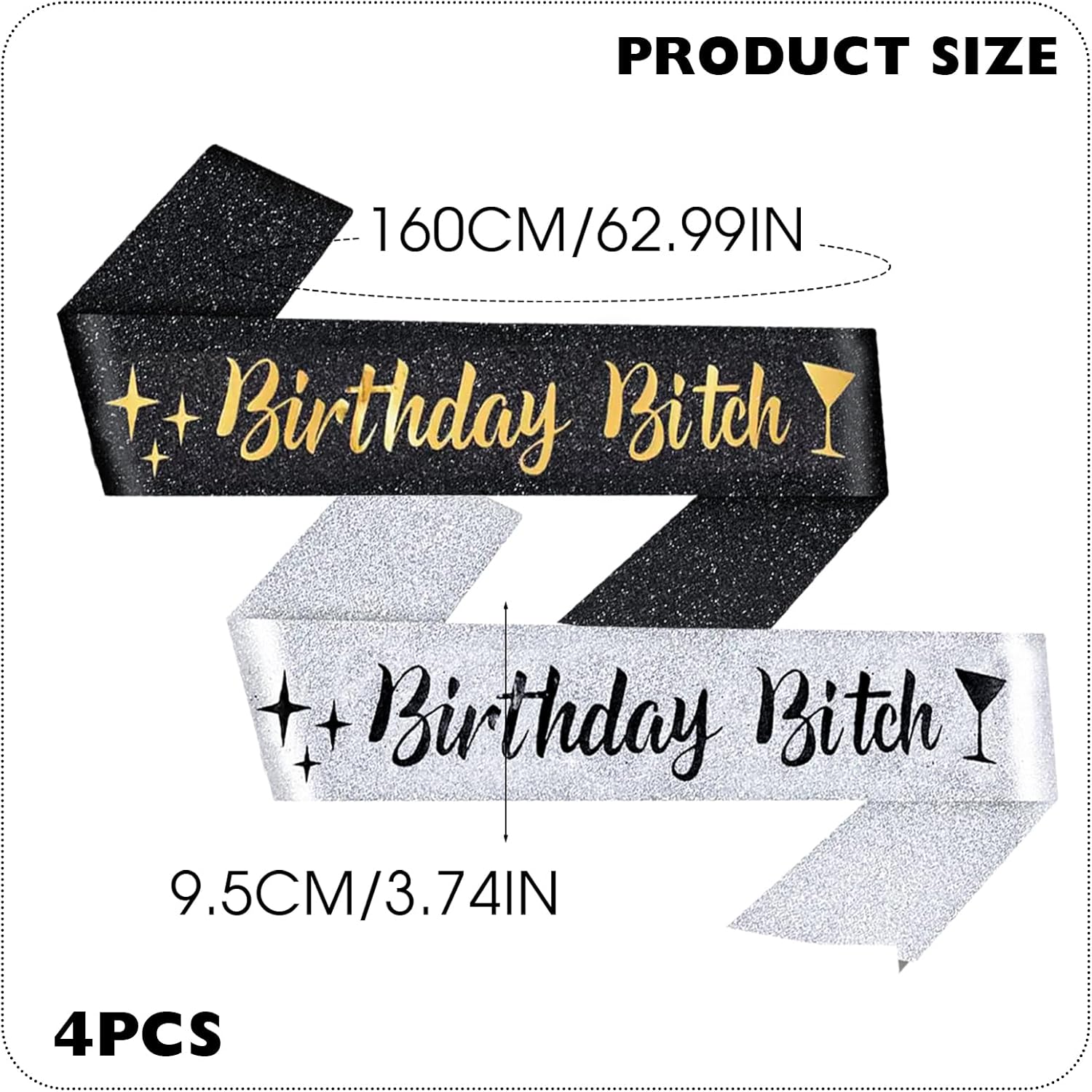 Contenuto della confezione: riceverai 4 fasce di compleanno, 2 pezzi neri e 2 pezzi grigi, quantità sufficiente che ti rende libero di scegliere quello che ti piace per la festa di compleanno. Fascia per cagna di compleanno: la nostra graziosa e lusinghiera fascia per compleanno completerà qualsiasi vestito di compleanno assicurandoti di sentirti così speciale per il tuo compleanno. ACQUISTA! Sarai al centro dell'attenzione nel tuo giorno speciale e lo avrai ricevuto elogi da familiari e amici. Accattivante: scintillante e glamour, questa fascia è perfetta per la festeggiata che vuole fare una dichiarazione. Ampia gamma di applicazioni: che tu stia festeggiando un dolce 16, 18 e legale, finalmente 21, sporco 30, RIP to My Youth, 40 e Flirty, 50 e favoloso compleanno a tema o più, questa fascia è perfetta per qualsiasi principessa di compleanno, indipendentemente dall'età. Regalo perfetto: distinguiti nel tuo giorno speciale con la fascia in raso Birthday Bitch, con colori nero e oro. È il regalo perfetto per la festeggiata o un'amica che merita di essere trattata come un re.