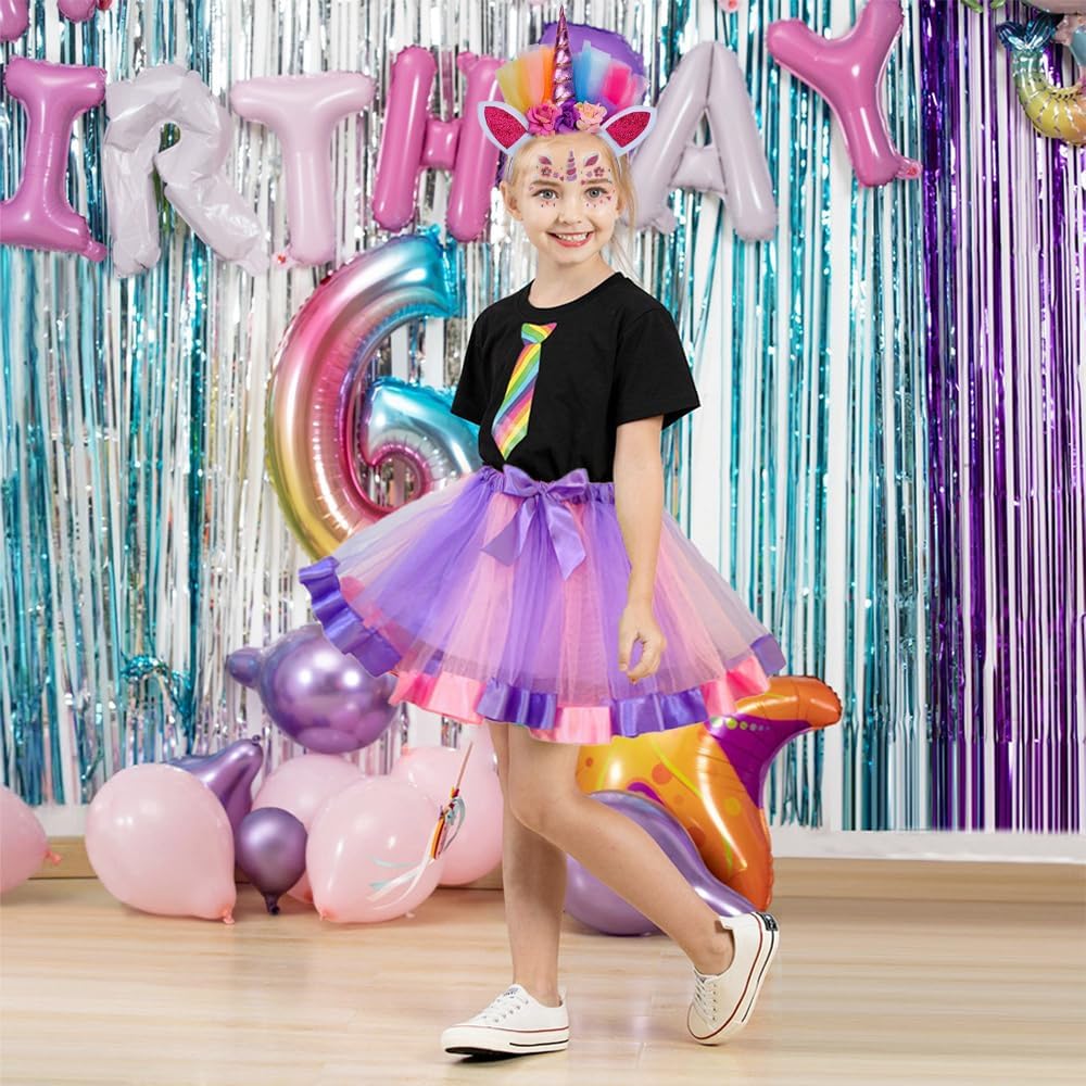 Descrizione prodotto 【Morbido e delicato sulla pelle】La gonna tutù unicorno per bambine è realizzata in poliestere 100% di alta qualità e resistente e tulle a rete. Comodo, soffice, bello e resistente. Il materiale morbido non farà prudere la tua principessa e si prenderà cura della pelle delicata della bambina angelo. Questo splendido e grazioso costume da principessa con gonna da ballo è adatto a molte occasioni: perfetto per abiti da fata, balletto, danza luminosa, feste al neon, feste a tema, festival musicali, giochi di ruolo quotidiani, feste di compleanno, feste in maschera, Halloween, Carnevale, Natale, ecc. Avviso di sicurezza NO
