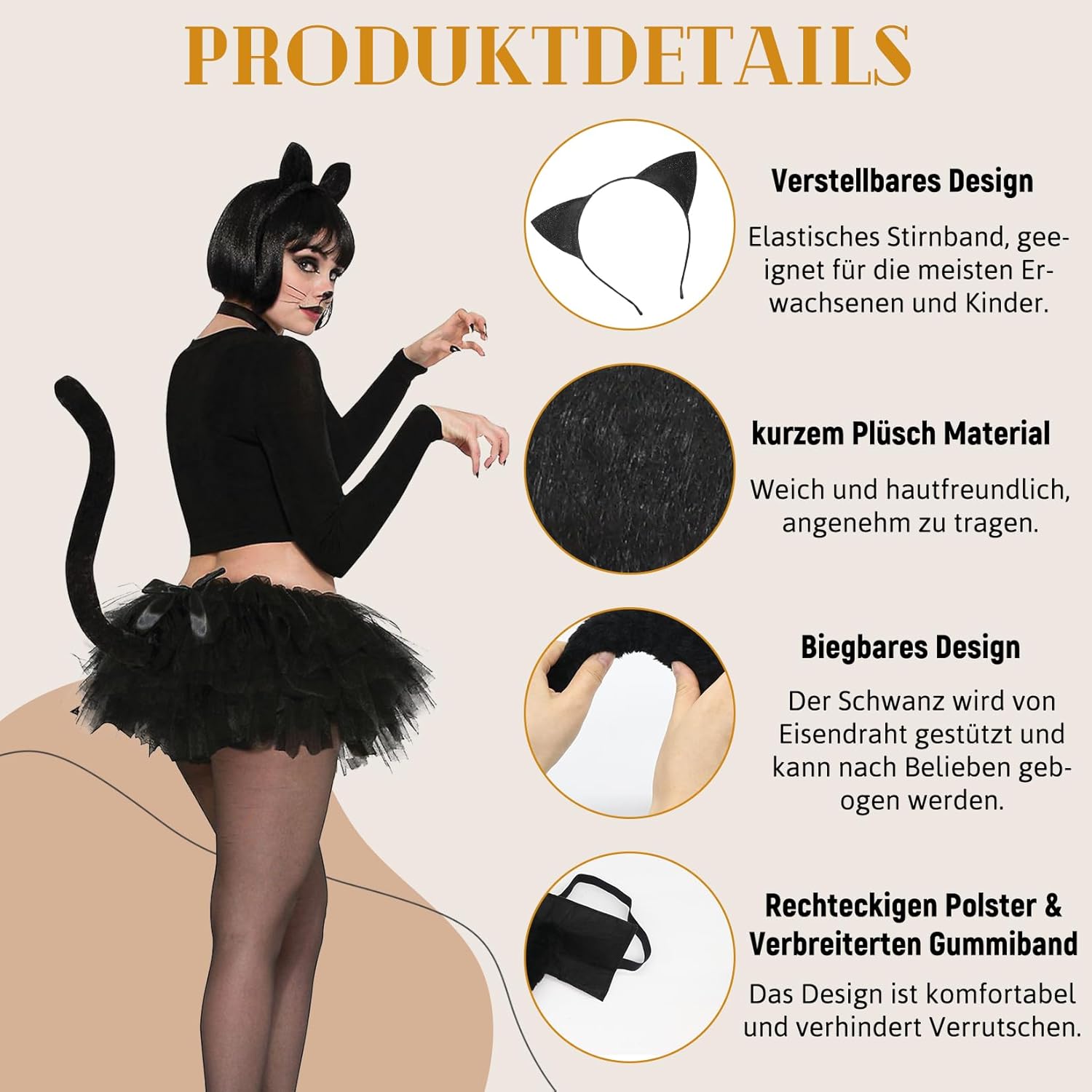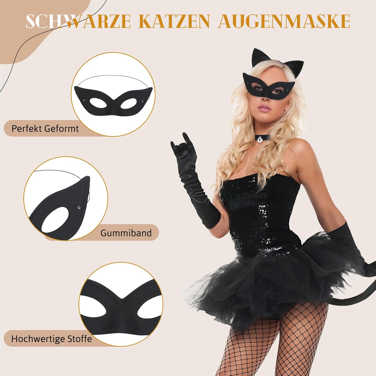Costume da gatto Forbabe da donna per Halloween o cosplay, feste a tema, per dare il tocco finale al tuo look e attirare l'attenzione delle persone durante gli eventi. Specifiche: Colore: nero Quantità: 4 pezzi. Dimensioni: Fascia con orecchie di gatto: 17 x 16 cm. Maschera per gatti: 20 x 9 cm. Collana: 40 cm. Coda di gatti: 60 cm. Gli accessori Catwoman da donna sono taglia unica per tutti, facili e comodi da indossare per adulti e bambini. Contenuto della confezione: 1 fascia per capelli con orecchie da gatto. 1 maschera per occhi di gatto. 1 coda di gatto. 1 collana. Consigli: 1. A causa della misurazione manuale, si prega di consentire un errore di 1-5 mm. 2. A causa di molti fattori, come ad esempio la luminosità del monitor, il colore reale dell'articolo potrebbe essere leggermente diverso da quello visualizzato sul sito web. Servizio clienti: Se avete domande sul nostro costume da donna da catwoman, non esitate a contattarci. Ti forniremo la soluzione più soddisfacente entro 24 ore.