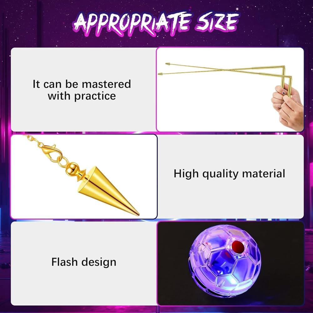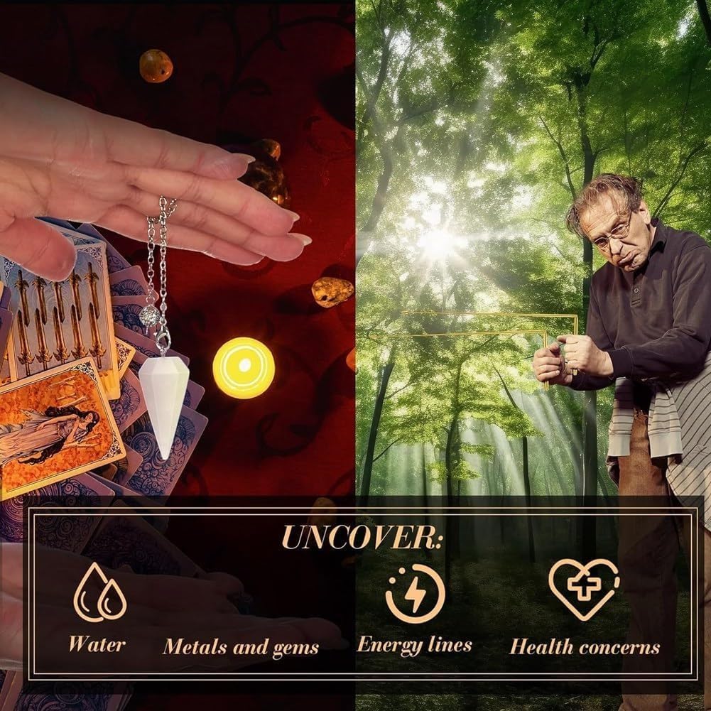Il pendolo da rabdomante è realizzato principalmente in lega di qualità, l' è realizzata in rame e la sfera di plastica è realizzata in PC, che può emettere un luminoso, è e resistente all'usura e l'impugnatura non si deforma facilmente e può essere utilizzata per lungo tempo La bacchetta fantasma ha la forma di una penna, circa 5,9 pollici prima 'allungamento e 21,7 pollici dopo l'allungamento, con un cappuccio di penna su di essa, comoda da trasportare; La lunghezza del pendolo è di circa 1,5 pollici, la lunghezza totale della catena della cintura è di 7,5 pollici e il diametro della sfera di plastica è di circa 1,3 pollici La bacchetta da rabdomante ha un'impugnatura delicata, che può essere tenuta comodamente e utilizzata per la divinazione a lungo, può muoversi agevolmente e oscillare liberamente per una divinazione corretta Le nostre bacchette da rabdomante possono essere cercate tenendo la maniglia e il pendolo può aiutarti a trovarle più facilmente, adatte a dilettanti, principianti ed esperti, ma non tutti possono ottenere i risultati desiderati bacchetta divinatoria, quindi richiede pratica e perseveranza riceverai 2 pezzi di bacchette di spegnimento, 1 pezzo di pendolo a sonda a forma di cono e 1 pezzo di sfera in plastica, in quantità sufficiente e perfettamente funzionante per soddisfare le tue esigenze, e adatto a principianti, dilettanti e professionisti