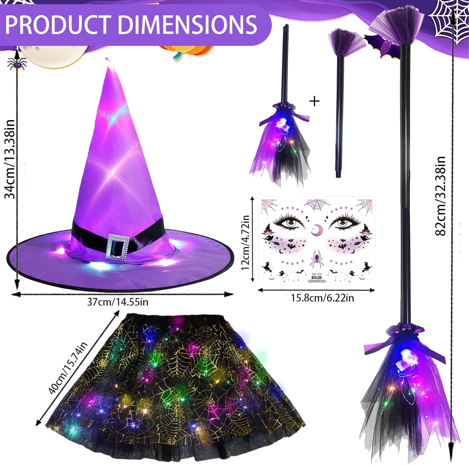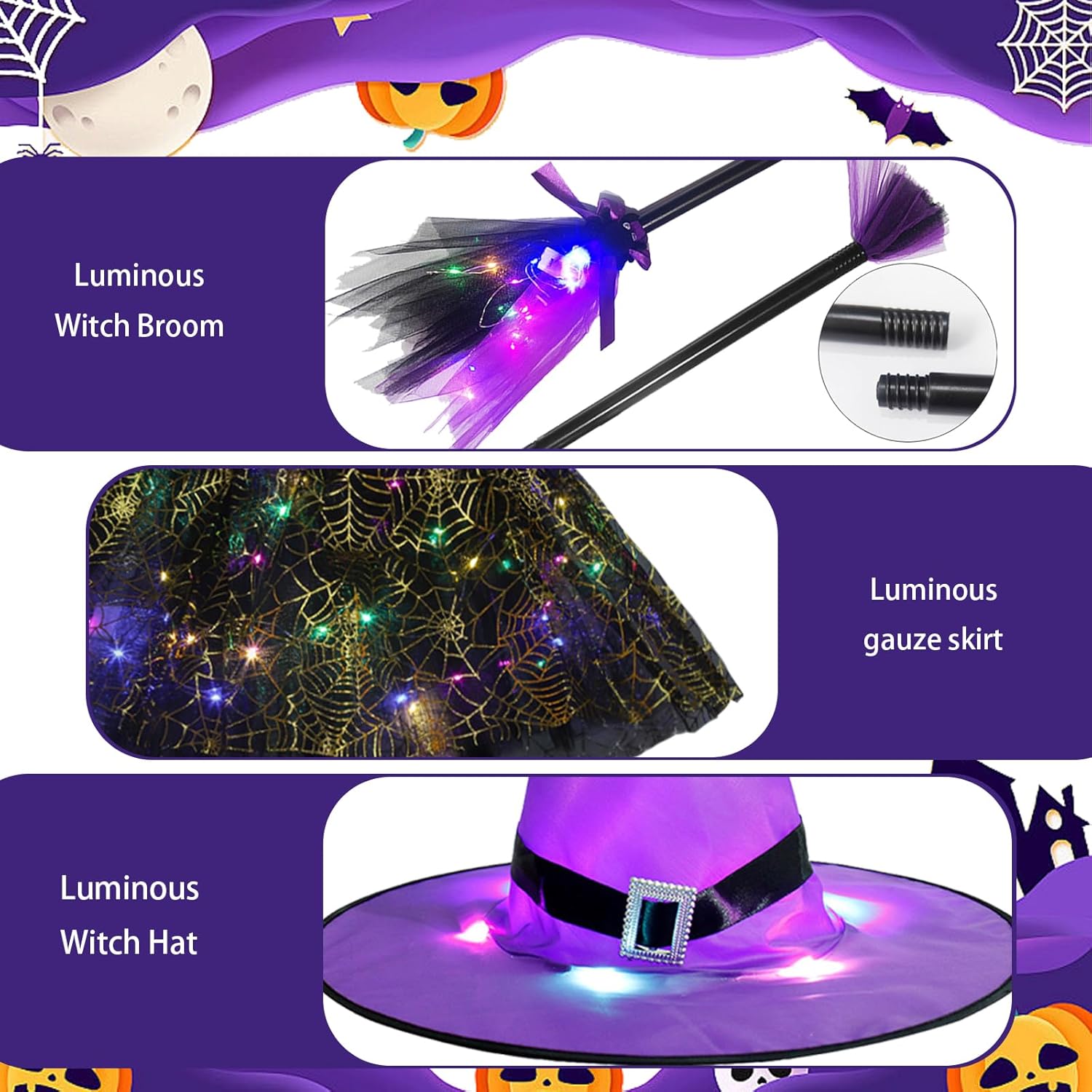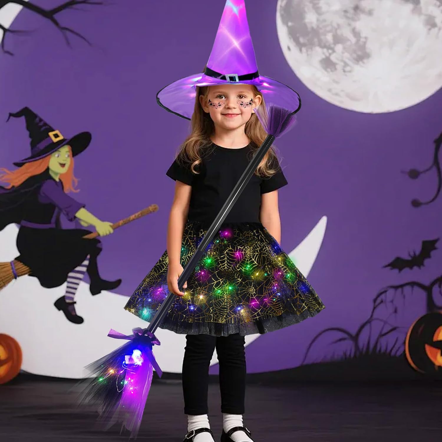4 pezzi di costume da strega per bambini, tutù, gonna in tulle, costume da strega per bambini, per bambine dai 3 ai 12 anni, per Halloween e feste di carnevale