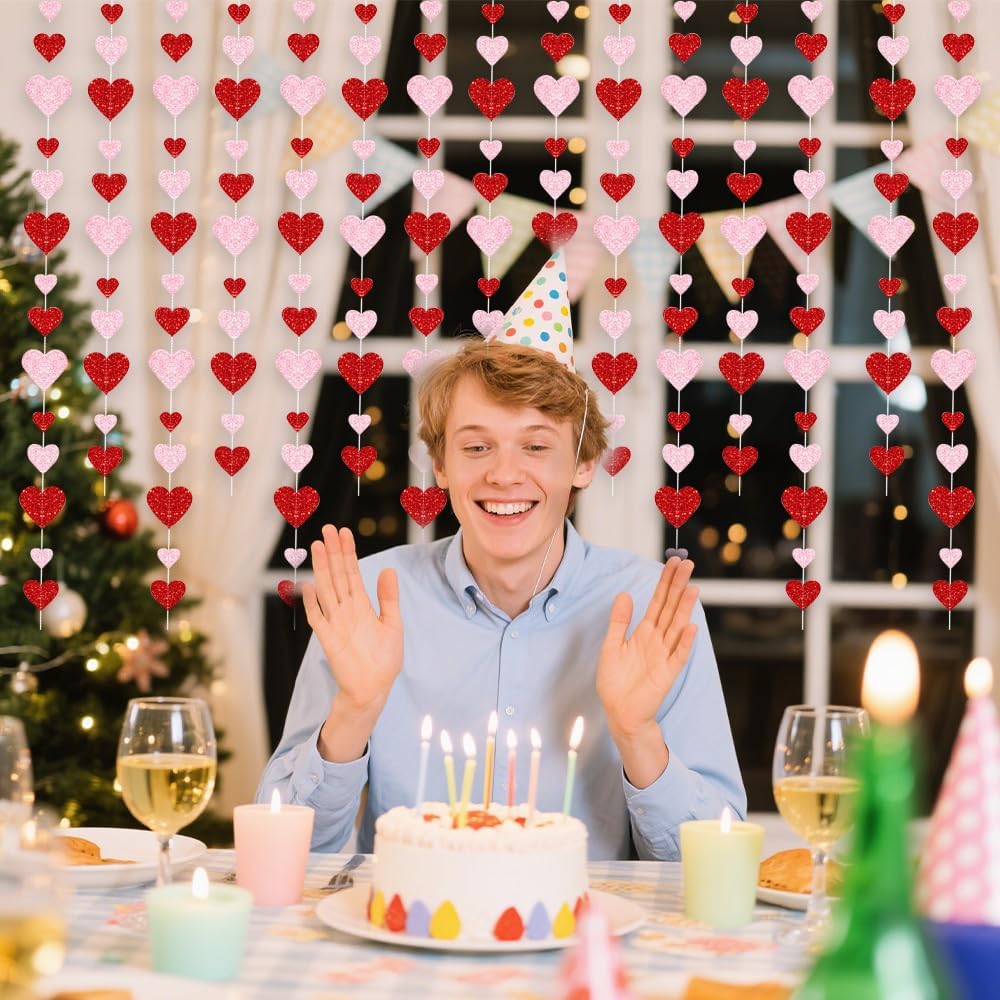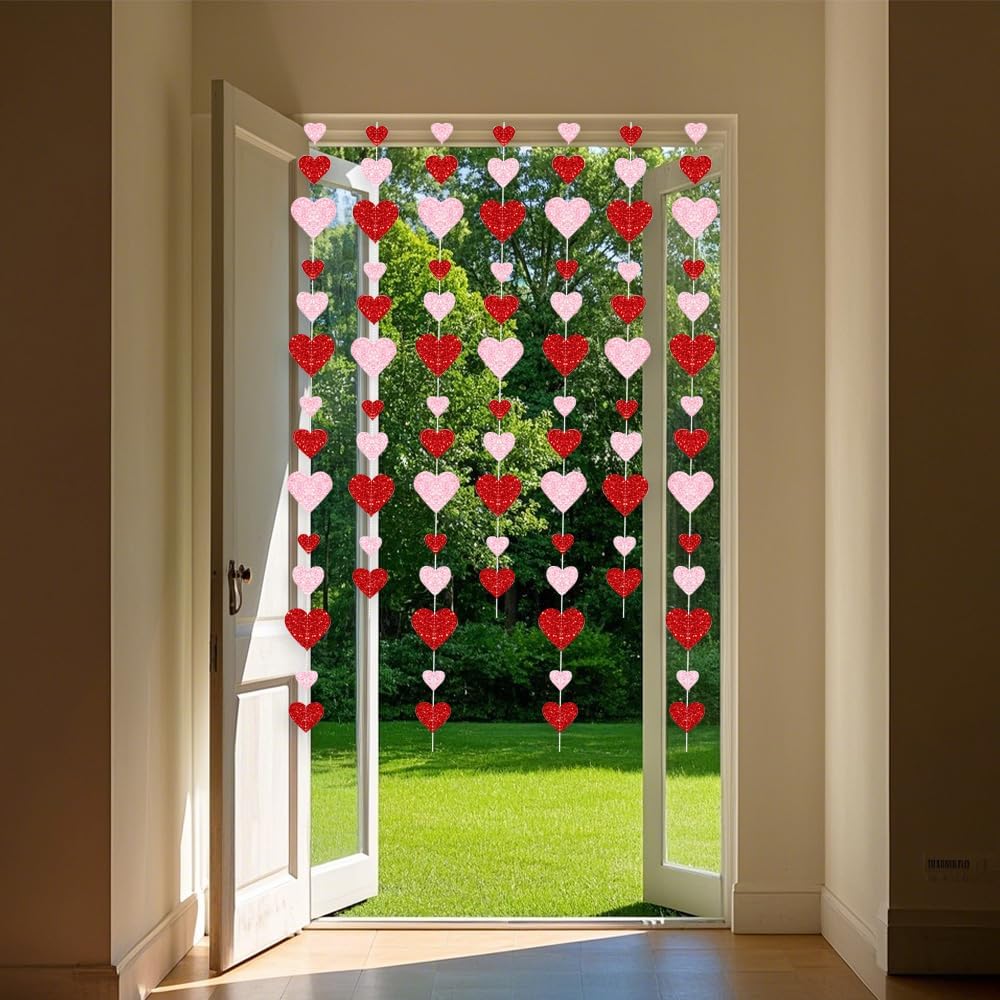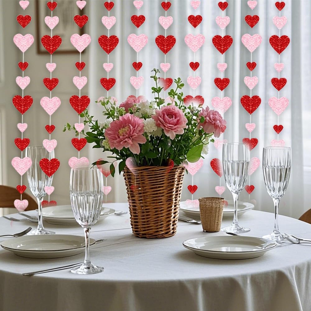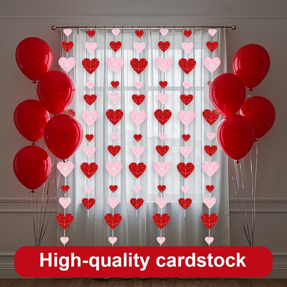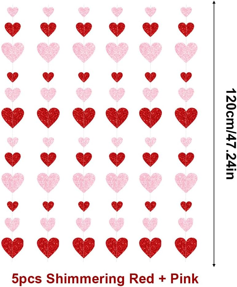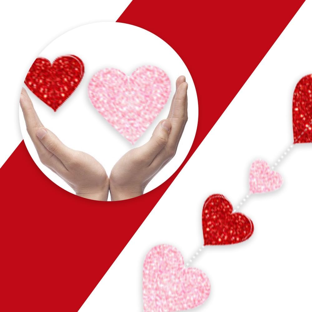 Queste decorazioni a ghirlanda sospese a cuore rosso e rosa hanno carta lampeggiante metallica su entrambi i lati e cartone di alta qualità, taglio pulito, resistente, durevole e riutilizzabile. Non si staccherà né si romperà facilmente. È decorato con paillettes lucenti ed è diverso dalla carta normale, dal materiale morbido, dalla decorazione del cuore dell'amore, è più resistente e sembra di alta qualità.