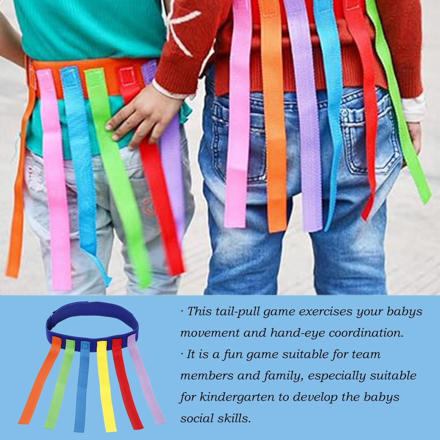 【Materiale Di Alta Qualità】Il gioco di trazione della coda non è solo divertente e realizzato in tessuto Oxford, ma aiuta anche ad esercitare la coordinazione motoria e occhio-mano del tuo bambino. I colori vivaci del gioco attirano l'attenzione del tuo bambino e promuovono il suo sviluppo visivo. 【Facile Da Installare】Il retro del nastro del gioco di inseguimento è composto da migliaia di bastoncini e tiranti, con una viscosità vicina a quella umana. Puoi attaccarlo come preferisci, rendendo l'installazione un gioco da ragazzi. Richiede uno sforzo e un tempo minimi, consentendo ai bambini di indossarlo senza sforzo. 【Esercizio Fisico】La partecipazione ai giochi di tiro della coda dei bambini comporta la corsa, la schivata e altre attività fisiche, che possono migliorare efficacemente l'agilità, la coordinazione e la resistenza. Questo è un ottimo modo per migliorare la tua forma fisica divertendoti. 【Competitivo E Stimolante】Il gioco del tiro della coda è un gioco emozionante in cui i partecipanti inseguono un bersaglio e cercano di prendersi la coda a vicenda. La sua natura competitiva e le sue sfide ispirano l'entusiasmo e la competitività dei partecipanti, aumentando il divertimento e l'eccitazione generale del gioco. 【Ampia Applicazione】Il nastro da gioco per tirare la coda non è solo a scopo di intrattenimento. Forniscono una piattaforma affinché i partecipanti possano godersi insieme momenti di divertimento e intrattenimento. Inoltre, la partecipazione ai giochi consente alle persone di fare nuove amicizie ed espandere la propria cerchia sociale.