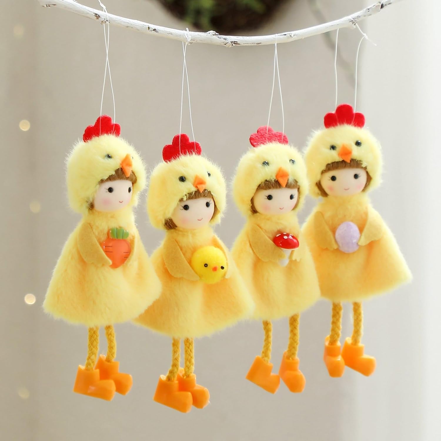 Ampiamente usato per varie occasioni di festival, tra cui soggiorno, camera da letto, cucina, decorazione della casa, configurazioni in aula, decorazione per feste e vetrine di negozi, queste decorazioni da appendere a pollo in peluche adatte a qualsiasi ambiente Migliora la decorazione del tuo festival con questi peluche a forma di pollo, caratterizzato da un bel aspetto di pollo e impreziosito con funghi, carote, uova o piccoli polli Molto adatti per familiari, insegnanti e proprietari di negozi, questi peluche a forma di pollo sono ideali per chiunque cerchi di aggiungere un tocco di fascino primaverile o del Ringraziamento al proprio ambiente Realizzate in stoffa, queste decorazioni da appendere a forma di pollo in peluche vantano un colore giallo vivido, dimensioni 8 x 4 x 15 cm, facili da esporre Utilizza questi ciondoli a forma di pollo come oggetti di scena fotografici unici, artigianato artistico creativo, un'aggiunta essenziale alla tua collezione di vacanze
