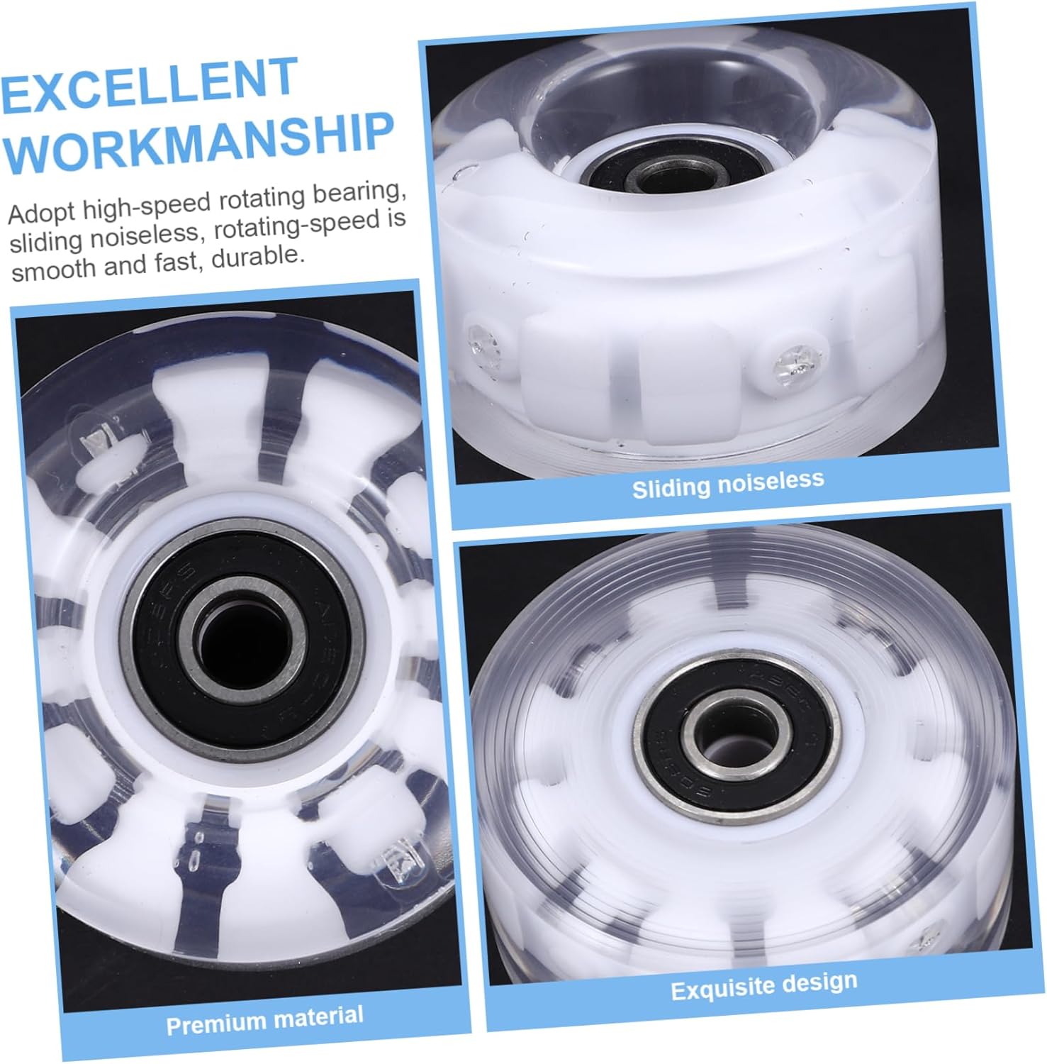 Accessorio per ruote per pattini: decora il tuo pattino a rotelle o skateboard con queste bellissime ruote lampeggianti e attira l'attenzione di tutti. Ruote illuminate per pattini a rotelle: funzionano bene sia su strade pianeggianti che su rampe. adatto a principianti e professionisti. Ruota luminosa per pattinaggio: aiuta a migliorare il comfort del tuo pattinaggio. è anche un per i tuoi amici. Ruota per pattini da ghiaccio: con un design luminoso, i tuoi pattini attireranno l'attenzione per strada di notte. Ruote da esterno per pattini a rotelle: decora il tuo pattino a rotelle o skateboard con queste meravigliose e semplici ruote. facile da installare, altamente resistente all'usura e non facile da rompere.