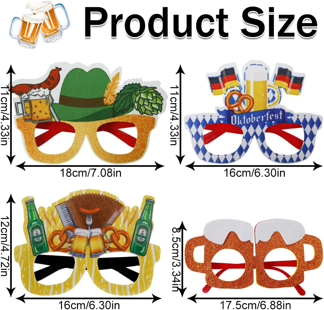 Contenuto della confezione: questo set di oggetti di scena per feste include 4 accessori alla moda e interessanti, come bicchieri tipo cappello + bicchieri tipo birra a bandiera + bicchieri tipo birra in polvere d'oro + bicchieri tipo boccale da birra in bottiglia di birra, con quantità sufficiente e stili diversi per soddisfare le tue diverse esigenze. Materiali affidabili: questi ricchi e adorabili oggetti di scena in vetro sono realizzati principalmente con materiali di carta e plastica, con pregevole fattura, aspetto squisito, motivi chiari e vivaci e gli oggetti di scena per foto di Natale non si rompono facilmente, quindi puoi riporli quando non li usi e non occupano troppo spazio. Facile montaggio fai da te: questi oggetti di scena per la fotografia di feste non sono appiccicosi, puoi scegliere gli oggetti di scena che desideri utilizzare e attaccarli con un po' di colla; puoi realizzare da solo questi semplici e interessanti lavoretti di carta, infondere le tue idee e i tuoi design, creare il tuo stile preferito e aggiungere vitalità e colore alla tua festa. Aggiungi divertimento alla festa: abbiamo preparato 4 set di bicchieri da festa, assicurandoci che ogni accessorio sia carino e alla moda, aggiungendo un tocco di colore alla tua festa di compleanno, pi'j'j e mostrando chiaramente il suo ruolo quando scatti le foto. Ampia gamma di usi: questi divertenti accessori fotografici per feste sono decorazioni ideali per matrimoni, Capodanno, Natale, feste di pensionamento, cocktail party, cerimonie di laurea, Oktoberfest di Monaco e feste di compleanno per uomini e donne. Ogni volta che c'è la possibilità di scattare foto, i nostri accessori fotografici per feste possono creare un'atmosfera gioiosa.