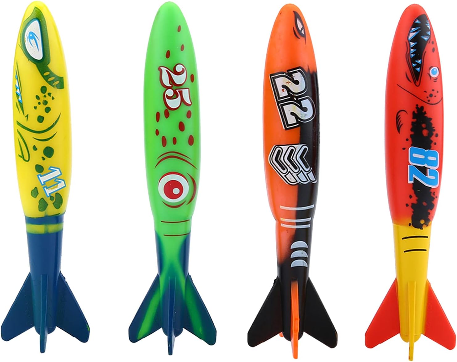 Realizzato in materiale di qualità, sicuro e durevole Ottimo per i bambini a praticare le immersioni e le capacità di nuoto subacqueo Pacchetto di 4 giocattoli da nuoto dai colori vivaci Raccomandato per i bambini anziani di 3 anni con supervisione degli adulti Adatto per l'allenamento di nuoto