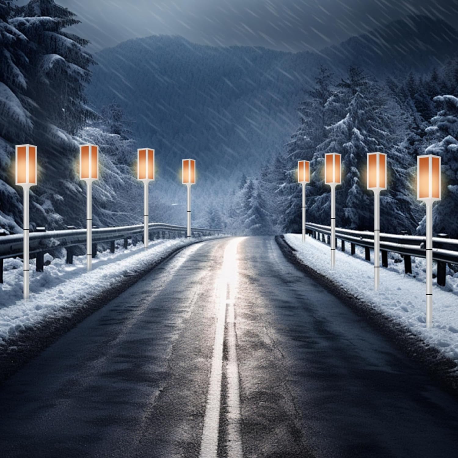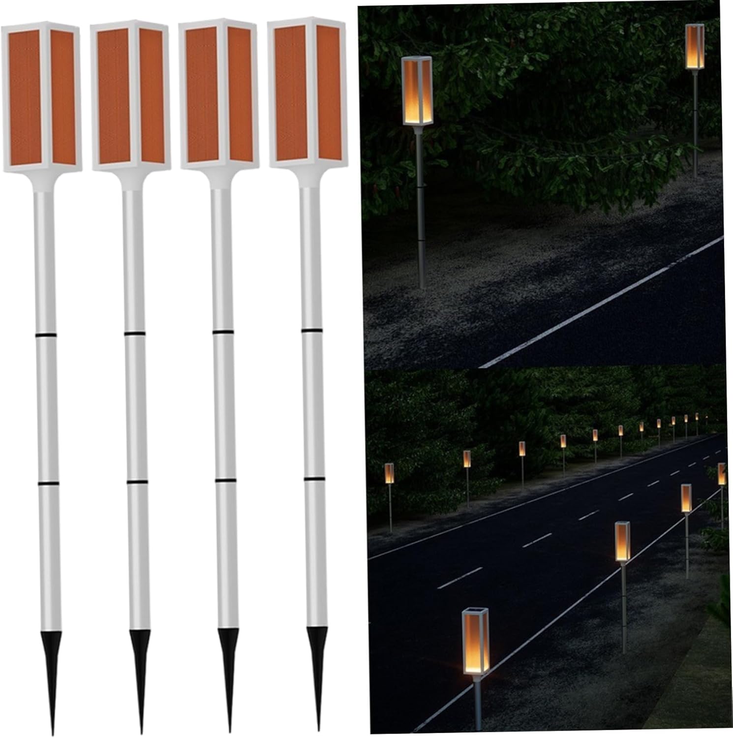 Visibilità notturna migliorata: questi segnalatori solari per vialetti da 4 pezzi forniscono una luce brillante e affidabile per percorsi, parcheggi, giardini e nevai..Alti 30 pollici, sono dotati di modalità stroboscopica e fissa per una migliore visibilità e sicurezza in condizioni di oscurità o nebbia. Controllo automatico della luce: progettati con sensori di luce intelligenti, i marcatori caricano automaticamente durante il giorno e illuminano al crepuscolo senza intervento manuale..L'interruttore one-touch consente la selezione semplice della modalità: accensione fissa, lampeggiante o spegnimento quando non in uso. Ricarica solare intelligente: dotati di pannelli solari in silicio policristallino ad alta efficienza, questi marcatori convertono la luce solare in energia anche nelle giornate nuvolose..La batteria integrata ad alta capacità garantisce un'illuminazione notturna continua dopo la ricarica diurna. Resistenti alle intemperie e robusti: costruiti con un alloggiamento in plastica resistente all'acqua e ad alta resistenza, questi marcatori resistono a pioggia, neve e temperature estreme..Sono ideali per l'uso all'aperto tutto l'anno in vialetti, parcheggi e vialetti del giardino. Facile installazione a terra: ogni segnalatore include un semplice picchetto per un'installazione stabile nel terreno o nella neve..Basta inserirli nel terreno, senza bisogno di cavi o attrezzi, rendendoli pratici sia per applicazioni residenziali che commerciali.