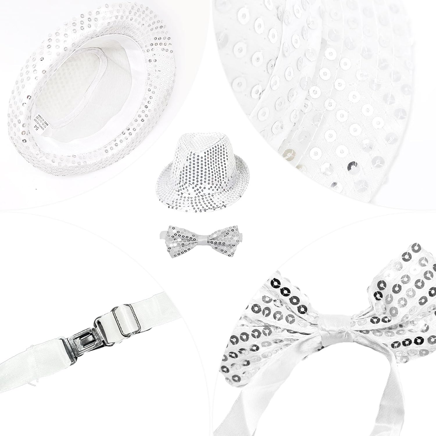 Descrizione prodotto Specifiche: Colore: argento. Materiale: raso, paillettes. Circonferenza della testa: circa 58 cm. Contenuto della confezione: Cappello con paillettes da 1 pezzo Papillon paillettes 1 pezzo Bretelle di paillettes da 1 pezzo 1 paio di guanti con paillettes. Set di costumi da danza jazz: 1. Questo set di accessori per costumi da ballo jazz è perfetto sia per ragazzi che per ragazze adolescenti. 2. Ottima decorazione per essere un bell'accessorio fotografico, può anche essere abbinato a qualsiasi altra occasione e molto altro ancora. 3. Con il costume da discoteca con paillettes, il tuo spettacolo di danza jazz sarà più accattivante. Avviso di sicurezza No