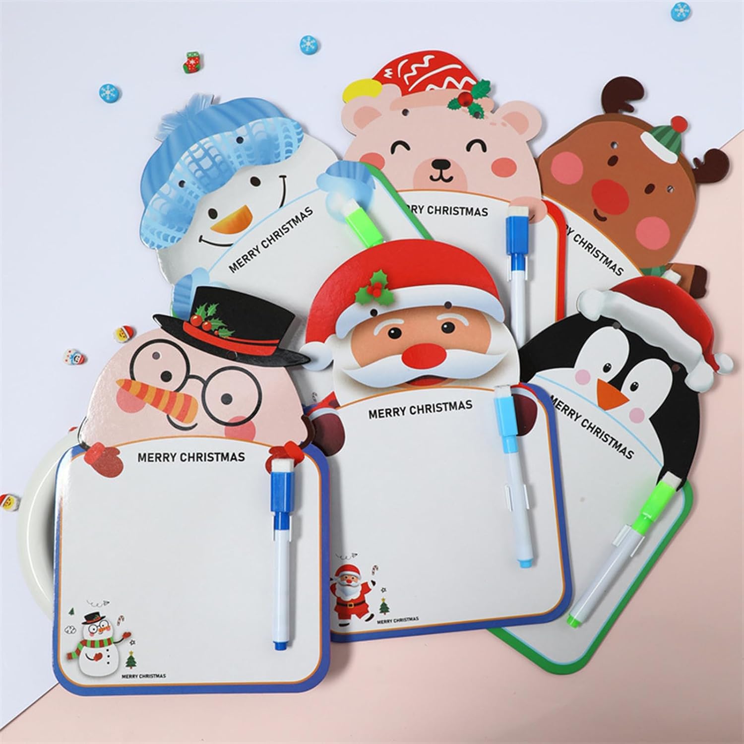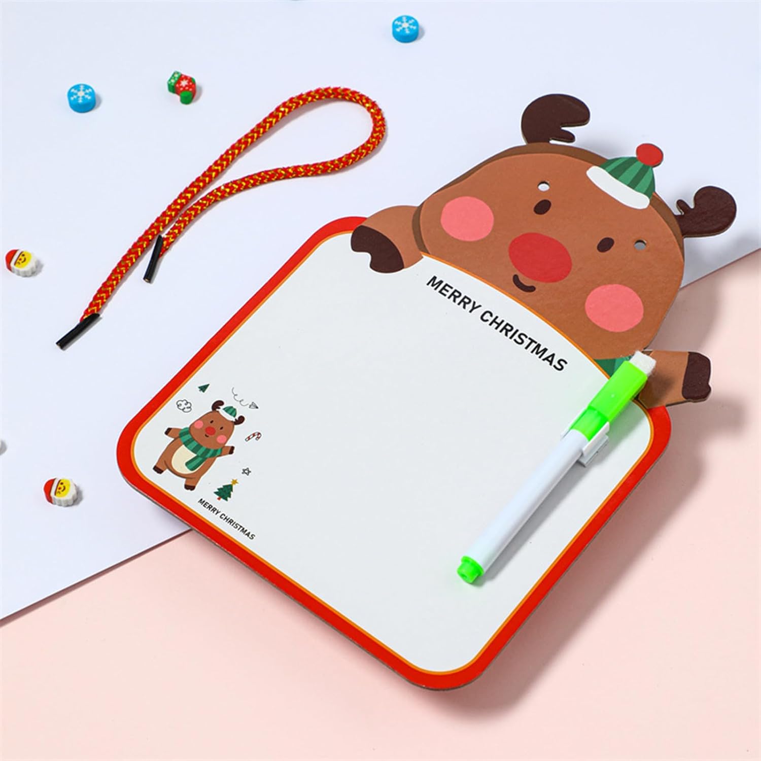 Progettato a tema natalizio, ideale per decorazioni natalizie, articoli per feste, oggetti di scena per giochi di classe, strumenti per insegnanti, ecc. Anche un divertente giocattolo interattivo per il legame con i genitori o un regalo premuroso. Confezione da 4 lavagne bifacciali. Il tavolo da disegno Redentore a doppia faccia è un must per i bambini! Perfetto per tavoli da disegno per bambini/neonati, lavagne per scrivere, lavagne per scarabocchi, giocattoli educativi, ecc. Questa lavagna cancellabile è progettata per bambini di 3 anni, aiutandoli a migliorare le loro capacità di scrittura e disegno mentre coltiva i loro talenti artistici. Questa lavagna cancellabile è ottima anche come lavagna per appunti sospesa, lista della spesa in cucina, lista della spesa in frigorifero, ecc. Realizzata con materiali di alta qualità, leggera e portatile. Ogni tavolo da disegno misura 25x17 cm/9,84x6,69 pollici, rendendolo adatto sia per uso interno che esterno