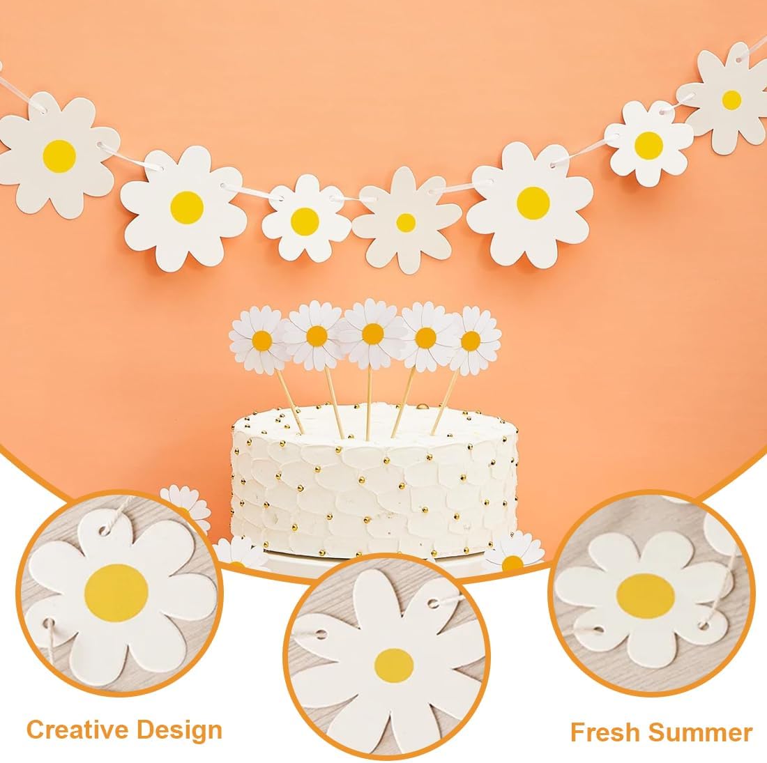 Decorazione incantevole: Questa ghirlanda di margherite decorative in 3 pezzi aggiunge un tocco di fascino boho a qualsiasi evento, creando un'atmosfera festosa perfetta per decorazioni primaverili ed estive Design creativo: Le ghirlande di fiori di carta sono ideali per compleanni, feste in giardino o occasioni speciali, offrendo dettagli delicati che creano un ambiente accogliente e armonioso Freschezza estiva: I motivi floreali vivaci delle ghirlande sono perfetti per feste per bambini, eventi all'aperto in primavera o estate, portando un'atmosfera allegra e spensierata Materiali di qualità: Realizzate in carta resistente, queste ghirlande offrono una decorazione duratura e autentica, ideale per pareti, soffitti o tavoli, garantendo un effetto visivo sorprendente Versatilità d'uso: Perfette per compleanni di bambini, matrimoni in stile boho o come margherite finte per decorazioni di feste in giardino, queste ghirlande aggiungono un tocco creativo a ogni momento speciale
