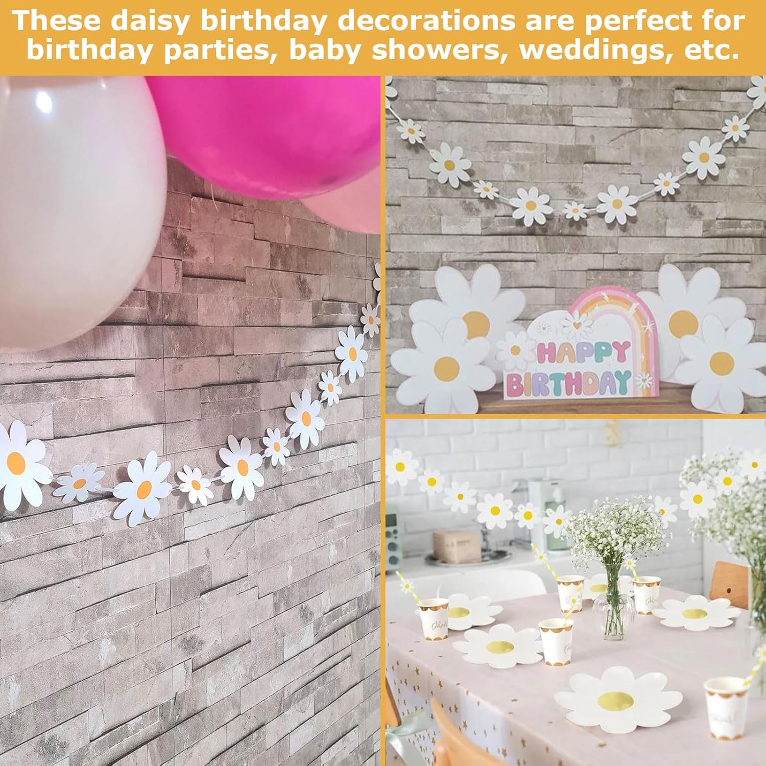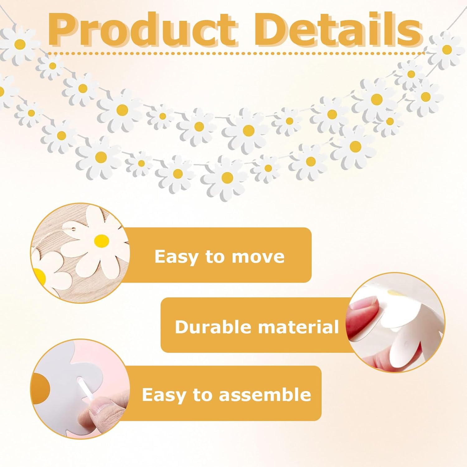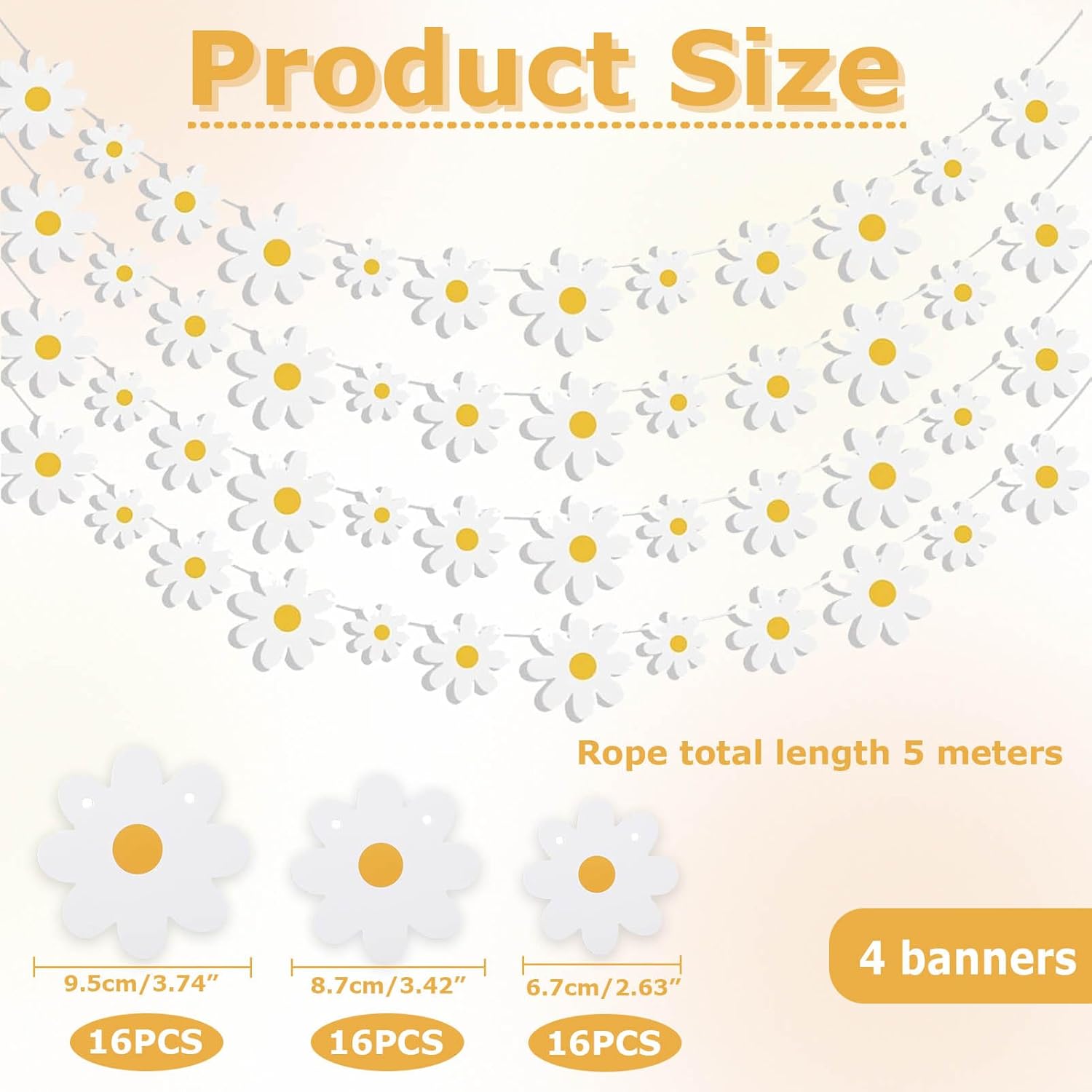 Elenco dei set: il set contiene 4 striscioni decorativi a forma di margherita, ciascuno con 12 ritagli di carta margherite di diverse dimensioni e una corda di circa 5 metri. Decora e crea un'atmosfera creativa per contribuire all'atmosfera allegra della festa e fornire la posizione perfetta per scattare foto. ✿ QUALITÀ✿ : il nostro striscione a 4 strisce margherite è realizzato in carta + corda. Le margherite stampate su entrambi i lati sono molto resistenti e possono essere riutilizzate in diverse occasioni, e la corda è forte e non si strappa facilmente. ✿ Creazione fai da te ✿ : le 4 festone a forma di margherita devono essere realizzate da soli. Dopo la fabbricazione, può essere facilmente spostato, appeso e smantellato. I motivi semplici non passano mai di moda. E può essere riutilizzato molte volte in diverse occasioni. Stile fresco ✿: il set di striscioni decorativi con margherite bianche conferisce alle decorazioni per feste un tocco rustico e naturale e offrono un perfetto motivo fotografico con i vostri ospiti e amici. Appendilo a casa nella vita di tutti i giorni e ti sentirai bello e confortevole. Ampia gamma di applicazioni: lo striscione a margherite è adatto per attività al chiuso e all'aperto e può essere appeso a pareti, finestre, in giardino e sulle porte di casa. Che si tratti di un tema floreale primaverile o altre celebrazioni come decorazioni di compleanno, anniversari, San Valentino, macchine fotografiche, lauree, attività all'aperto, varie feste, decorazioni da parete, ecc. È una decorazione molto adatta per lo sfondo.
