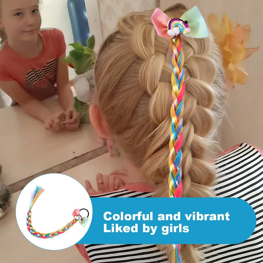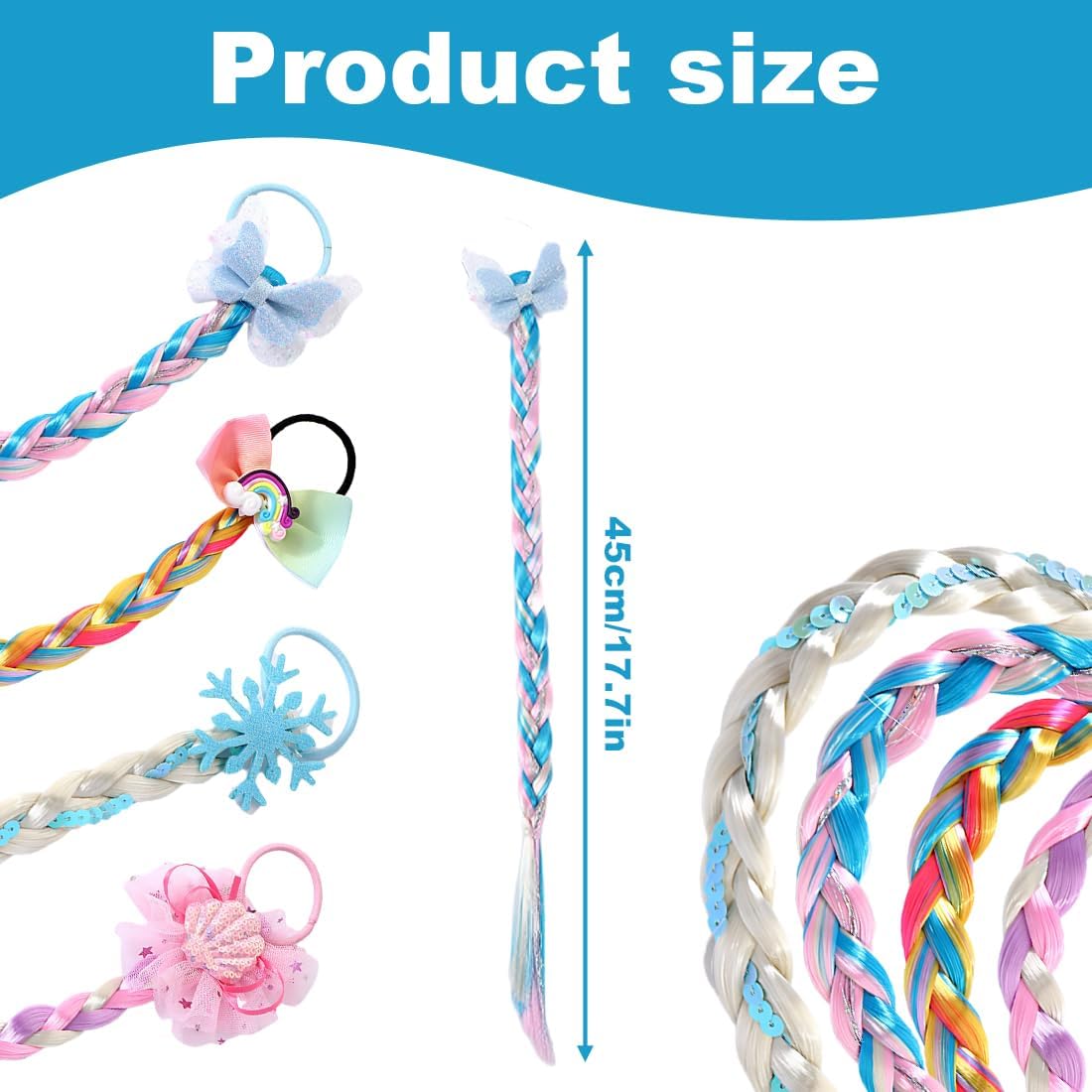 Decorazione colorata per capelli: ricevi 4 trecce arcobaleno con elastici, accessorio per capelli artificiali dal colore unico, perfetto per ragazze di tutti i colori di capelli, per distinguersi e ottenere un look fresco. Alta qualità: queste trecce colorate a coda di cavallo sono realizzate a mano in microfibra di alta qualità con colori vivaci e consistenza setosa, per resistenza e aspetto naturale. Versatile: questa treccia colorata con elastico è adatta a tutti i colori di capelli e a tutte le età, comprese donne, adolescenti, ragazze e bambini. Perfetto per feste di compleanno, Crazy Hair Day, cosplay o feste in costume. Contenuto della confezione: La confezione contiene 4 extension per capelli colorate in diversi colori per bambini. Ogni pezzo è lungo circa 40 cm, ideale per vari abiti e acconciature. Regalo eccezionale: questa parrucca intrecciata colorata è un regalo unico e premuroso per amici, bambini e persone care, portando gioia e individualità e riempiendoli di piacere