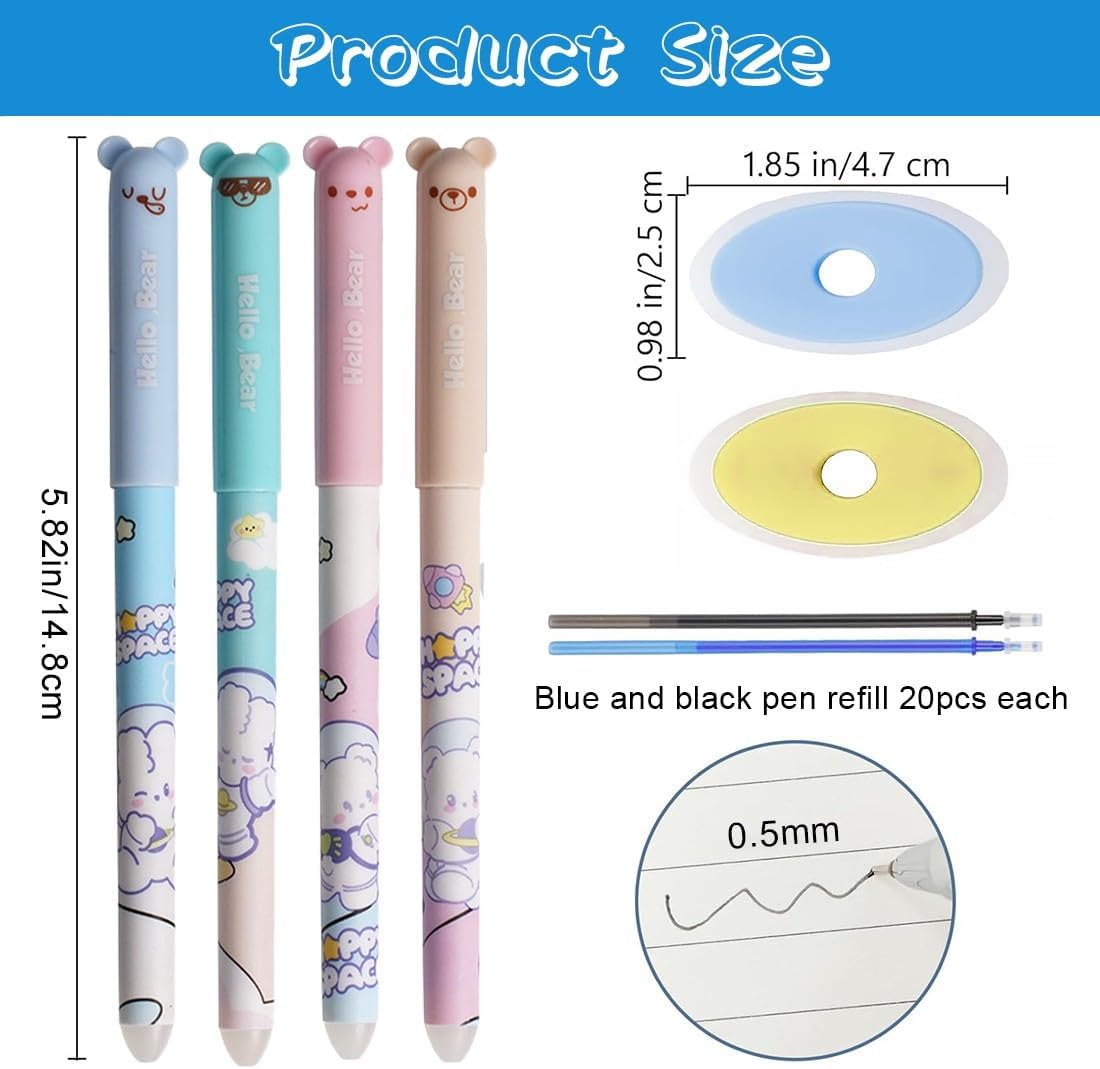 SET DI PENNE CANCELLABILI: Riceverai 4 penne gel cancellabili kawaii, che contengono panda, maiale, orso e gatto, più 40 ricariche di ricambio (20 blu + 20 nere). Diverse forme di cartoni animati e diversi colori per la tua scelta. DESIGN UNICO: i nostri penna cancellabile sono stati accuratamente progettati,essere sia carini che durevoli,Ti dà una sensazione di scrittura fluida e linee chiare. Pallina sul pennino non si consumerà come una normale gomma, non danneggerà la superficie interessata e può cancellarsi perfettamente. CANCELLERIA KAWAII: Il corpo della penna è piccolo e carino, leggero e facile da trasportare, il guscio di plastica non si deforma facilmente ed è facile da mettere in tasca. Allo stesso tempo, la forma carina può essere utilizzata anche come decorazione. ALTA QUALITÀ: Legami penne cancellabili animale usando inchiostro ecologico di alta qualità, l'inchiostro delicato scompare con l'attrito e non danneggerà le note e i documenti. Può scrivere linee e testo chiari in modo molto fluido. La ricarica può essere sostituita dopo l'uso e l'inchiostro si asciuga più velocemente delle normali penne senza sbiadire o scolorire. AMPIAMENTE UTILIZZATO: Questa adorabile penna ha un diametro di 0,5 mm, graziose penne a sfera cancellabili sono perfette per l'uso quotidiano in ufficio, a casa o a scuola e sono il regalo perfetto per le feste dei bambini.