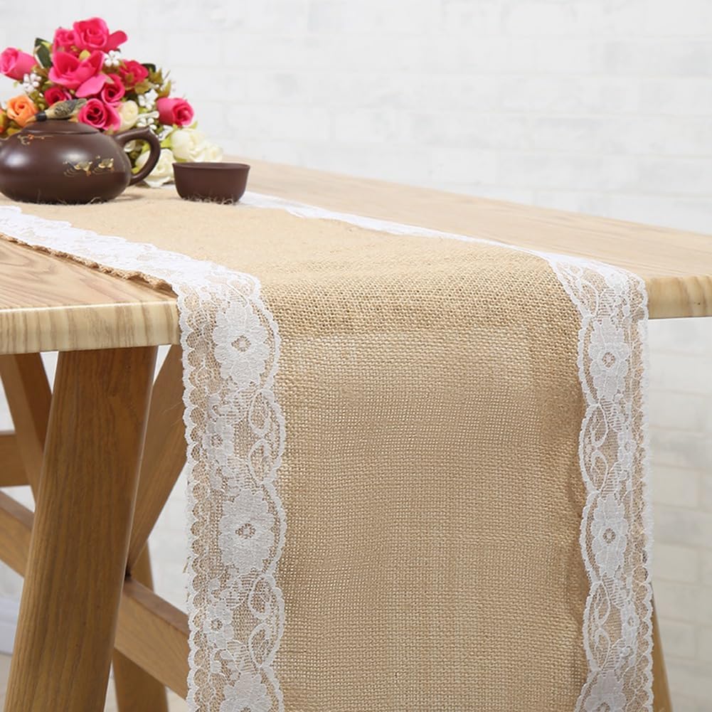 MATERIALE AFFIDABILE: questo runner da tavolo è realizzato in tela di di alta qualità, intrecciata con un filato più per una maggiore affidabilità e può resistere a strappi, trazioni o sfilacciamenti; Inoltre, il pizzo è cucito per evitare che si sfilacci o si arricci LUNGHEZZA IDEALE: questo runner da tavolo in tela è abbastanza da adattarsi alla maggior parte dei tavoli da banchetto e abbastanza lungo da estendersi fino al bordo del tavolo; può anche essere tagliato alla lunghezza desiderata come regalo, ghirlanda o centrotavola floreale a nastro DELIZIOSO PIZZO bianca: Combinando la tela vintage con il moderno pizzo bianca, il runner da tavolo in pizzo bianca è sofisticato ed elegante e sarà il complemento perfetto per un tema o moderno al tuo matrimonio o occasione speciale Adatto per ogni occasione: questo splendido runner da tavolo in tela è perfetto per decorazioni di nozze vintage, fidanzamenti, addio al nubilato, compleanni, riunioni di famiglia e altro ancora, creando indimenticabili per i tuoi ospiti e anche un pratico regalo per le feste di Natale e del Ringraziamento SCELTA FUNZIONALE PER LA DECORAZIONE DELLA TAVOLA: questo runner da tavolo in stile è realizzato con cura con bordi delicati e di lunga durata; sono perfetti per essere su tavoli da banchetto, tavoli da buffet di dolciumi, tavoli da pranzo color e crema, tavoli per matrimoni vintage e renderanno il tuo desktop semplice ed elegante.