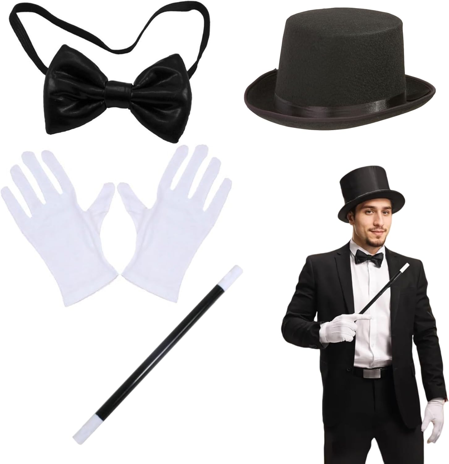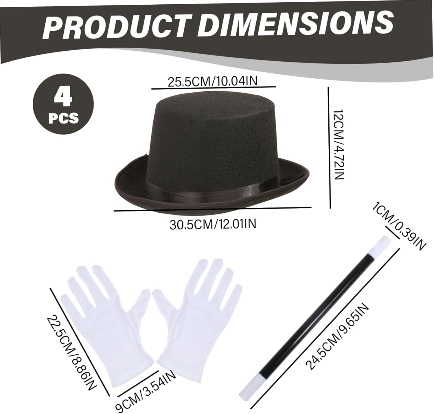 Descrizione: Il costume da mago è caratterizzato da un lussuoso cappello a cilindro nero vittoriano che aggiunge un tocco di eleganza e mistero al tuo completo. Realizzato con materiali in feltro durevoli, il cappello è progettato con attenzione ai dettagli, resistenza e un aspetto senza tempo. un piacere... E il costume da mago è adatto a molti tipi di occasioni, che si tratti di cosplay, performance, recital di danza cosplay o abiti semplici. 8,07 * 6,69 * 4,72 pollici.. CARTA CIRCA 24,5 * 1 CM / 9,65 * 0,39 pollici.. Guanti circa 22,5 * 9 cm / 8,85 * 3,54 pollici.. Nota: misurazione manuale, si prega di consentire lievi errori sulle dimensioni. Bacchetta, 1 paio di guanti e 1 papillon)
