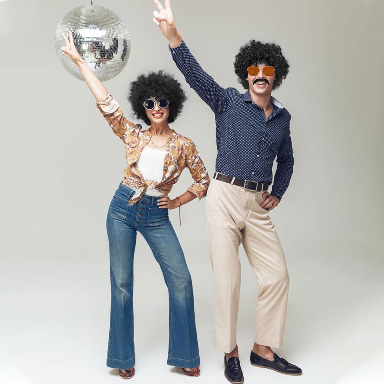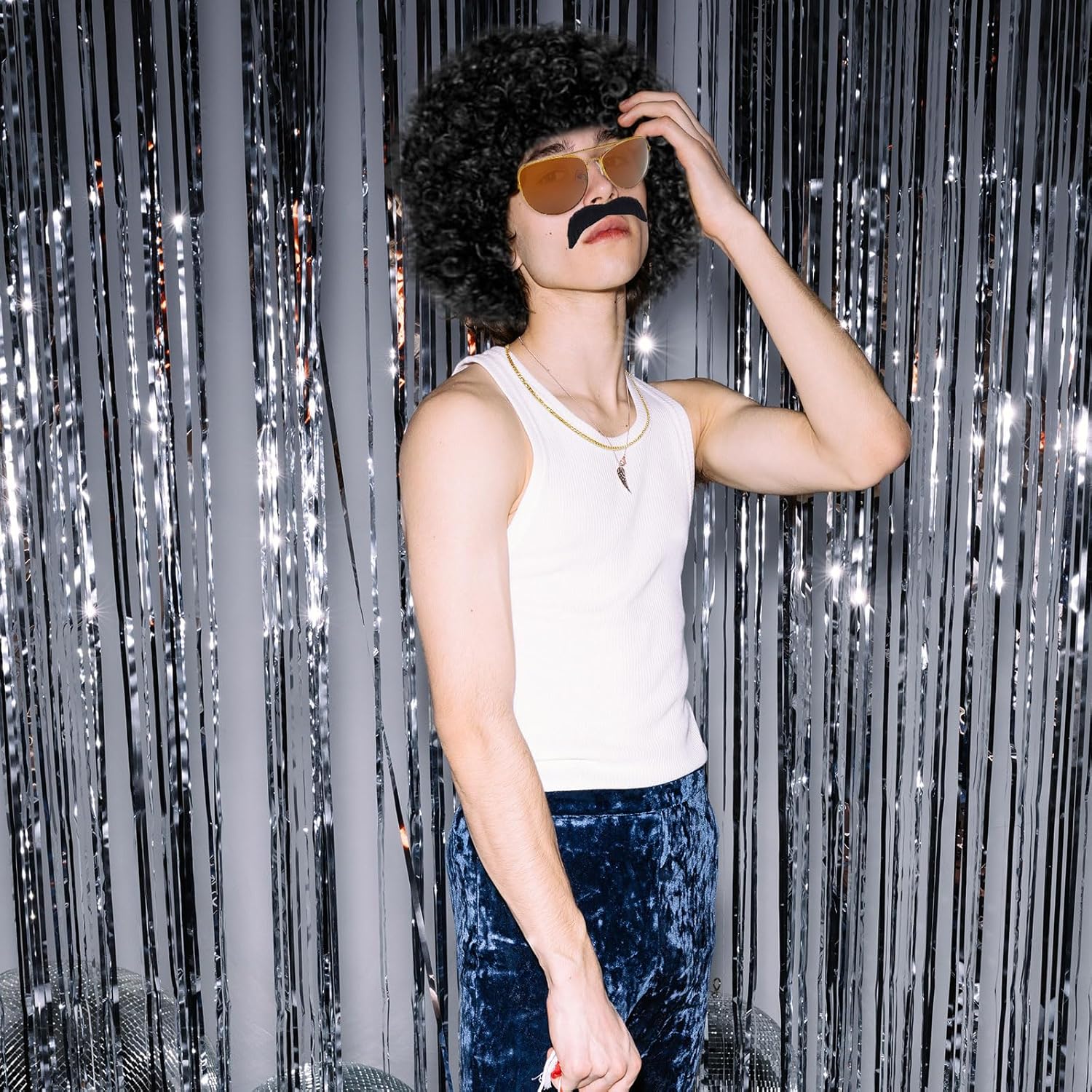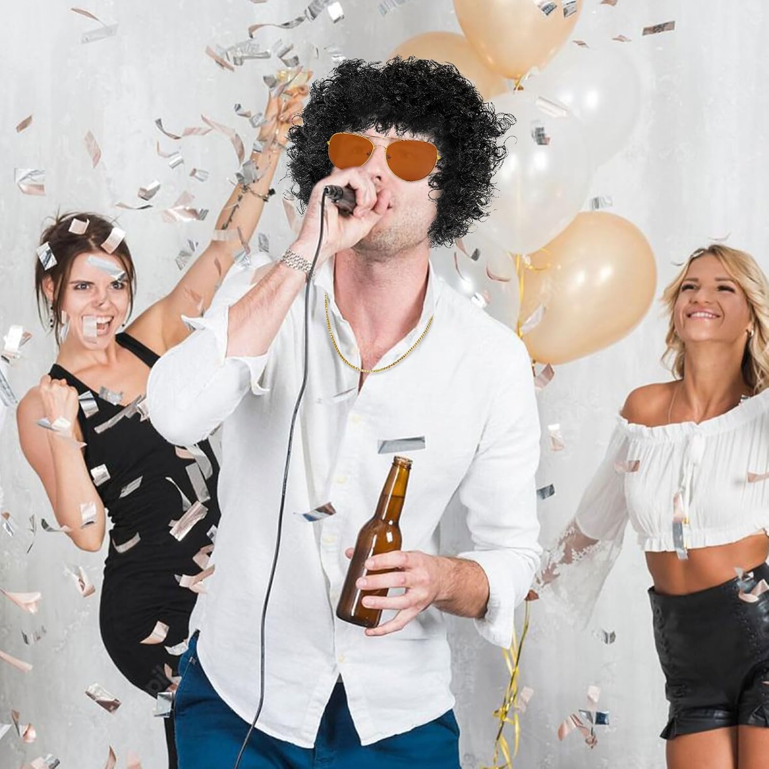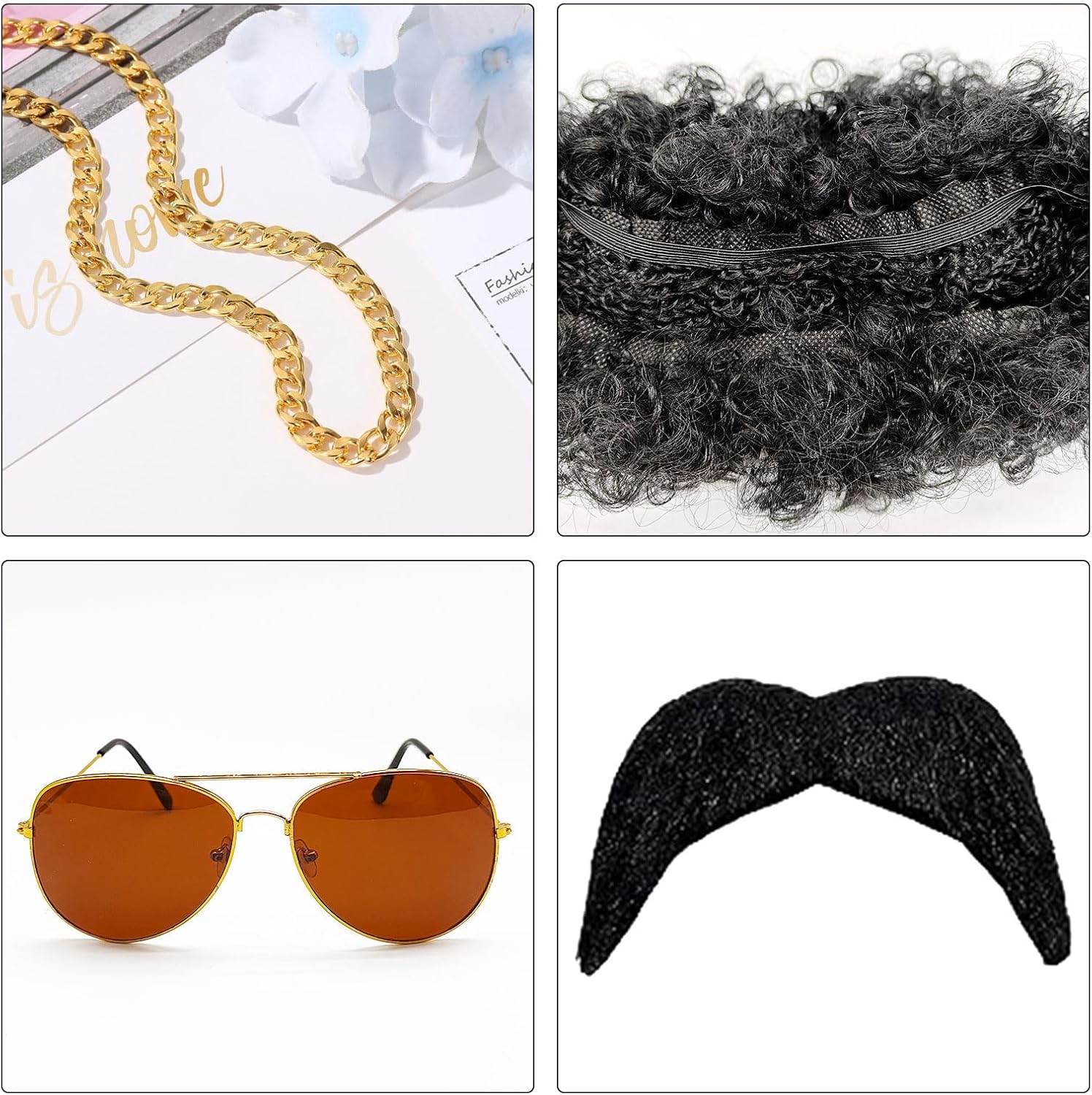 IL SET COMPRENDE: 1 * Occhiali da sole 1 * parrucca 1 * Collana da discoteca 1 * Baffi Colore: come mostrato nell'immagine Accessori in maschera anni '70 per uomini e donne per contribuire a creare l'ultimo costume hippie in maschera anni '60/'70.
